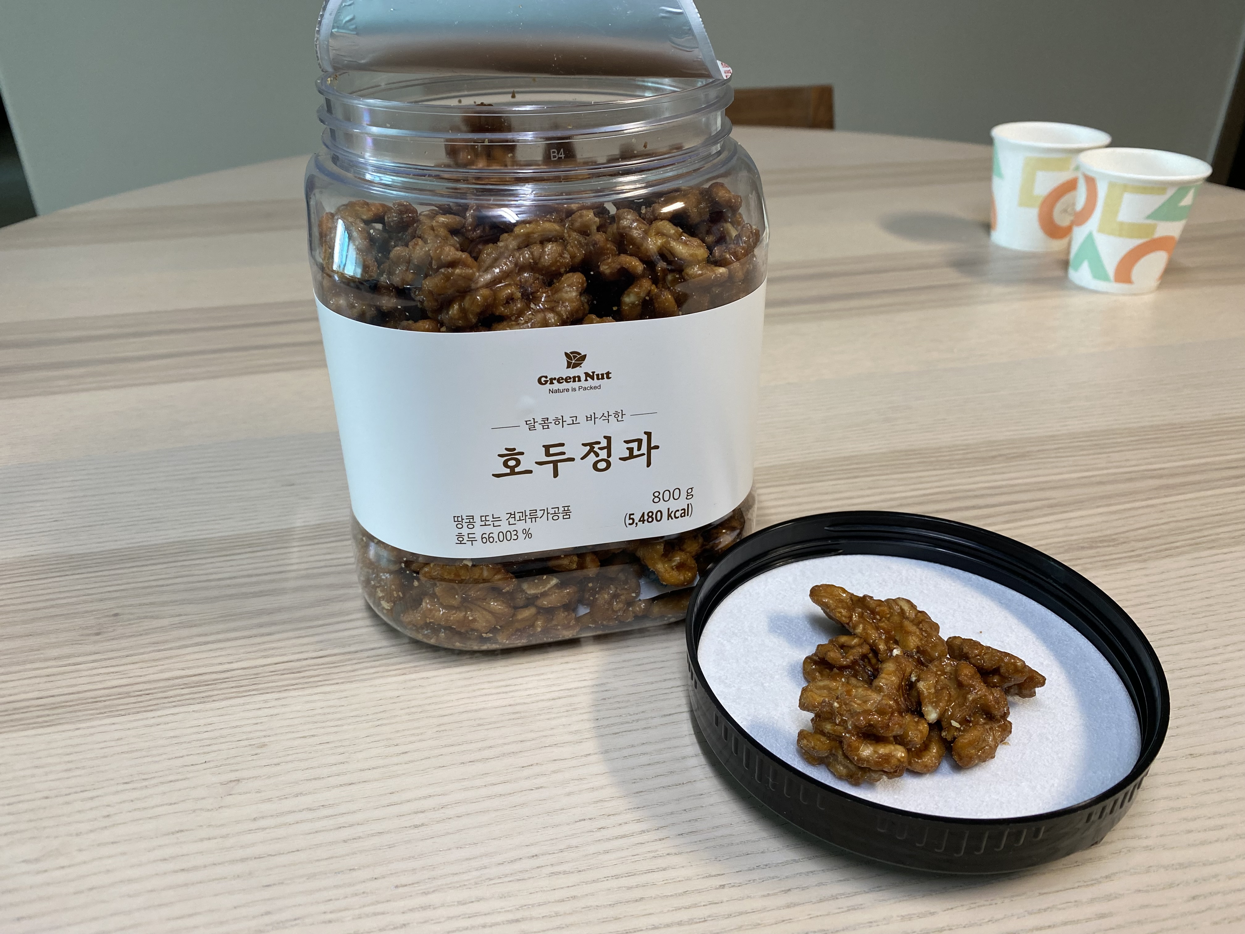 Green Nut 호두정과. 맛이 아주 그냥 맛있는 맛입니다. 겉바속촉이 아니라 겉촉속바의 식감이 아무 괜찮습니다. 바삭한 식감이 더 강합니다. 예전에 중국집에 먹었던 그 느낌 그대로네요. 아주 달고 맛있는 맛. 좀 많이 달아서 알아서 적당히 먹게 됩니다. 처음에 우걱우걱 먹다가 나중에는 그냥 손을 놓게 됩니다.