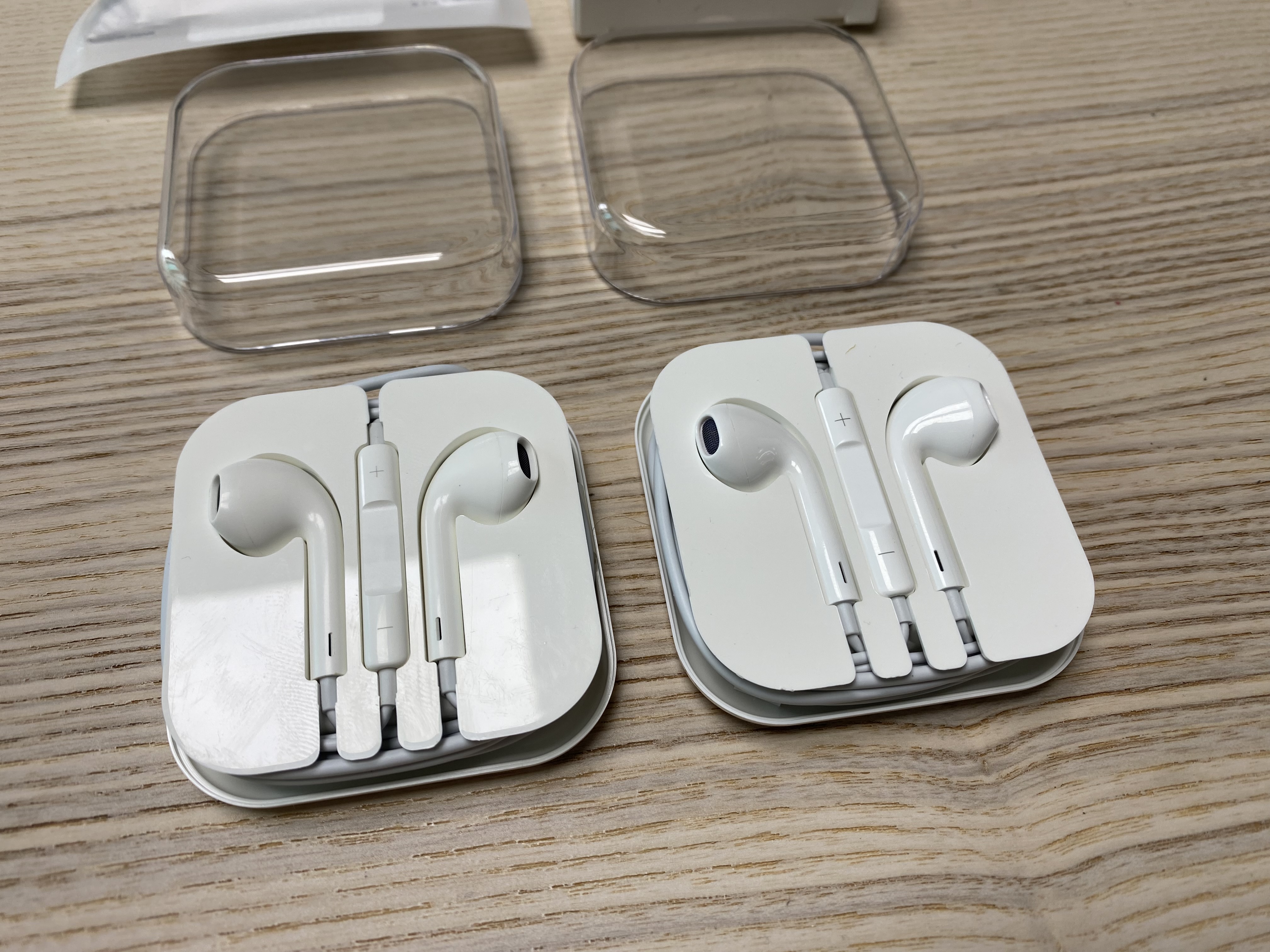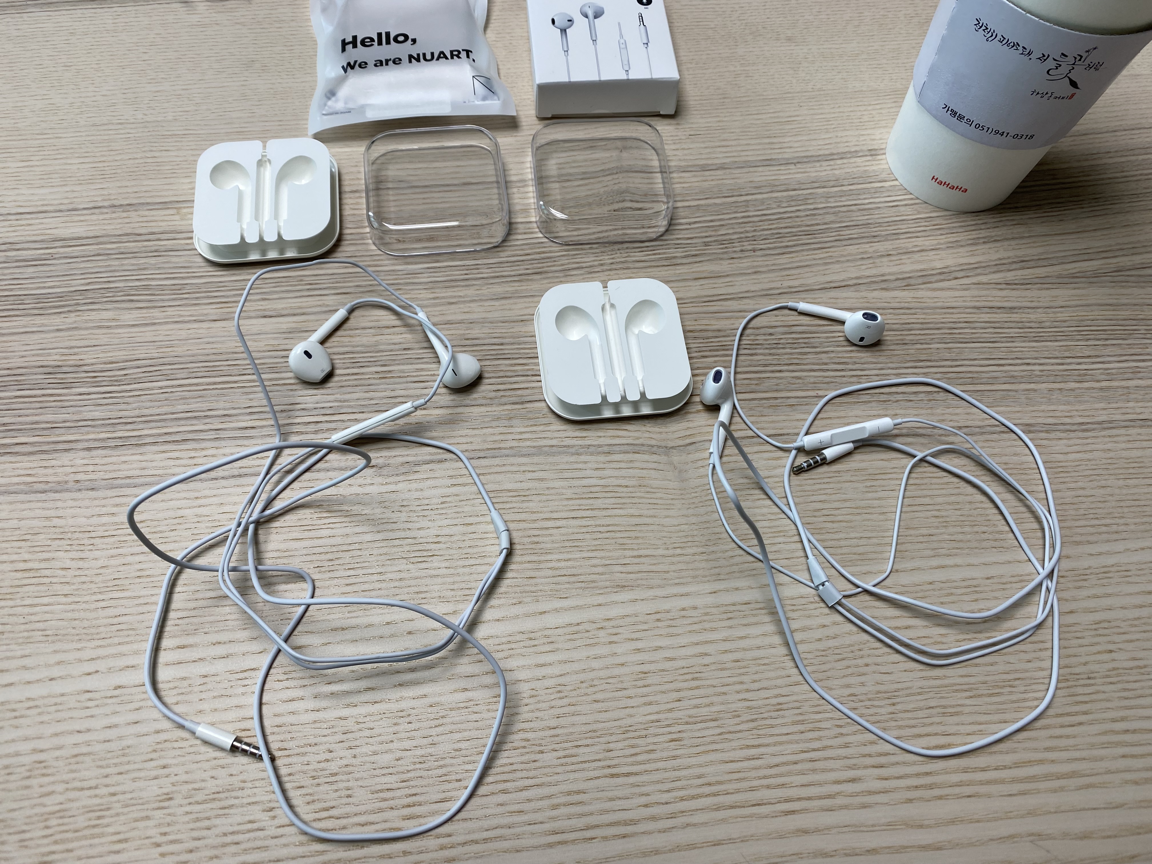 제가 차이를 발견했습니다. 이어폰에 새겨져 있는 글자 폰트가 좀 다르네요. 서가 쪽이 폰트가 조금 더 크고 진합니다. 하지만 이건 제품 뽑기에 따라 다를지도 모릅니다.