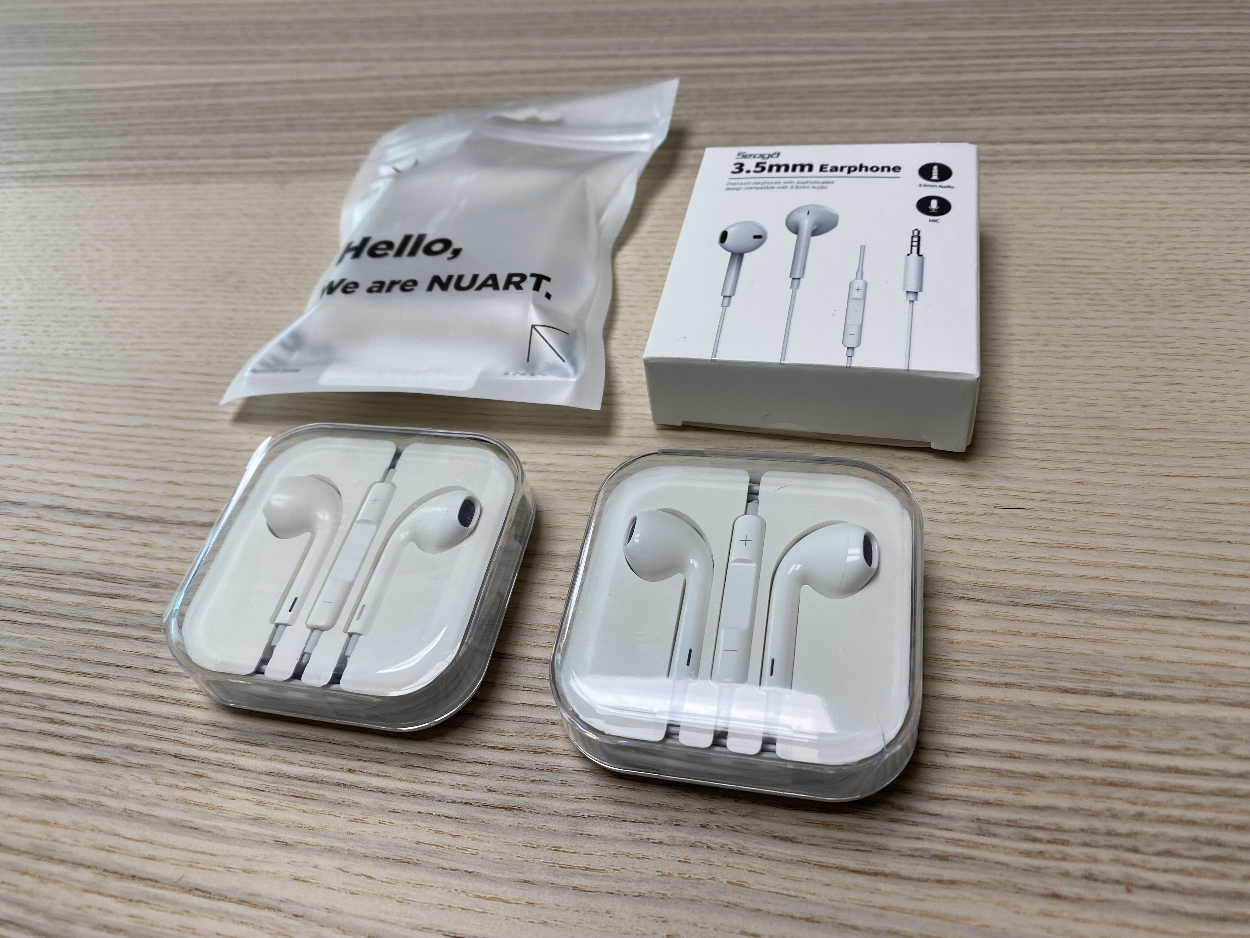 쿠팡에서 구매한 '누아트 스테레오 이어팟 유선 이어폰'과 '서가 스테레오 AUX 호환 이어폰'의 외관을 비교해 봤는데 거의 동일 제품처럼 보이네요. 그럼 사운드는... 소리도 거의 비슷하네요. 아주 약간 차이가 나는데 말로 표현할 수 있을 정도는 아닌 것 같습니다. 외관은 아이폰 정품 유선 이어폰처럼 보이는데 음질은 확실히 좀 떨어집니다. 아이폰 정품 이어폰보다 음질이 떨어지는 것이지 못 들을 정도는 아닙니다. 비싼 이어폰보다 베이스가 떨어지는 것 같네요. 개인적으로 5천 원 정도 가격에 이 정도면 괜찮다고 생각합니다. 마이크 감도는 서가 제품이 좀 더 좋았는데 뽑기 때문인지 제품 자체 특징인지 알 수가 없습니다.