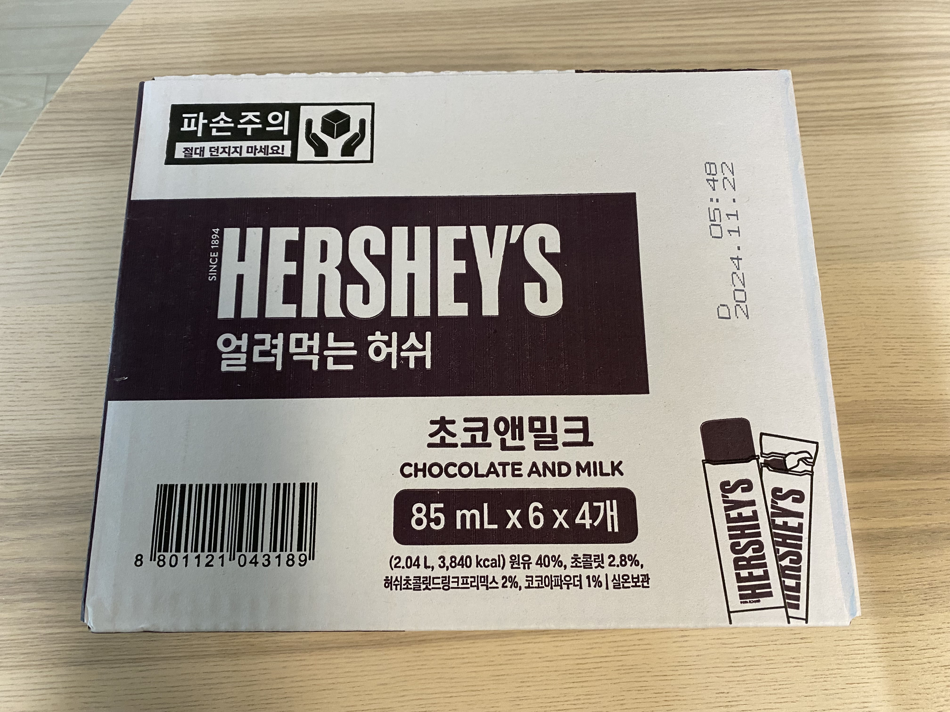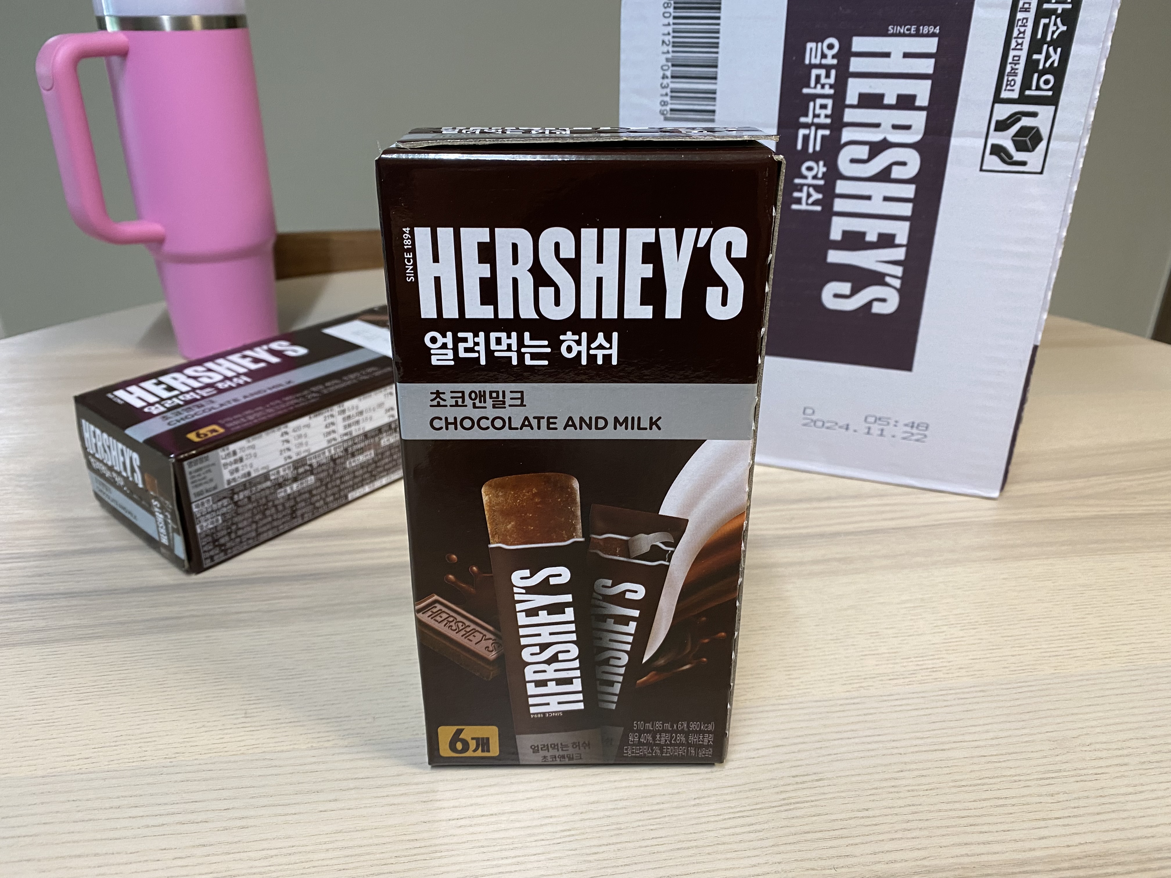 아주 튼튼한 작은 박스에 '얼려먹는 허쉬 초코앤밀크'가 6개 들어있습니다.