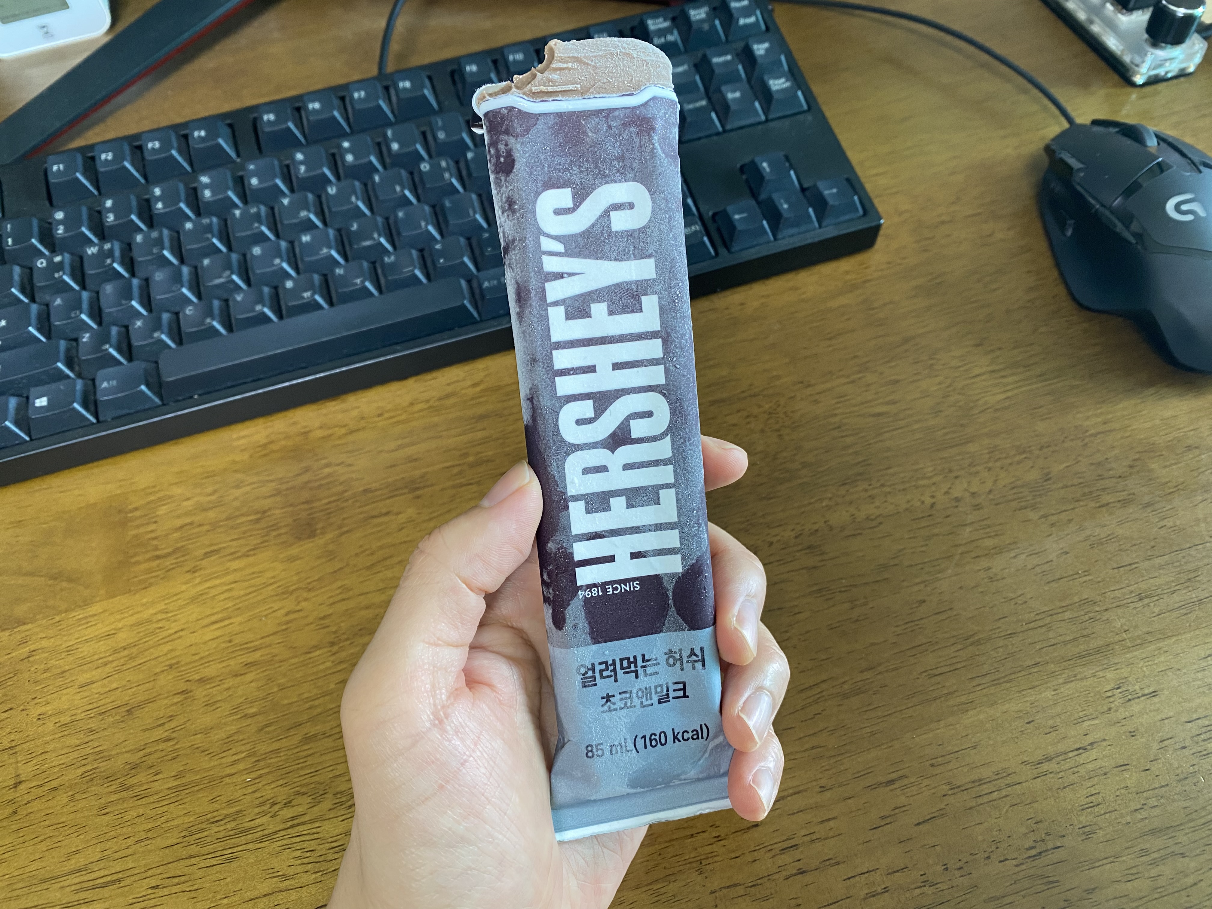 얼려먹는 허쉬 초코앤밀크를 한입 베어무니 초콜릿의 강한 단맛과 우유의 향이 확 올라오네요. 역시 맛있습니다. 혹자는 너무 맛있어서 이걸 '인간 츄르'라고 부르던데 이해가 가네요. (그렇다고 고양이 츄르 먹듯이 드시면 곤란합니다.) 초코나 단 음식을 싫어하는 분이라 아니라면 거의 다 좋아할 만한 맛입니다. 저는 한 번에 2개 정도 먹으니 속이 달아서 더는 못 먹겠네요. 근데 돌아서면 생각나는 그런 맛입니다. 아주 매운 음식을 먹고 입가심으로 먹기에도 좋습니다.