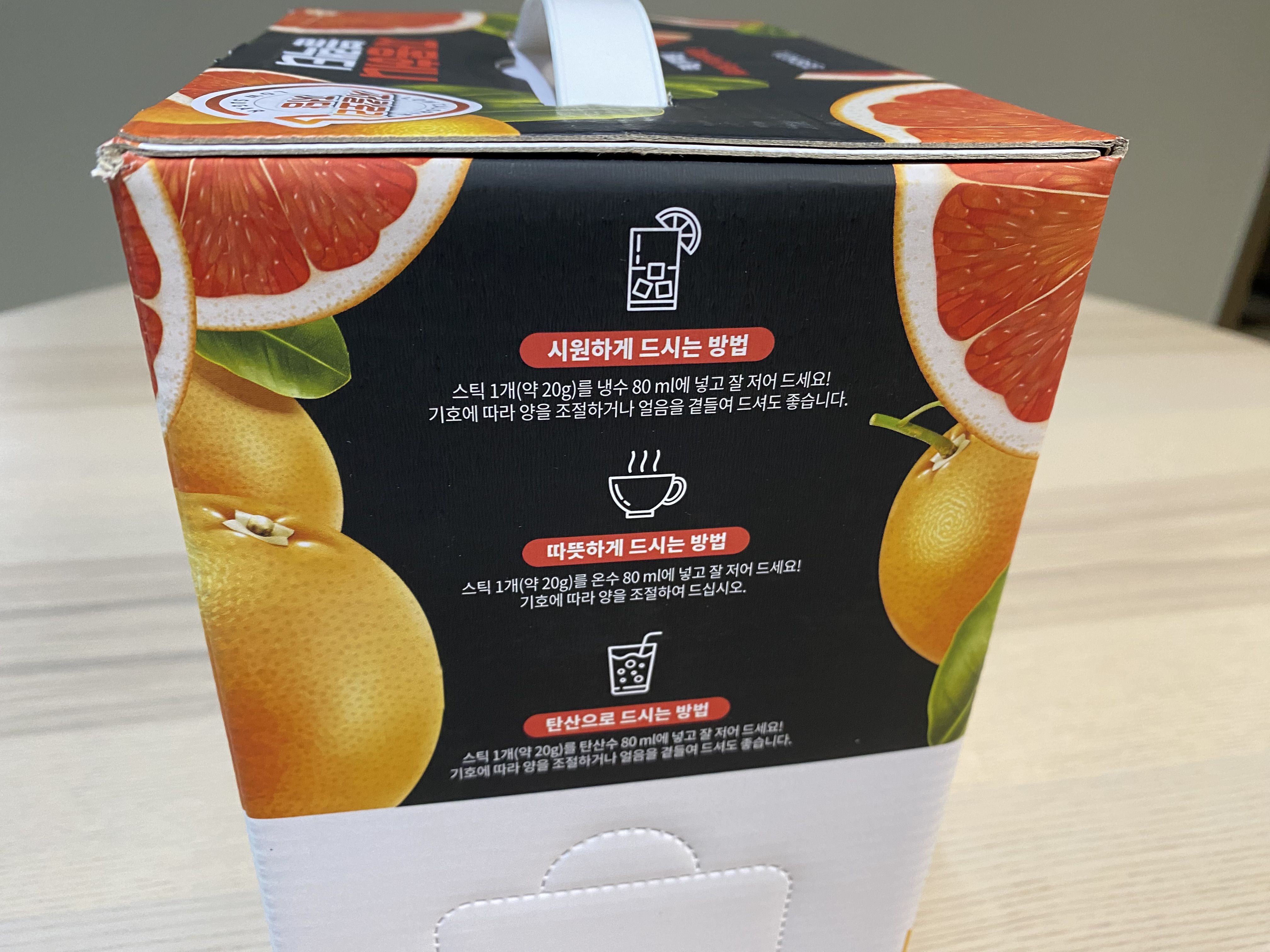 VONBEE 자몽허니 블랙티는 쉽게 하나씩 뽑아 먹을 수 있는 구조입니다. 20000원짜리 한 박스에 스틱이 90개 들었으니 개당 가격은 222원입니다. 카페처럼 마실려면 스틱 2개 정도는 넣어야 되니 한잔에 500원 정도로 보면 되겠습니다. 카페보다 거의 10배가량 저렴한 가격입니다. VONBEE 자몽허니 블랙티는 스틱 1개에 20그램 3칼로리입니다. 살걱정없이 마실 수 있는 다이어트 음료네요.