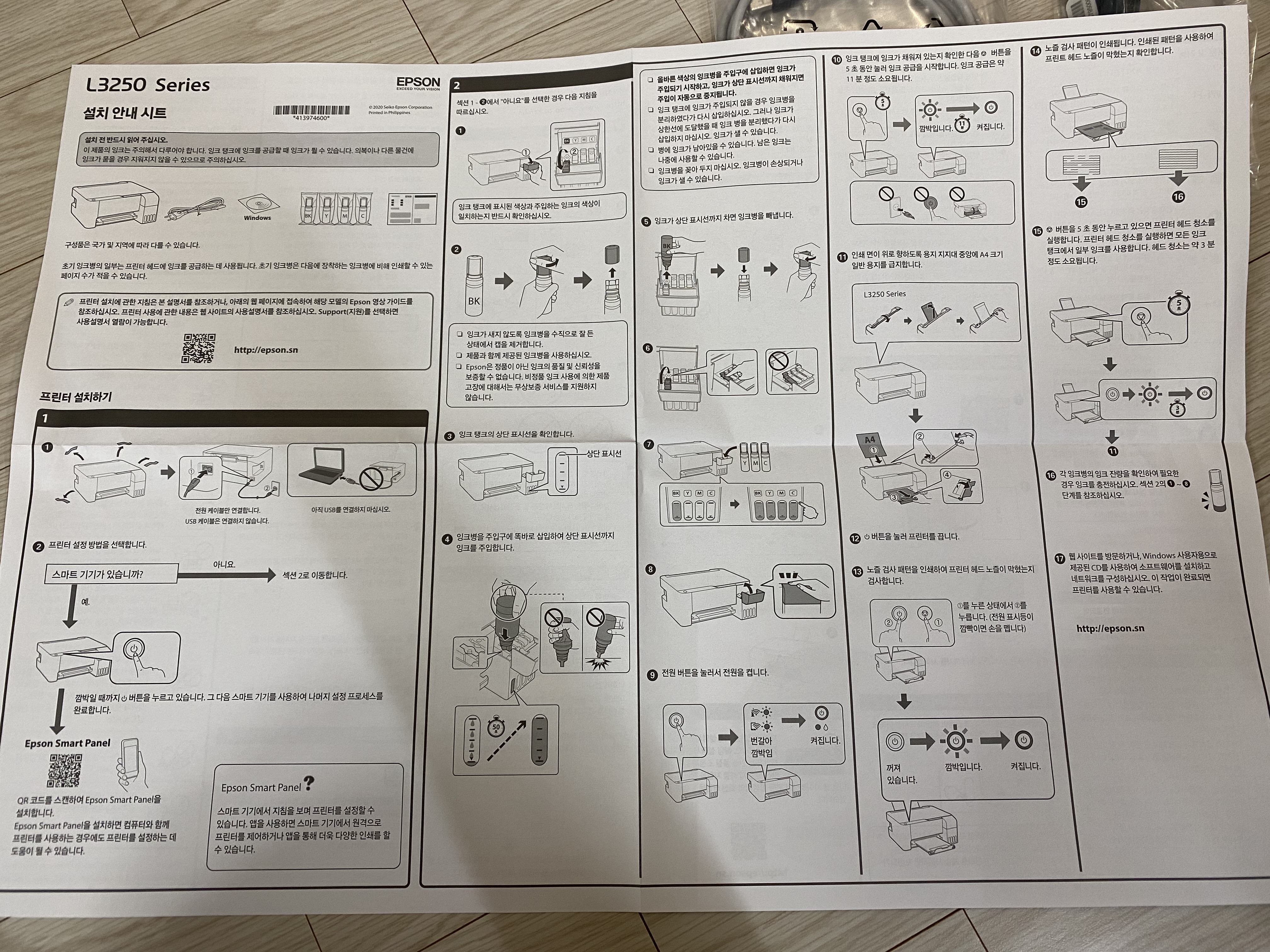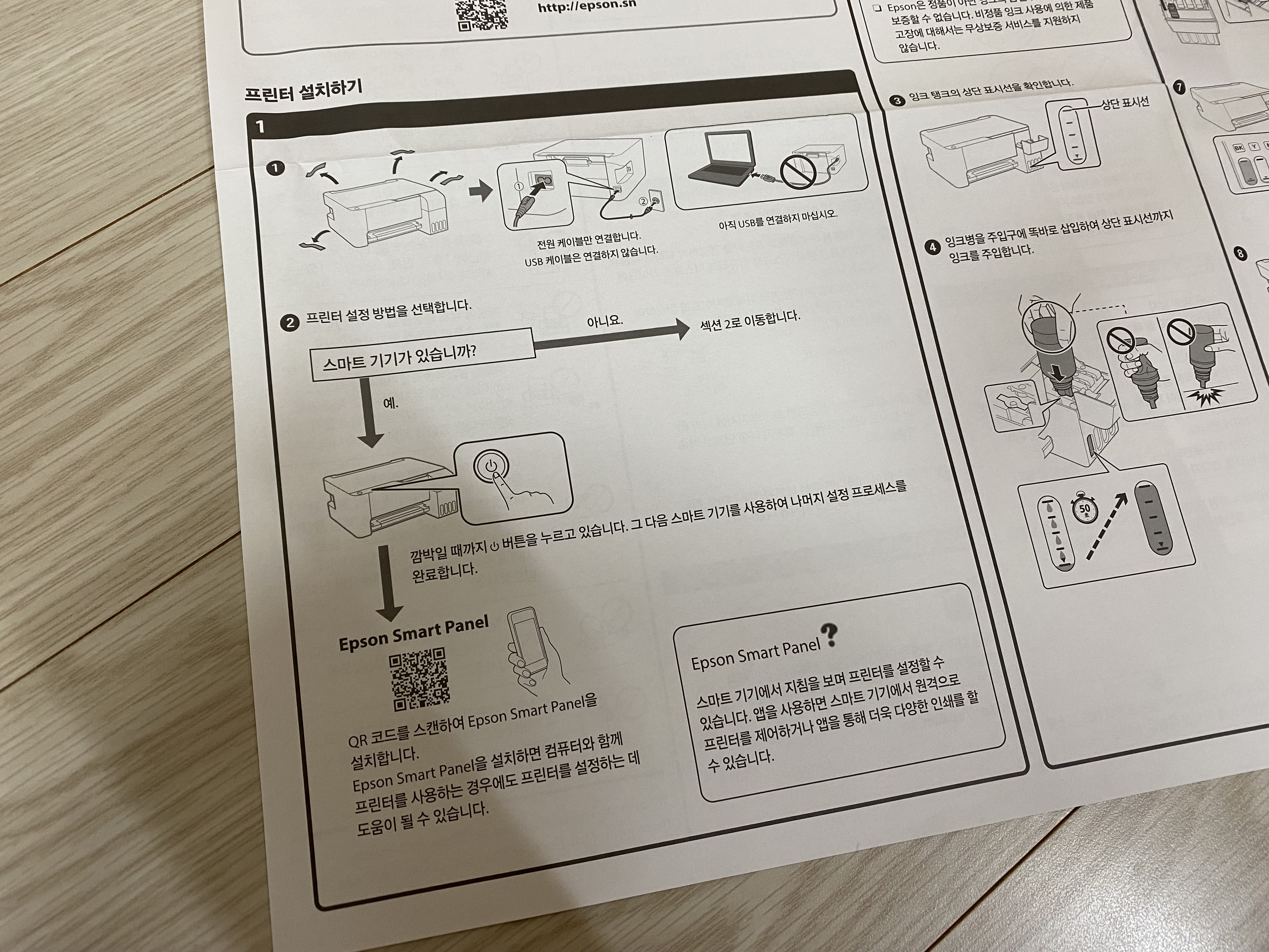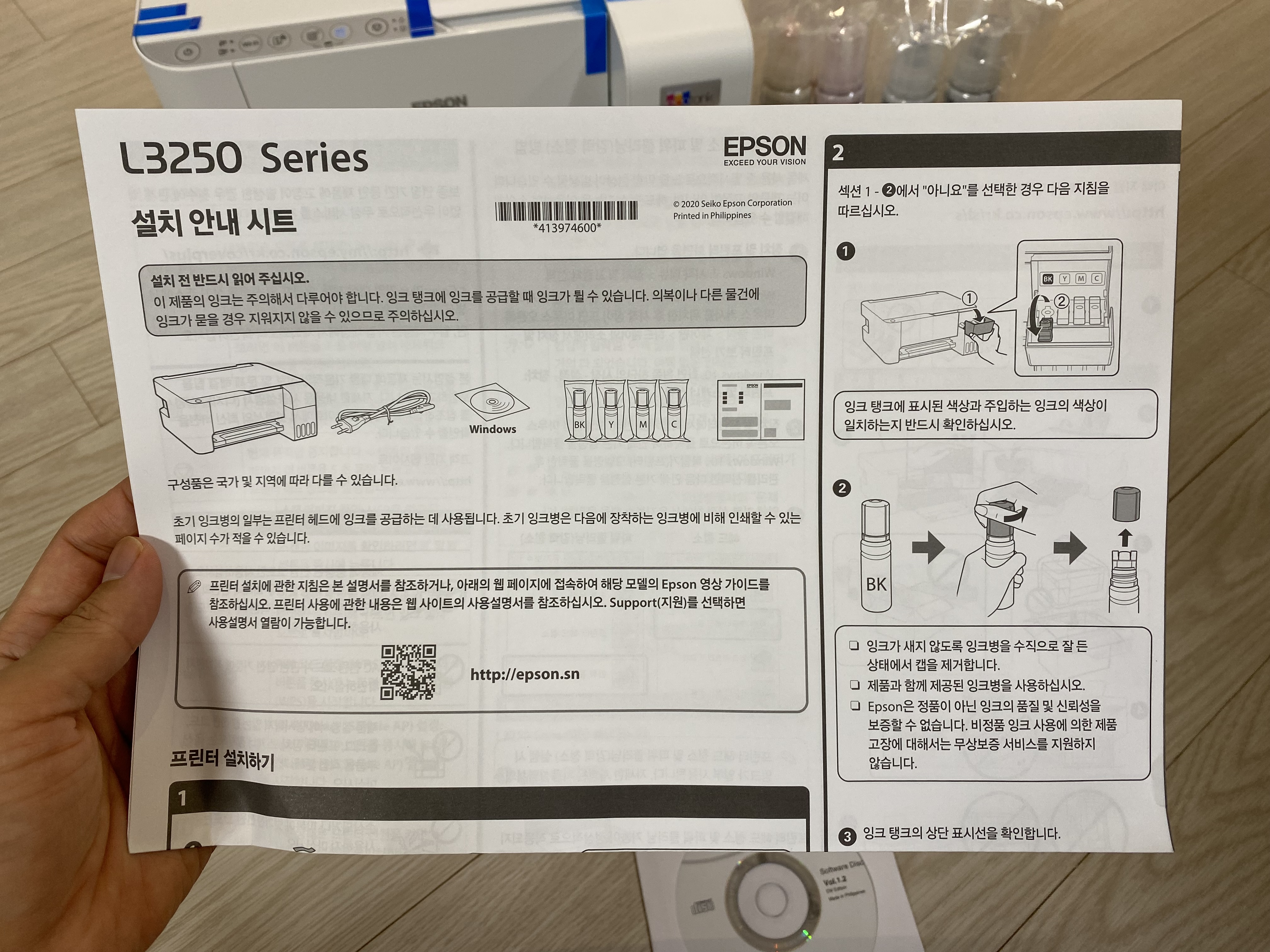 엡손 제품은 설명서가 친절하고 간단해서 설치하는데 큰 문제가 없습니다.