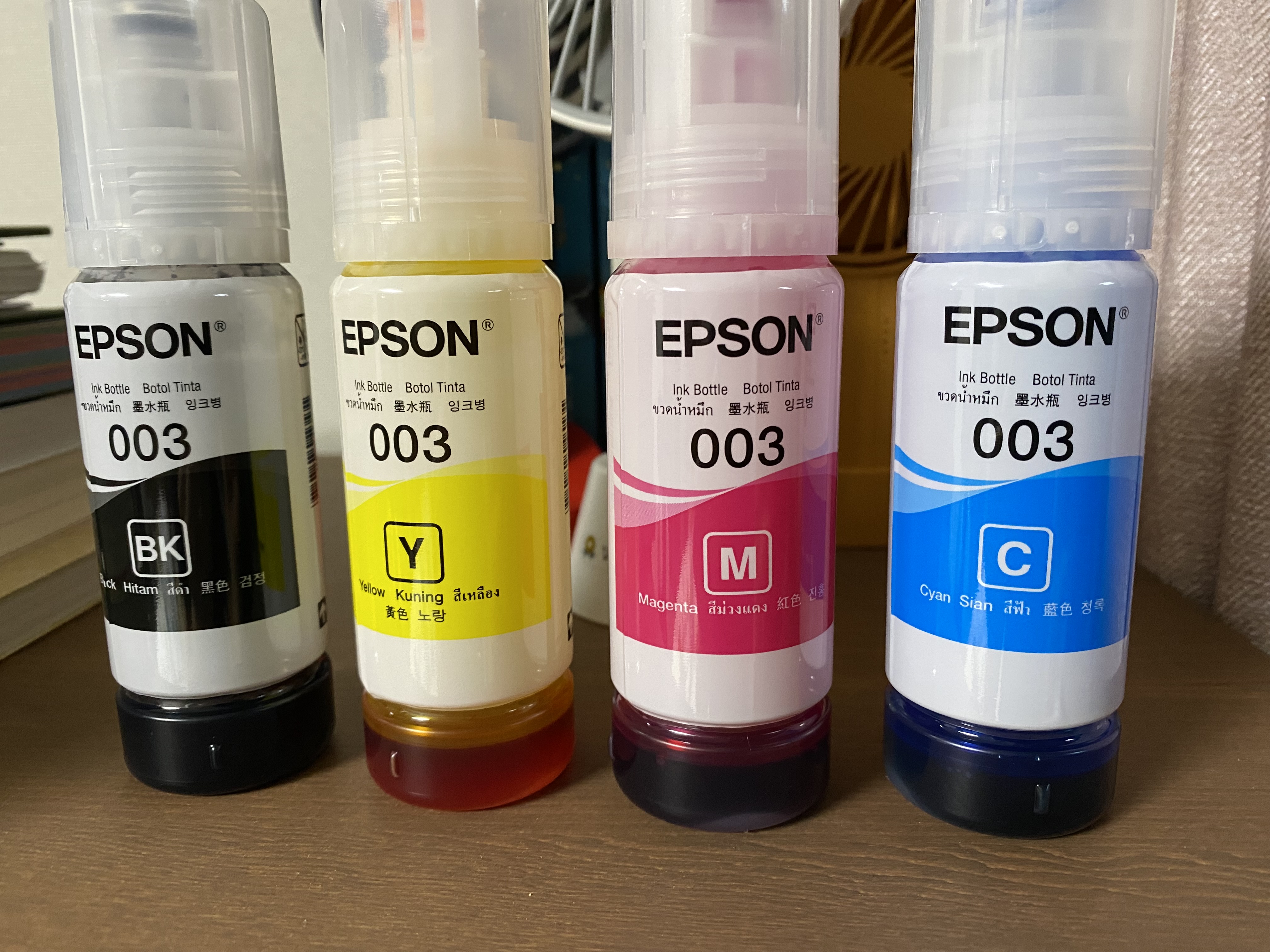 잉크를 주입하고 나서 남은 잉크의 모습입니다. 아주 조금씩 남아있네요. 검색을 해보니 이 엡손 정품 잉크 4개 가격이 4만 원 정도 하네요. 잉크 프린터 카트리지나 레이저 프린터 토너와 비교하면 확실히 저렴한 것을 알 수 있습니다. 그래도 정품 아닌 호환 잉크보다는 많이 비싸긴 합니다. 정품잉크, 호환잉크의 선택은 개인 성향에 따라 다를 것 같네요. 저는 그냥 정품으로 살 것 같습니다.