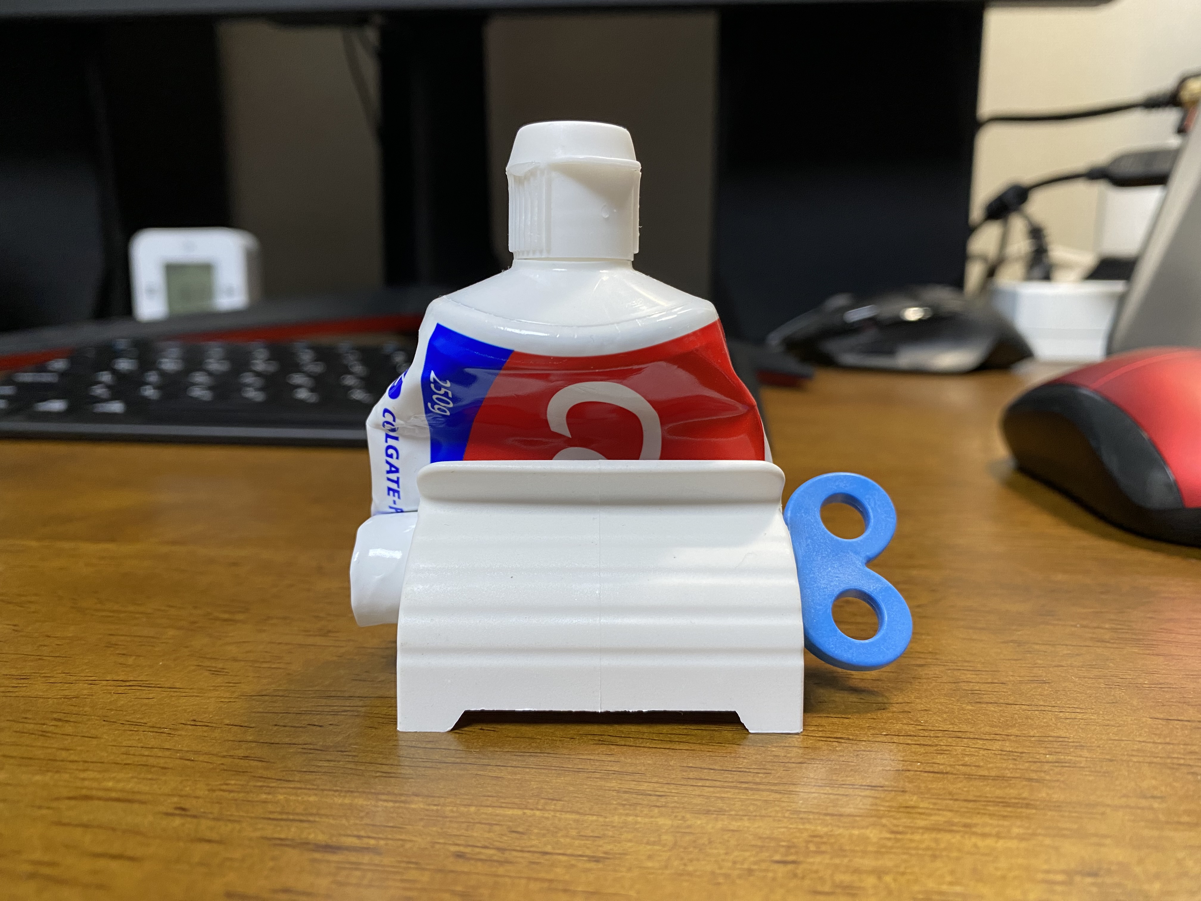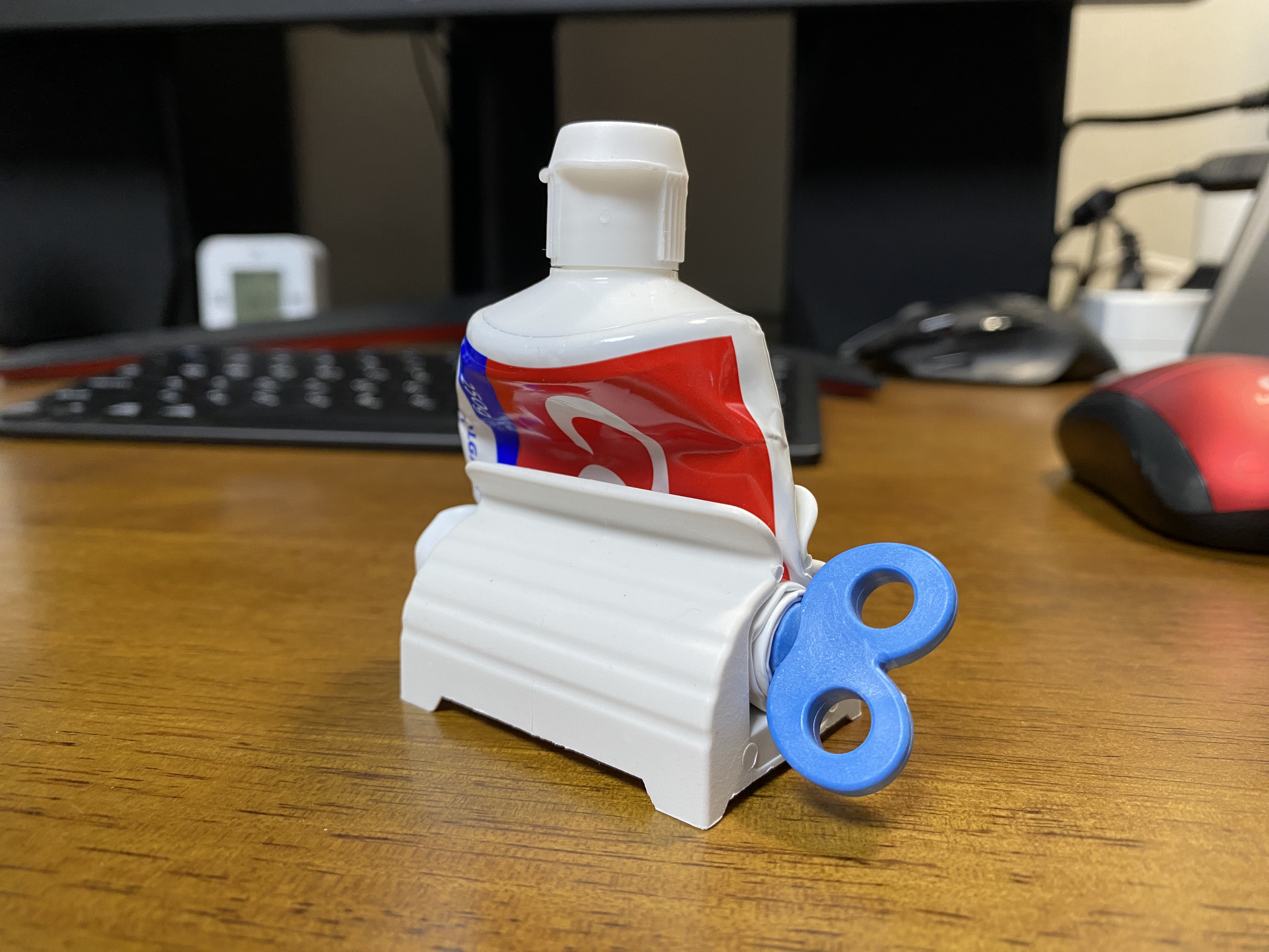 파란색 손잡이를 돌리면 위와 같이 치약이 돌돌 말리게 됩니다.