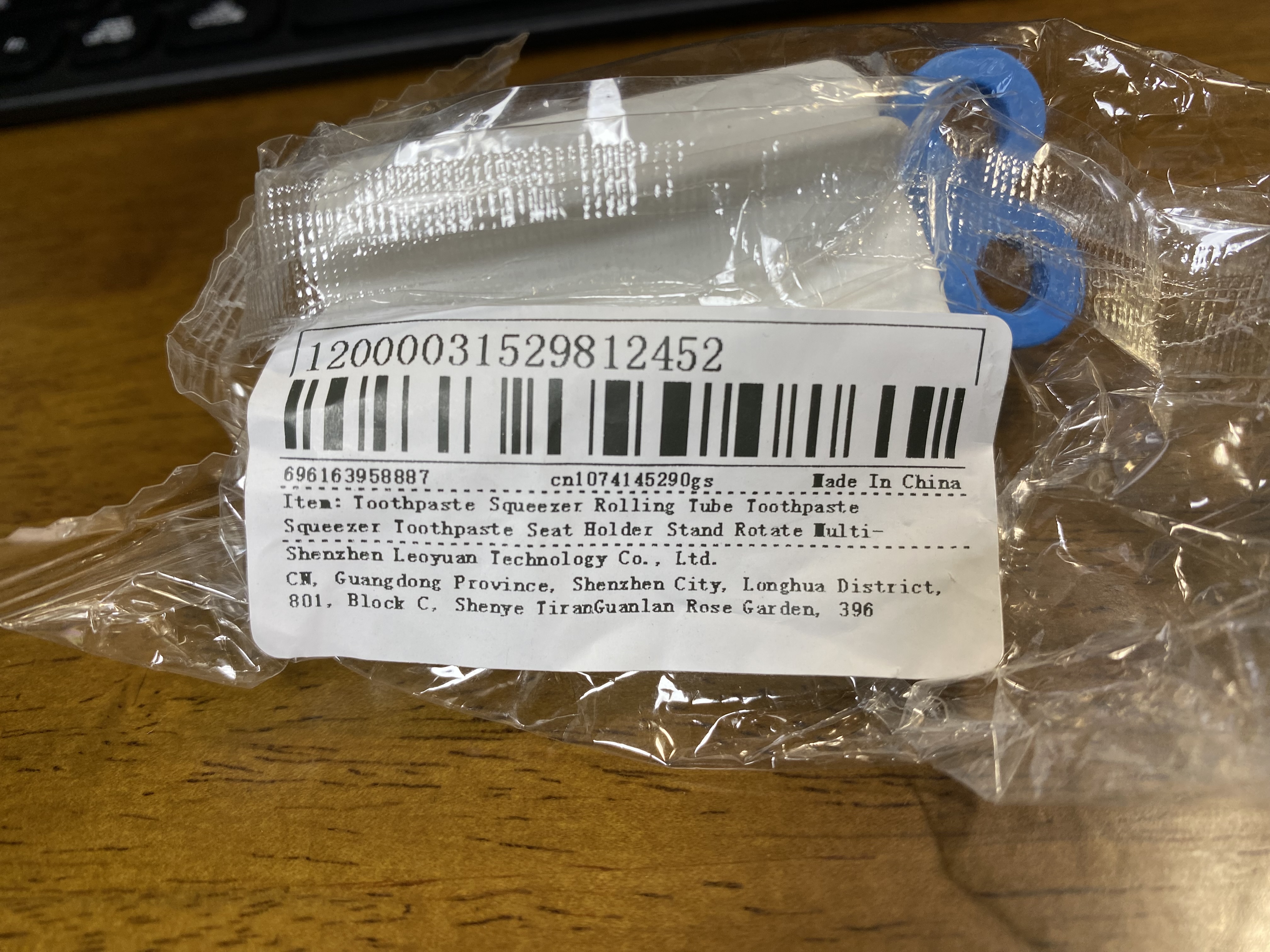 알리에서 '1 PC 롤링 튜브 치약 스퀴저 치약 시트 홀더 스탠드 욕실 용 회전 치약 디스펜서'라고 적힌 제품입니다. 저렴하지만 나름 튼튼한 제품입니다.