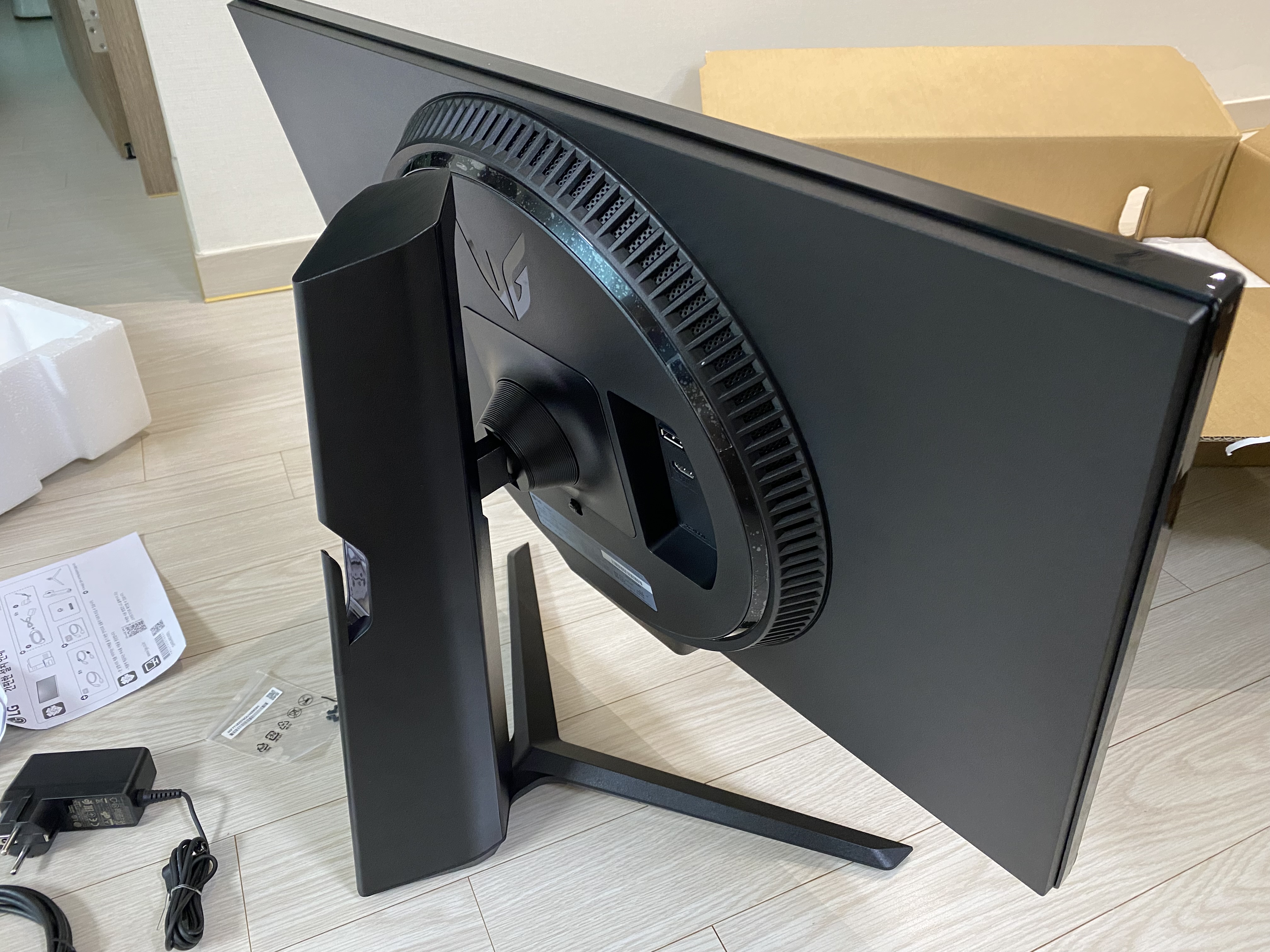 LG 게이밍 모니터는 거치대가 참 좋습니다. 살 때마다 매번 느낍니다. 튼튼하고 모니터 높이조절, 위아래 각도조절 움직임도 괜찮고. 아무튼 마음에 듭니다.