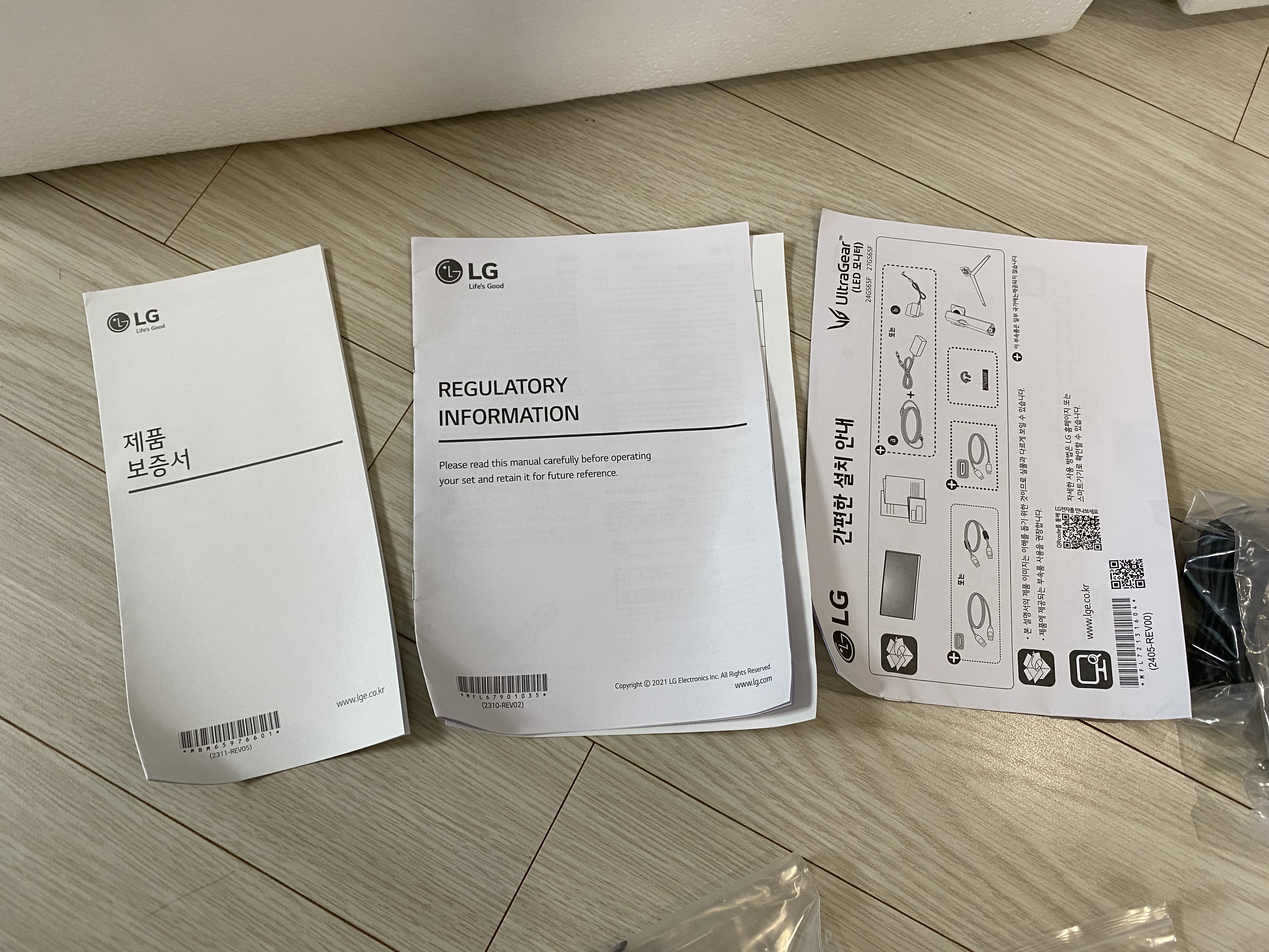 LG 27GS65F 27인치 울트라기어 게이밍모니터 본체를 제외한 상품 구성은 이렇습니다.