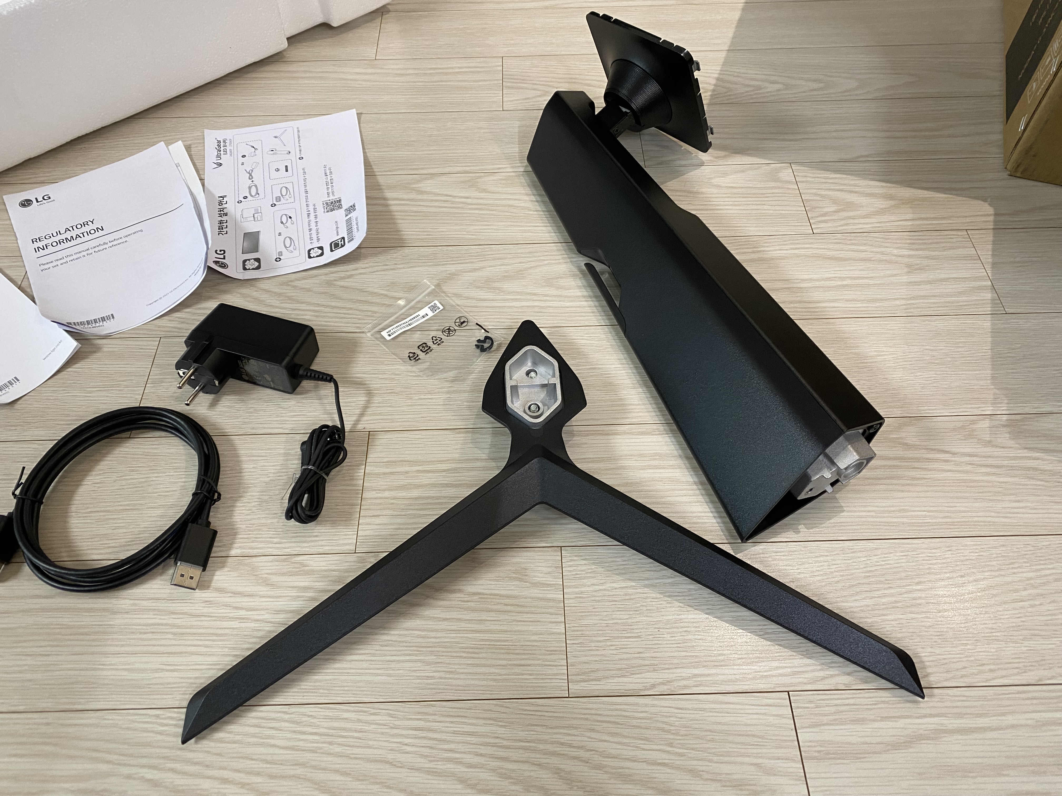 LG 27GS65F 27인치 울트라기어 게이밍모니터 본체를 제외한 상품 구성은 이렇습니다.