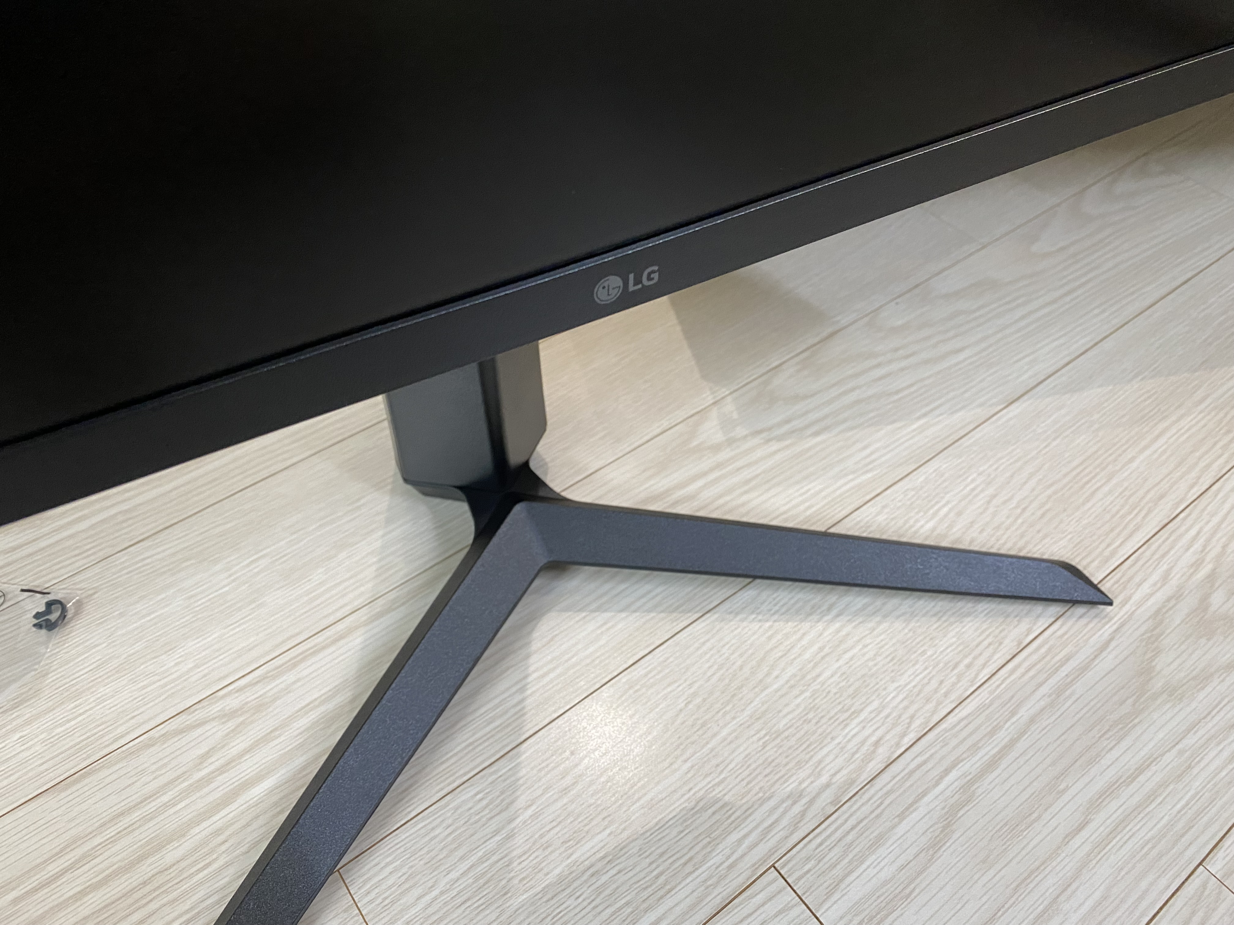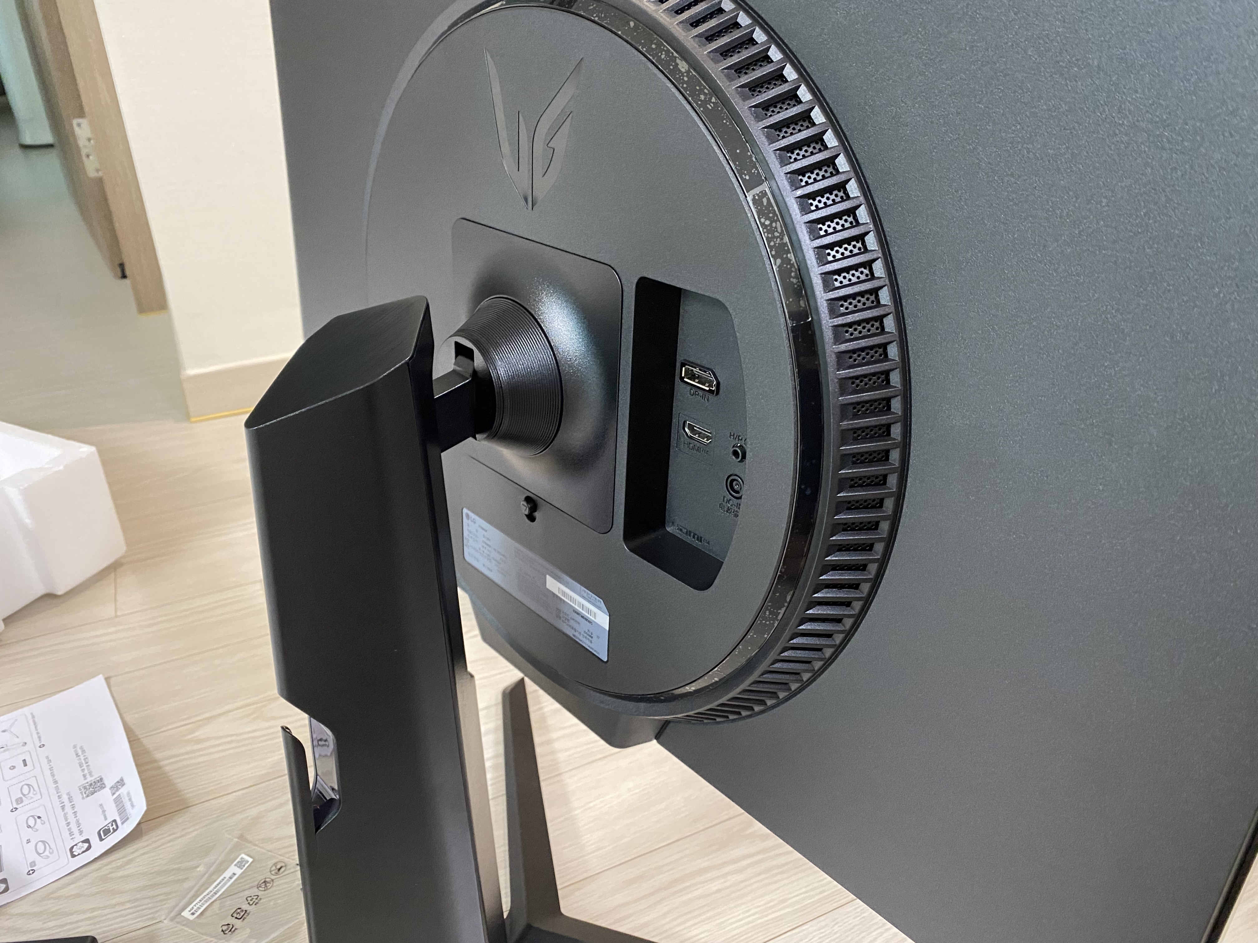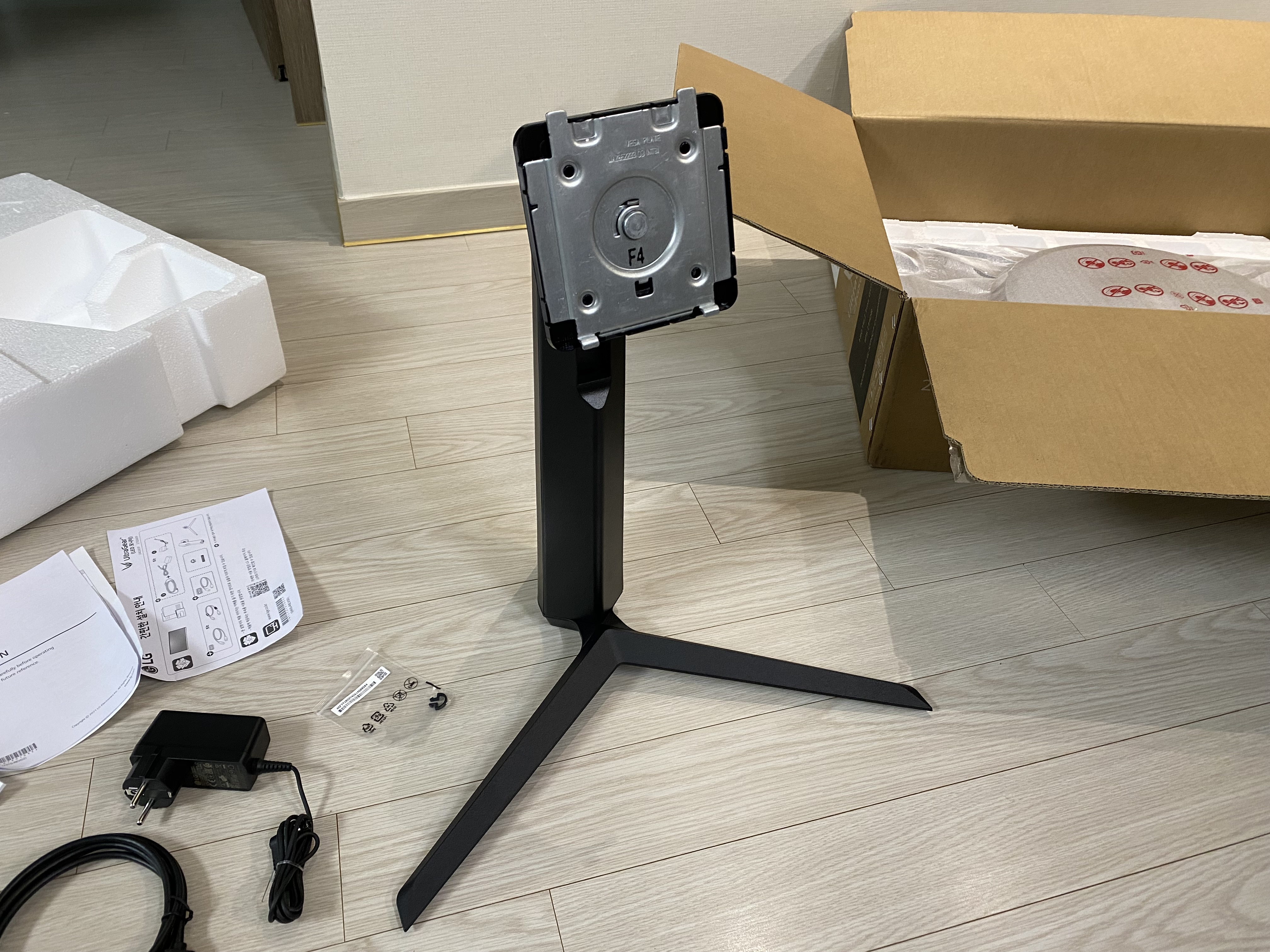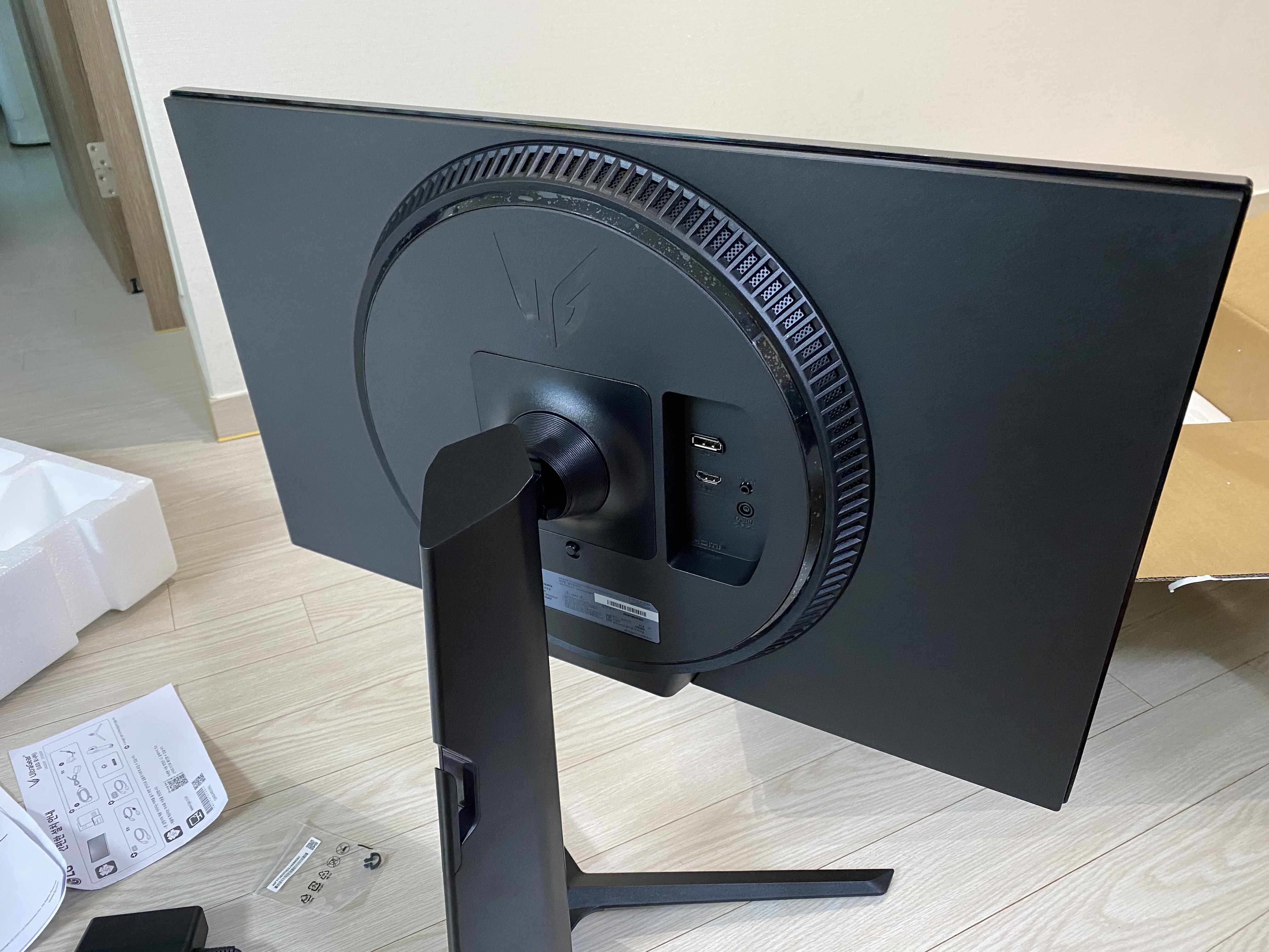LG 27GS65F 27인치 울트라기어 게이밍모니터 거치대를 준비한 모습입니다.
