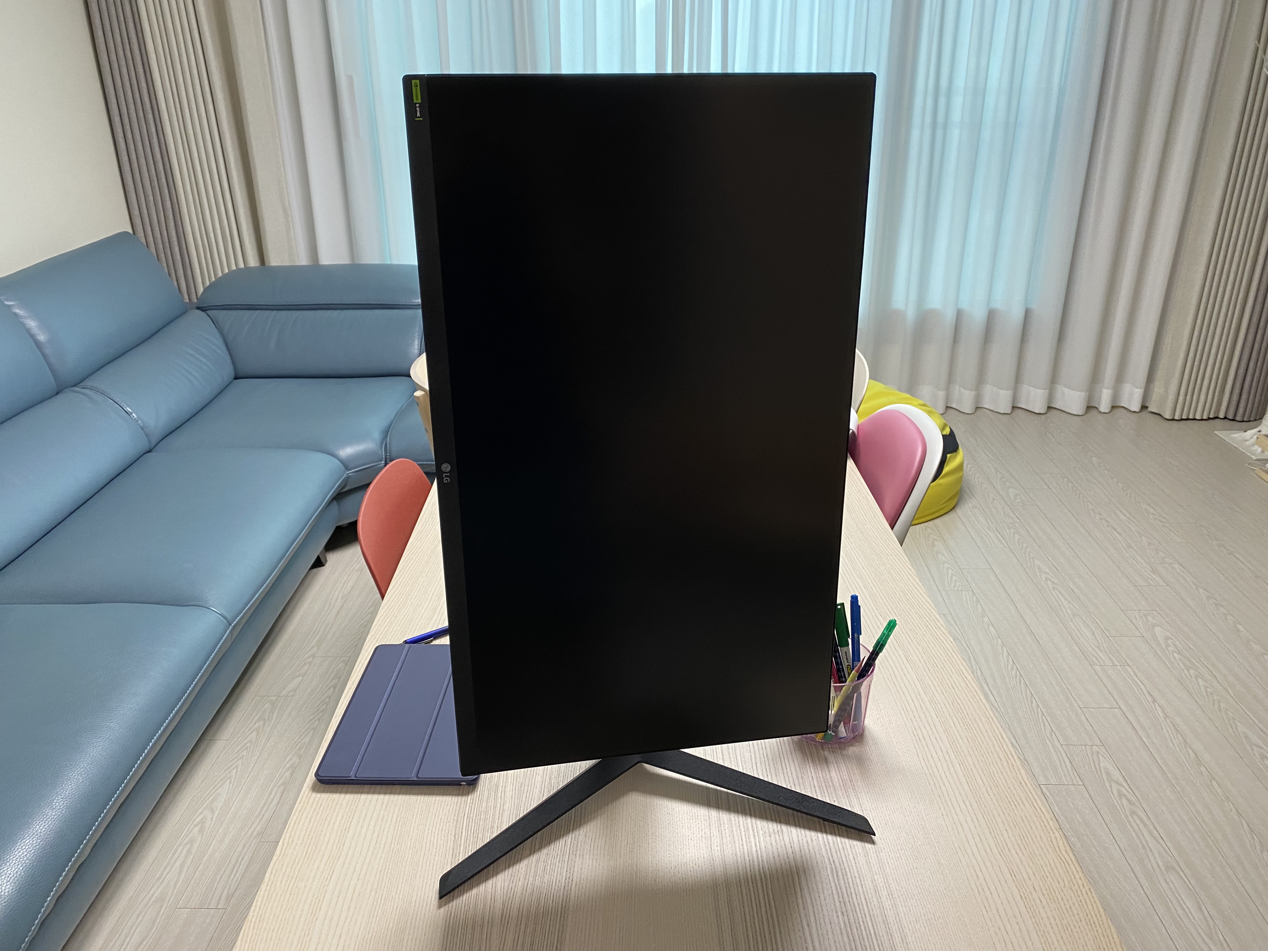 LG 게이밍 모니터는 거치대가 참 좋습니다. 살 때마다 매번 느낍니다. 튼튼하고 모니터 높이조절, 위아래 각도조절 움직임도 괜찮고. 아무튼 마음에 듭니다.
