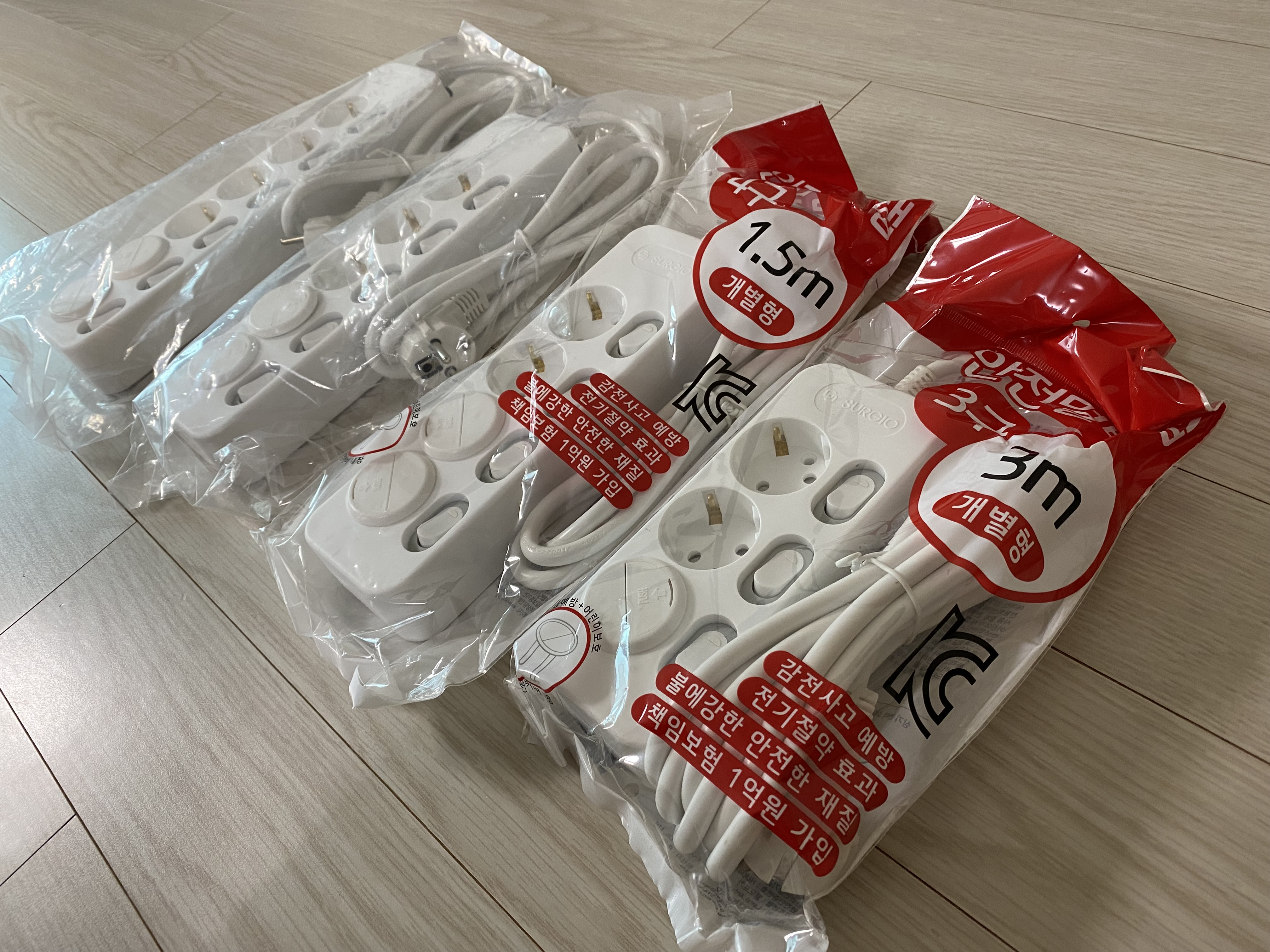 써지오 멀티탭 6구, 5구, 4구, 3구 이렇게 4개. 길이도 1.5m, 3m 필요에따라 종류별로 샀습니다.