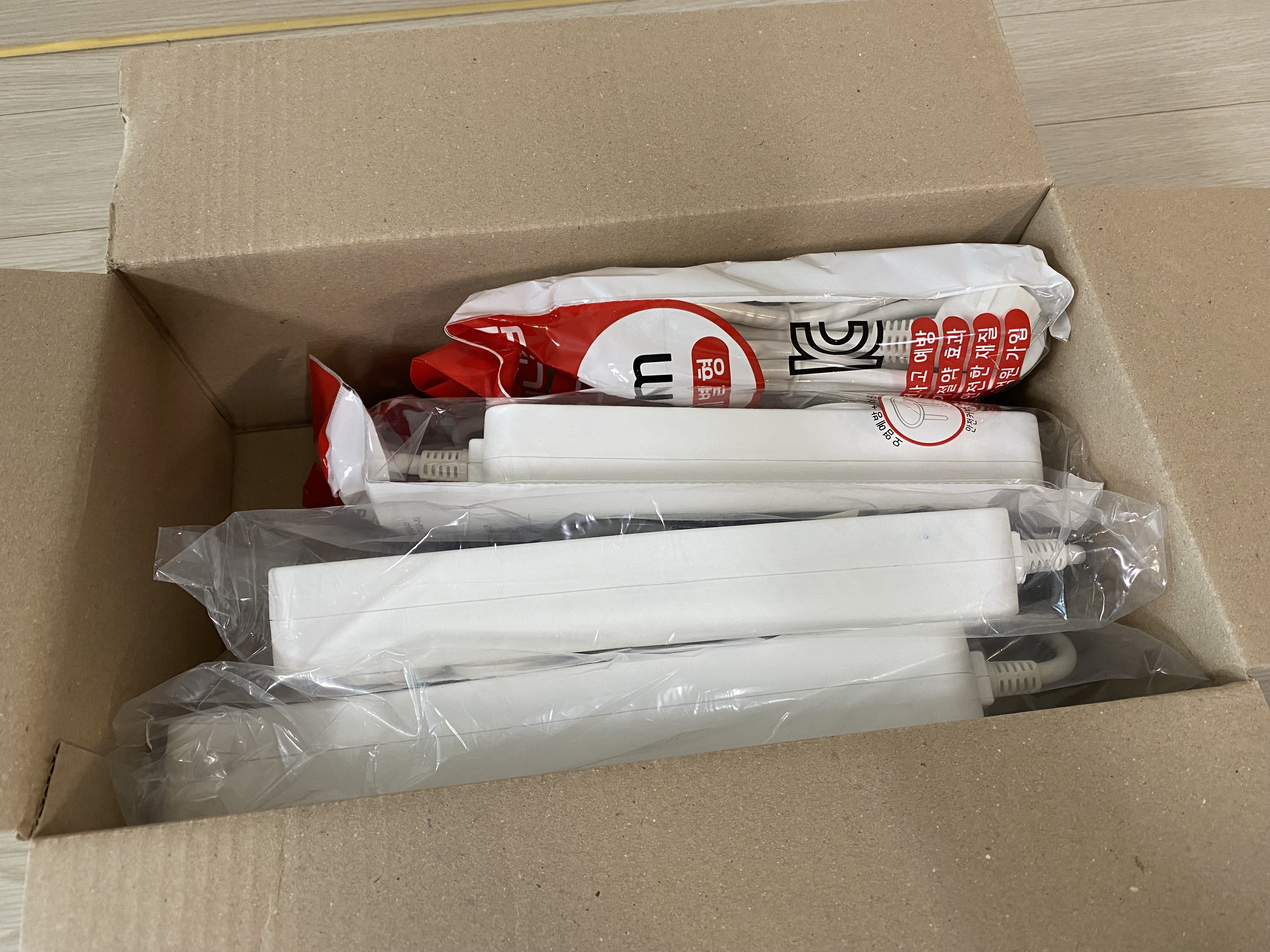 알리 한국 배송 제품이라 그런지 제품 상태는 물론 배송 상태도 양호합니다. 멀티탭마다 콘센트 마개(안전 커버)가 2개씩 있어서 따로 구매할 필요가 없습니다.