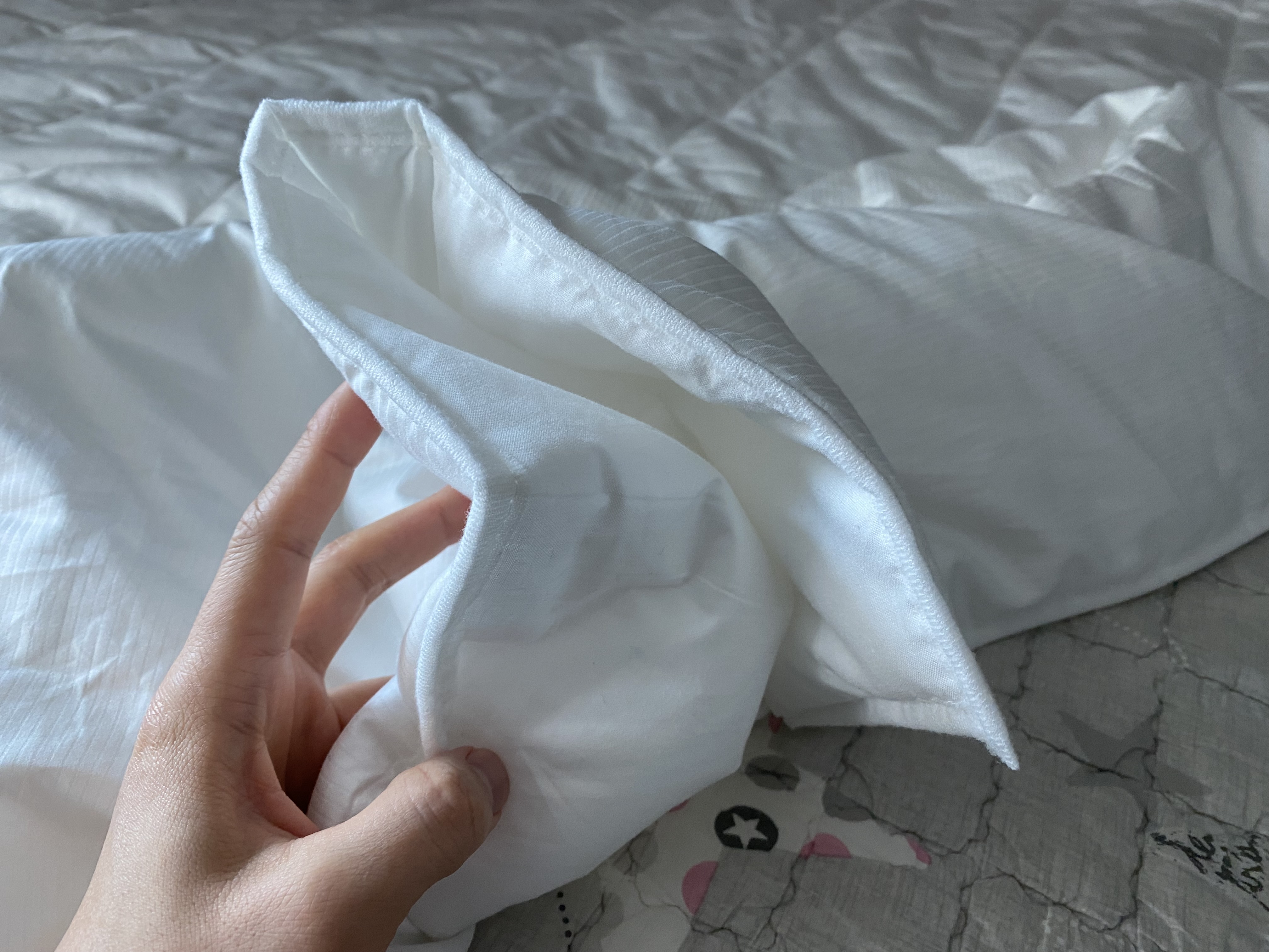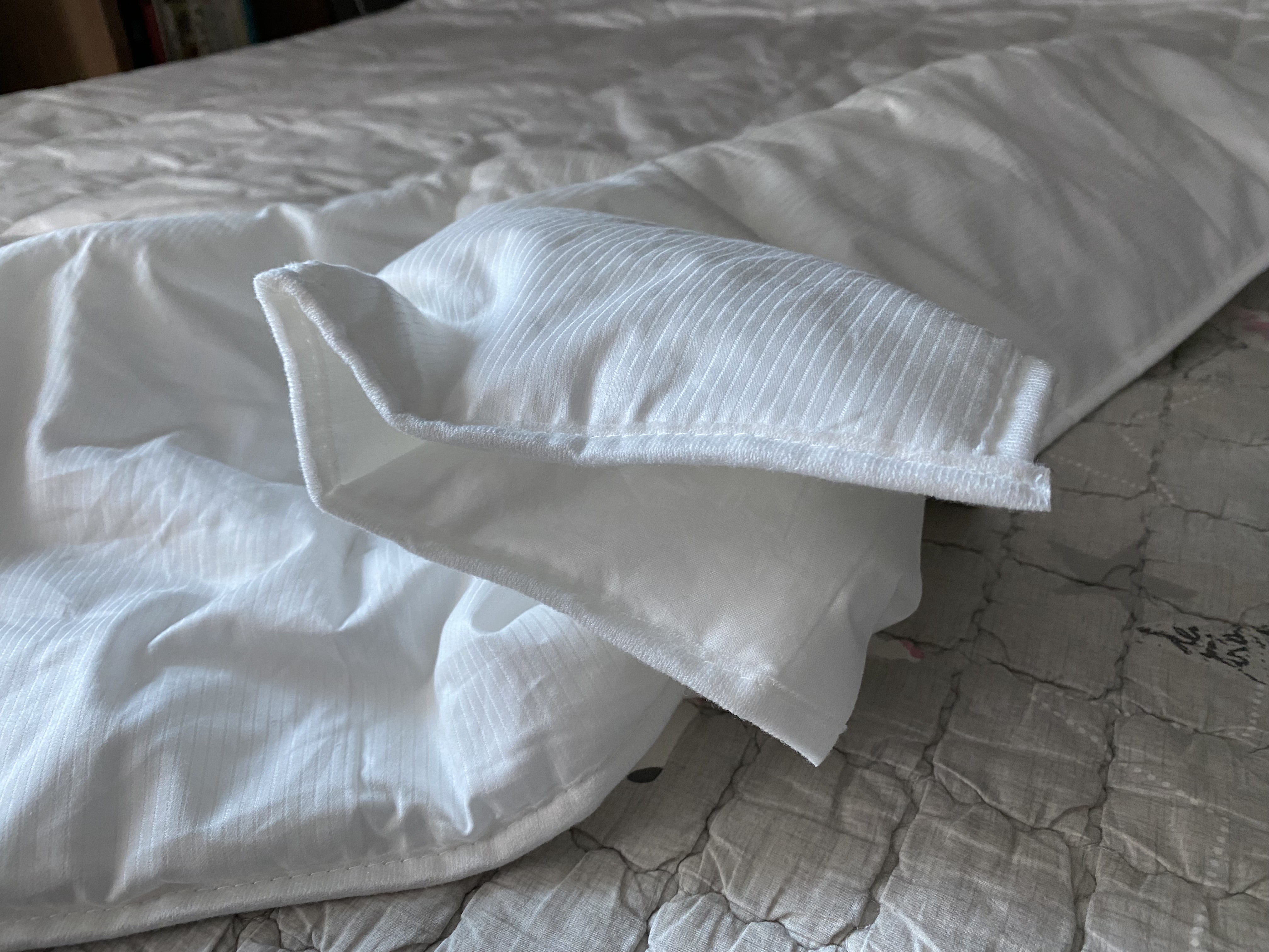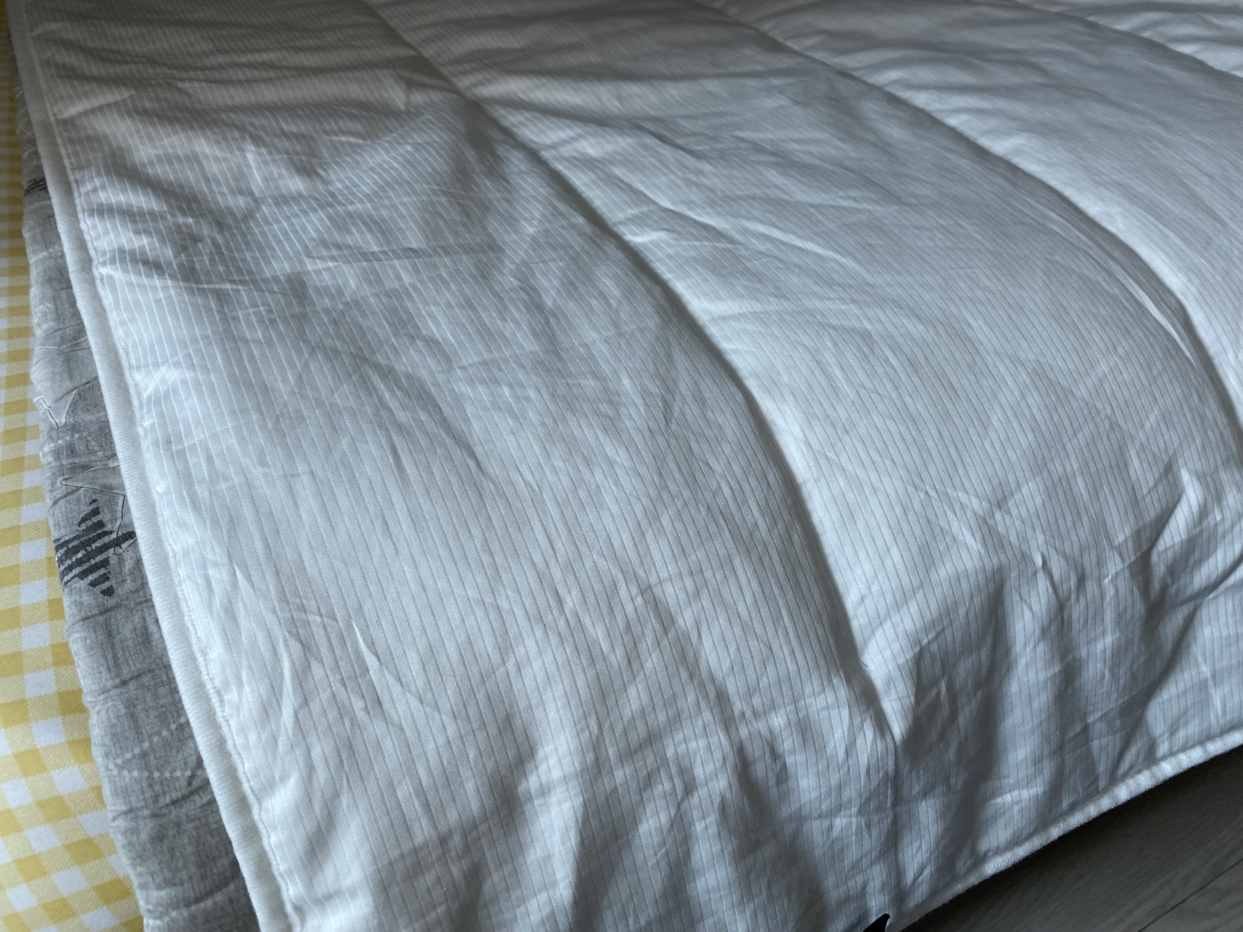 아마도 눈으로 보는 것보다 직접 만져보면 더 좋아할 것 같습니다. 이 무난하고 좋은 감촉을 표현할 방법이 없네요. 알레르망 같이 비닐느낌의 맨들맨들한 것도 아니고 여름 이불 같이 바스락 거리는 것도 아닌 부드러운 면 느낌으로 몸에 착 감기는 그런 이불입니다.