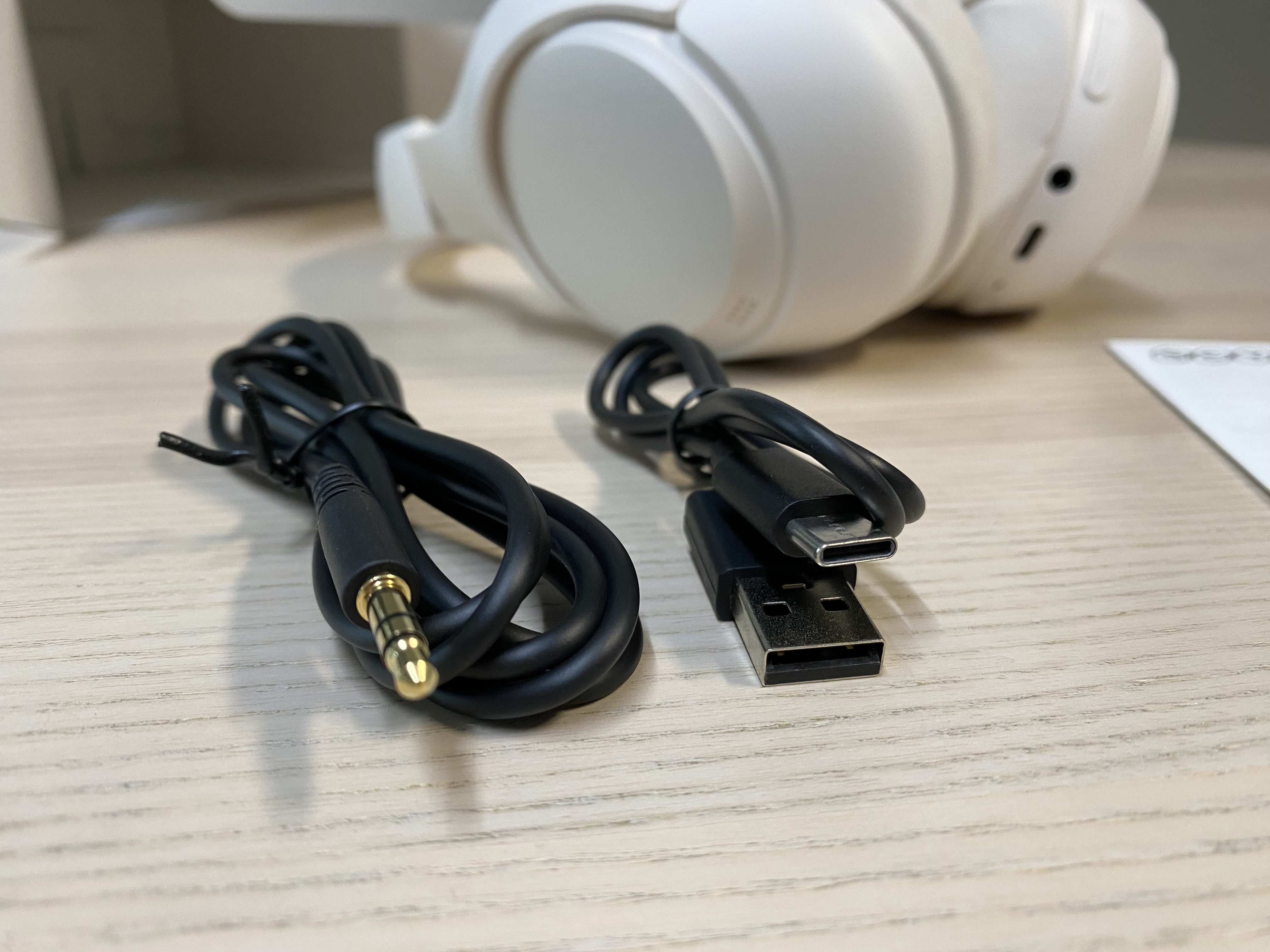 제품 구성은 헤드셋, 오디오 케이블, 충전 케이블, 설명서 이렇습니다.