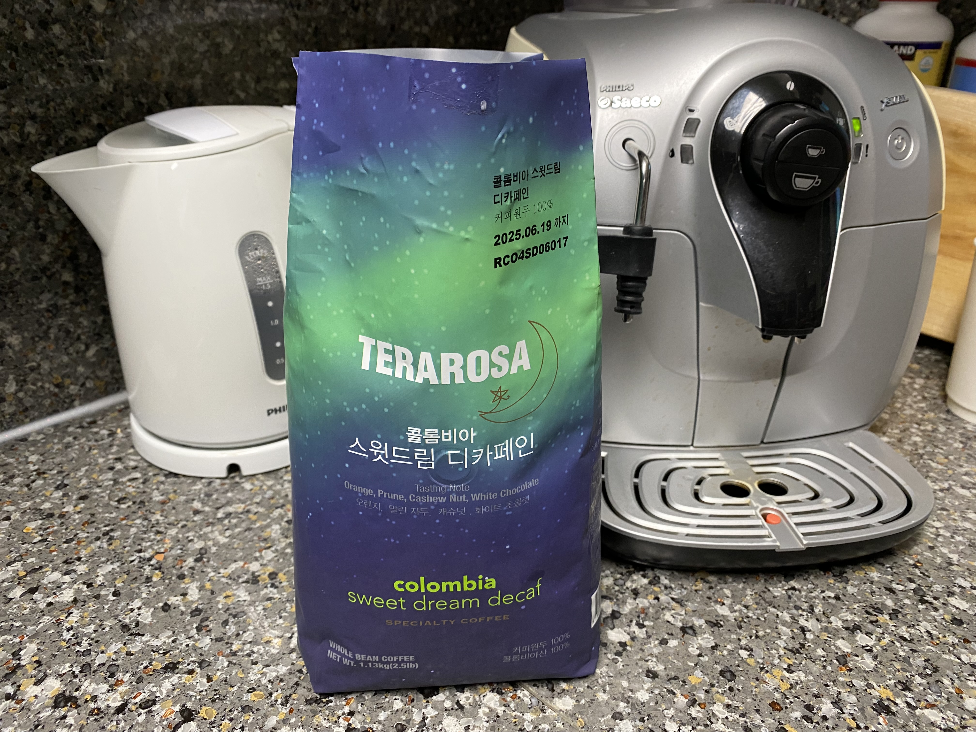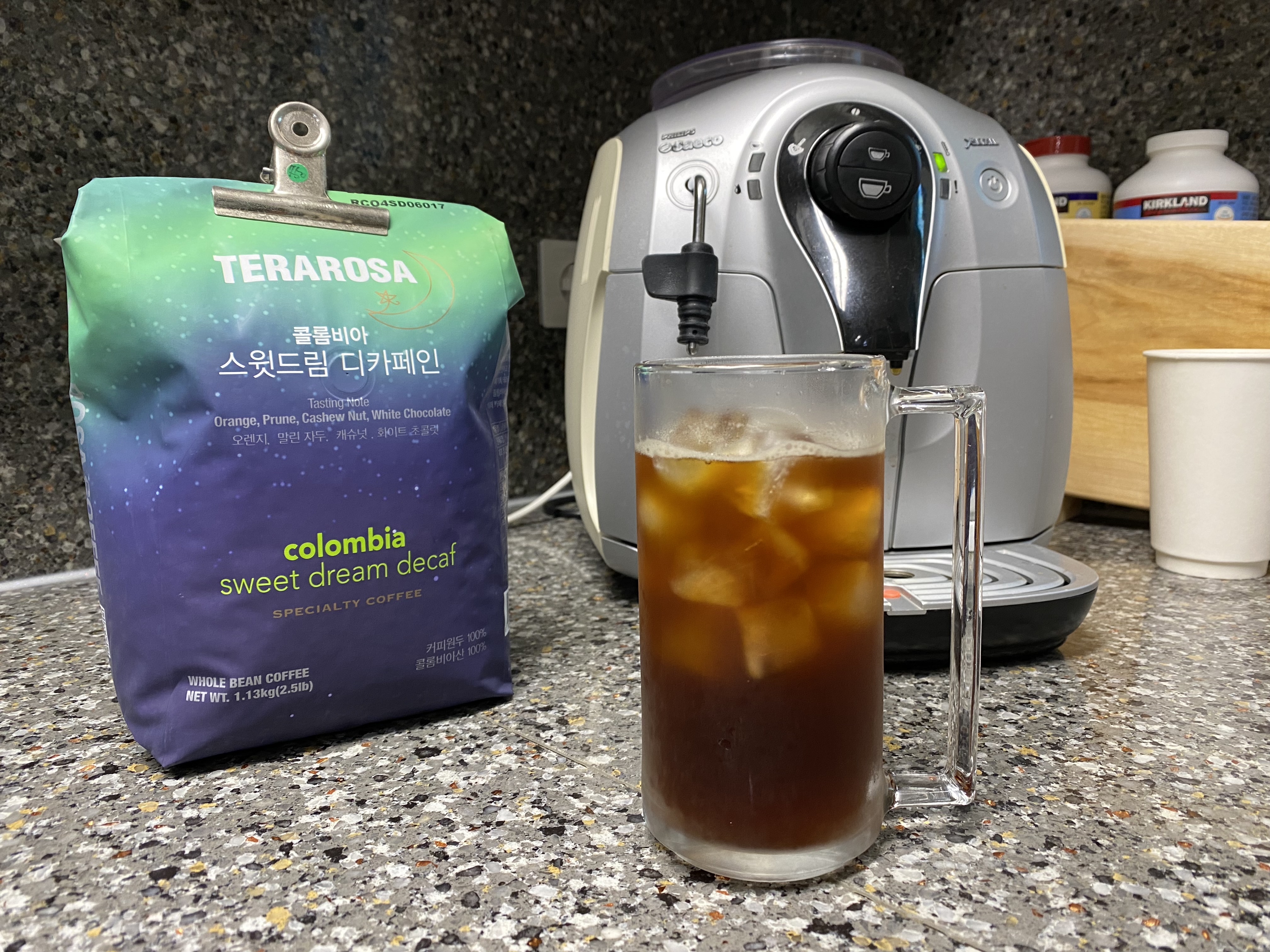 코스트코 TERAROSA 테라로사 콜롬비아 스윗드림 디카페인 원두커피. 제 기준으로는 기대 이상입니다. 카페인이 없어서 아주 살짝 어색하지만 크게 문제 될 것은 없는 것 같습니다. 하루 커피 3잔 이상 마시는 사람으로 카페인을 좀 줄여볼까 싶었는데 이번에 괜찮은 제품을 잘 찾은 것 같습니다. 갑자기 카페인을 줄이면 금단증상으로 두통이 올 수 있으니 다른 원두와 섞어서 조금씩 줄여볼까 합니다. 맛은 산미가 강한 것이 특징입니다. 다크로스팅이 아니라서 탄맛은 거의 없습니다. 전반적으로 밸런스가 괜찮다 생각합니다. 카페인 때문에 커피를 못 먹는 분이나 밤에 커피를 마시고 싶은데 잠 못 잘까 봐 걱정하는 분에게 추천하고 싶은 커피 원두입니다. 일단 한번 마셔보고 다음에 또 살지 판단하세요. 저는 마음에 듭니다. 다른 디카페인 원두도 도전해보고 싶네요.