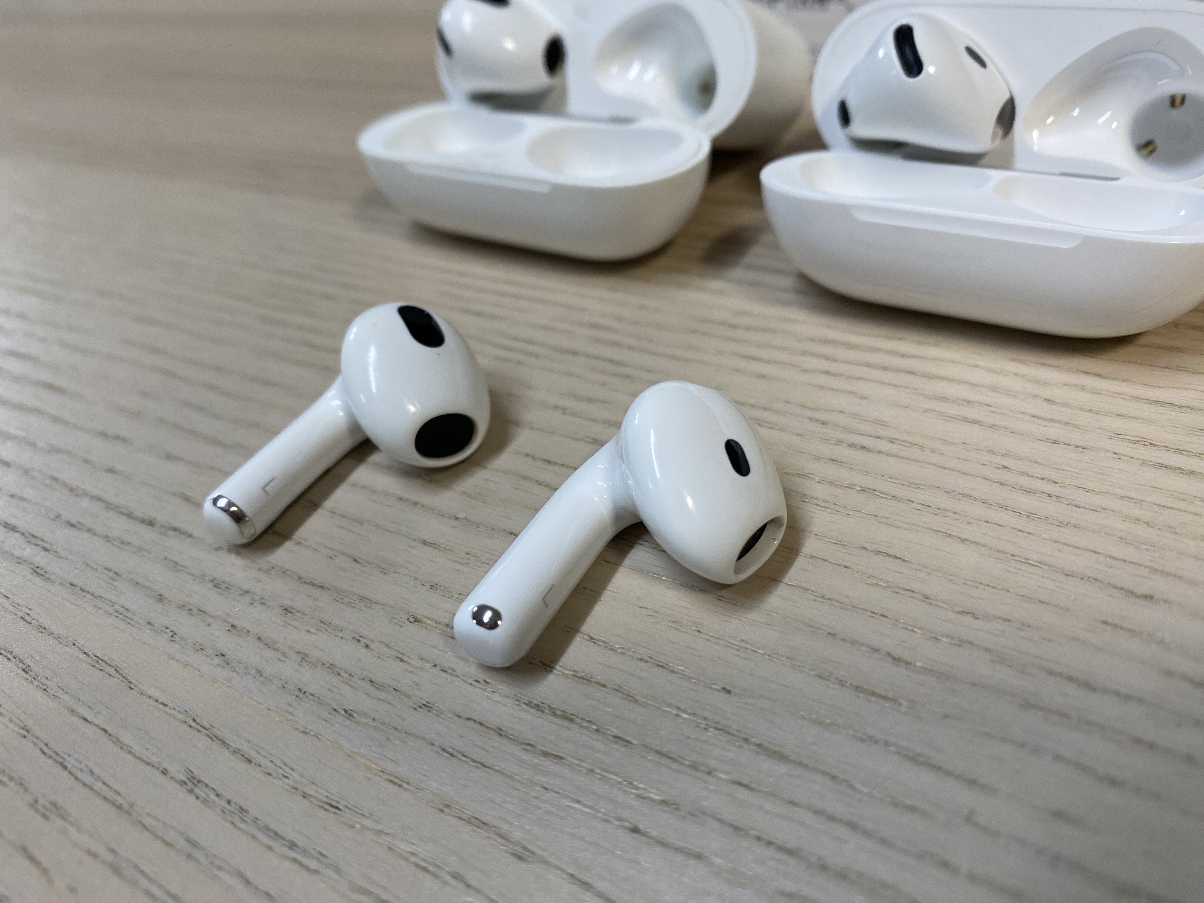 에어팟 4세대 무선 이어폰은 대강 이렇게 생겼습니다. 3세대와 조금 달리진 모습을 볼 수 있습니다. 밑에 있는 사진으로 확인하세요.