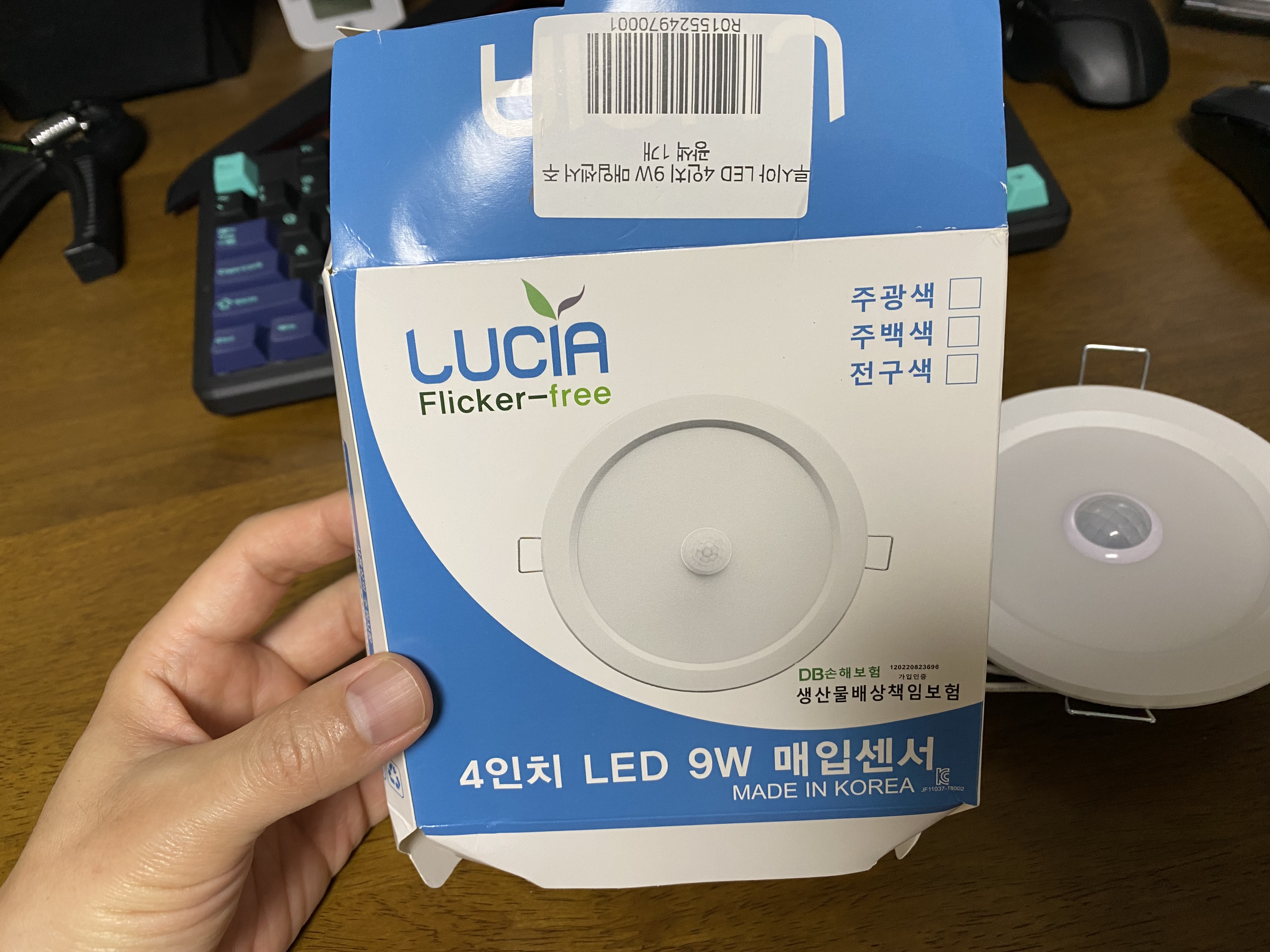 쿠팡에서 구매한 LUCIA 루시아 4인치 LED 9W 매입센서등. 정말 만족스럽습니다. 센서도 제대로 잘 작동하고, 9W라 작은 창고를 밝게 비추기에는 부족함이 없는 제품이라 생각합니다.