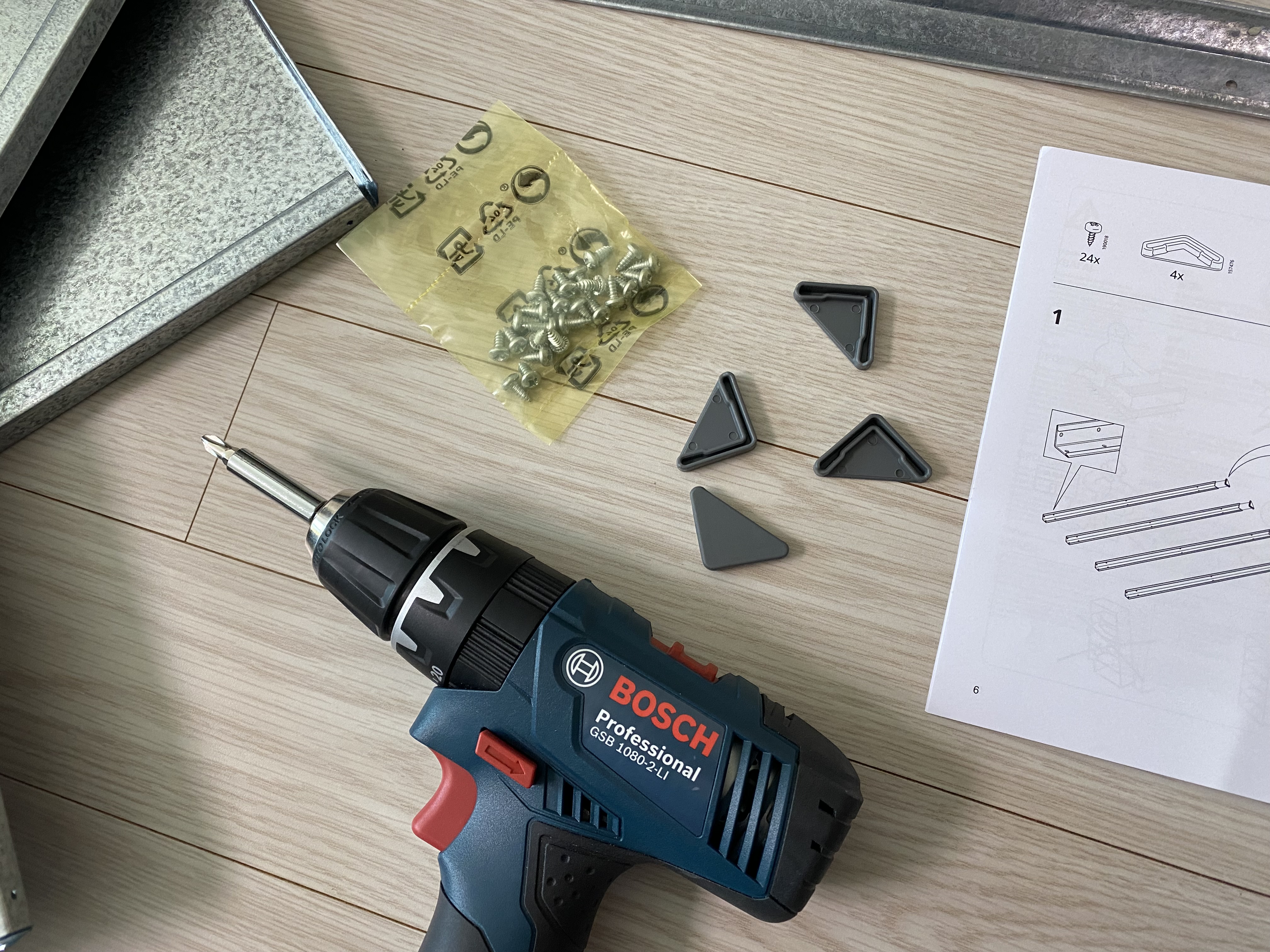 이케아 HYLLIS 휠리스 선반은 볼트가 많아서 전동 드라이버가 있으면 좀 더 편리하게 조립할 수 있습니다. 없으면 시간과 힘이 많이 들어갑니다.