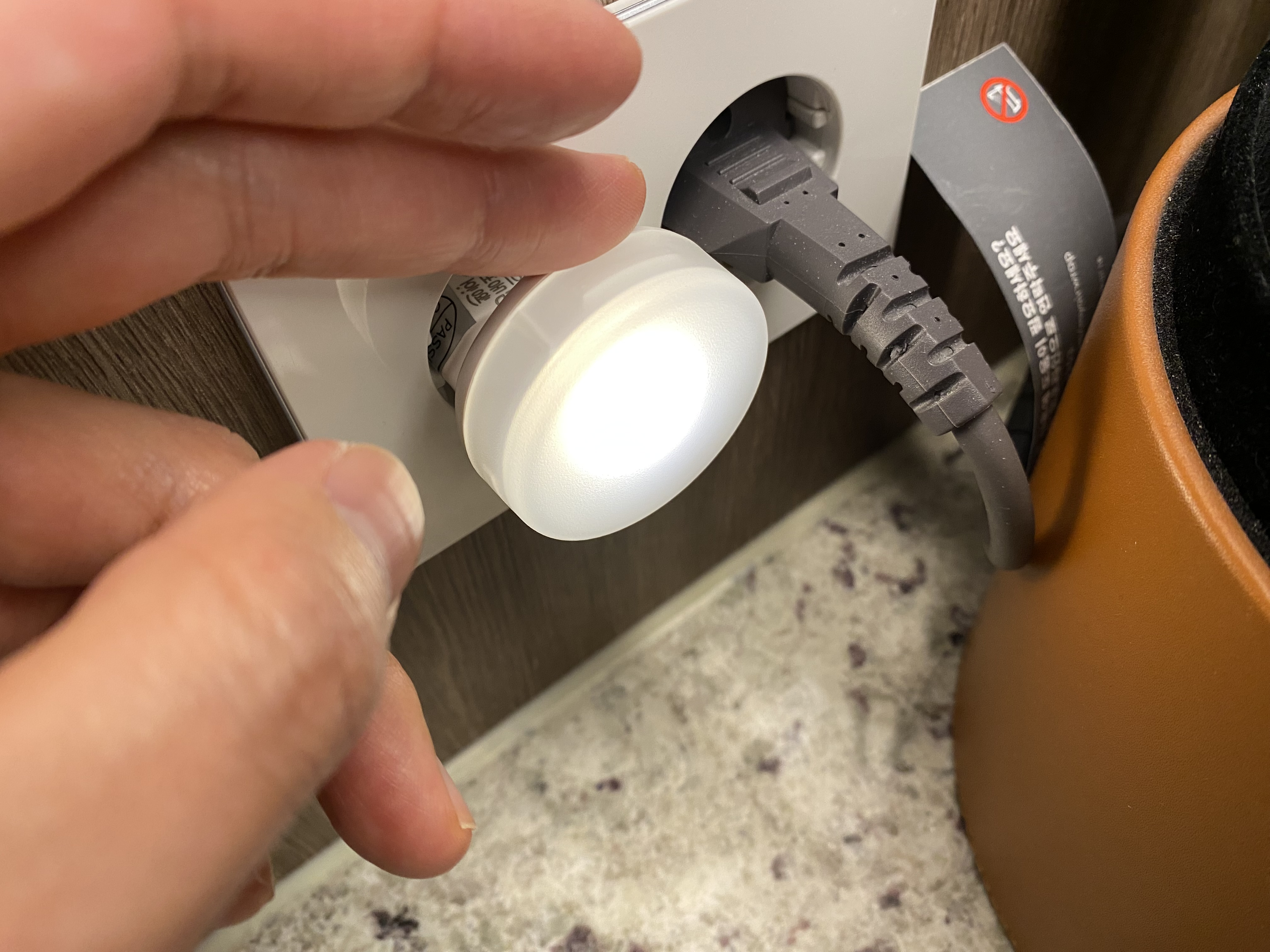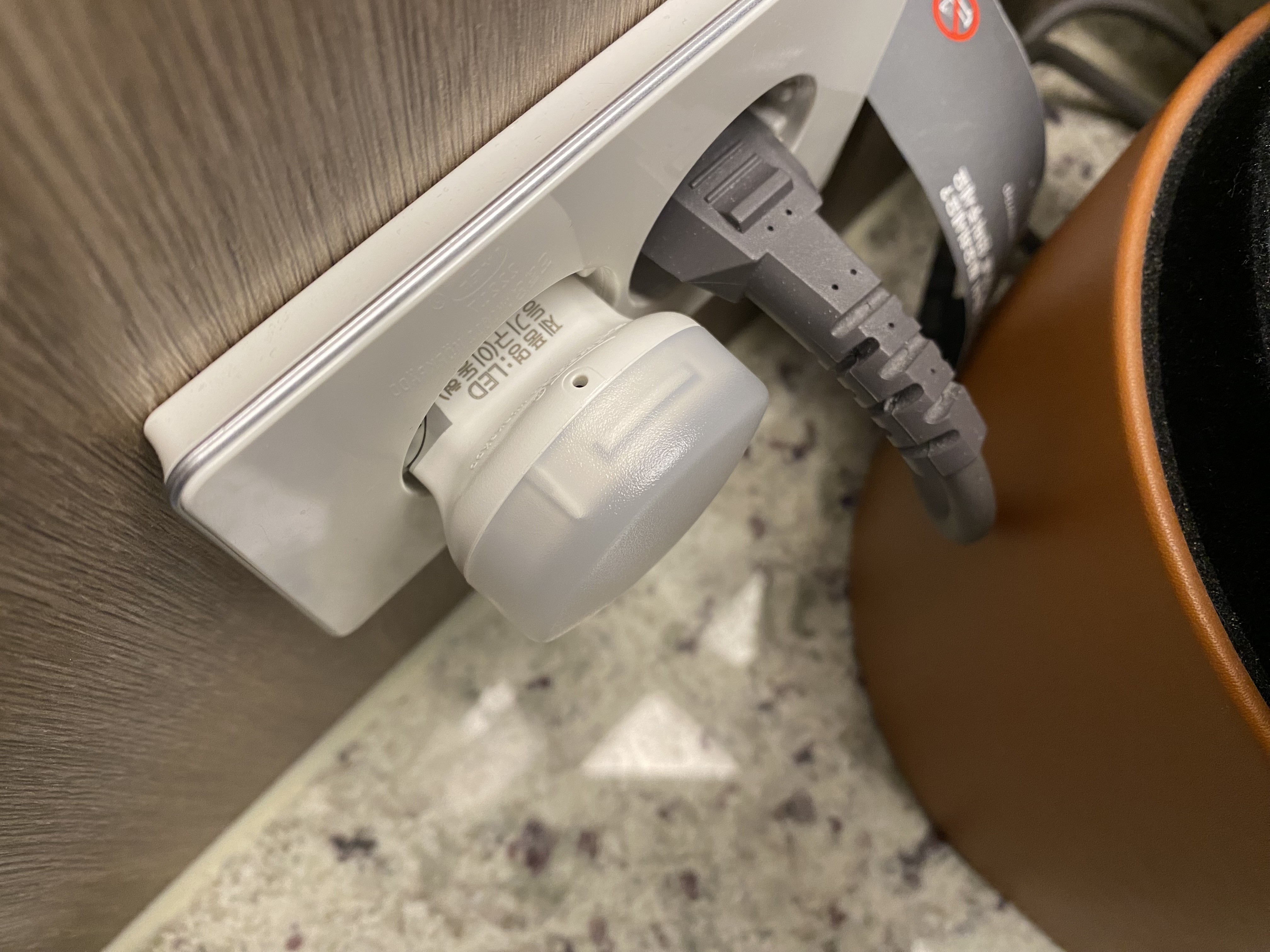 콘센트에 바로 연결할 수 있는 구조이기는 하나 등부분이 조금 커서 멀티탭에서 사용하기에 어려울 수도 있습니다.