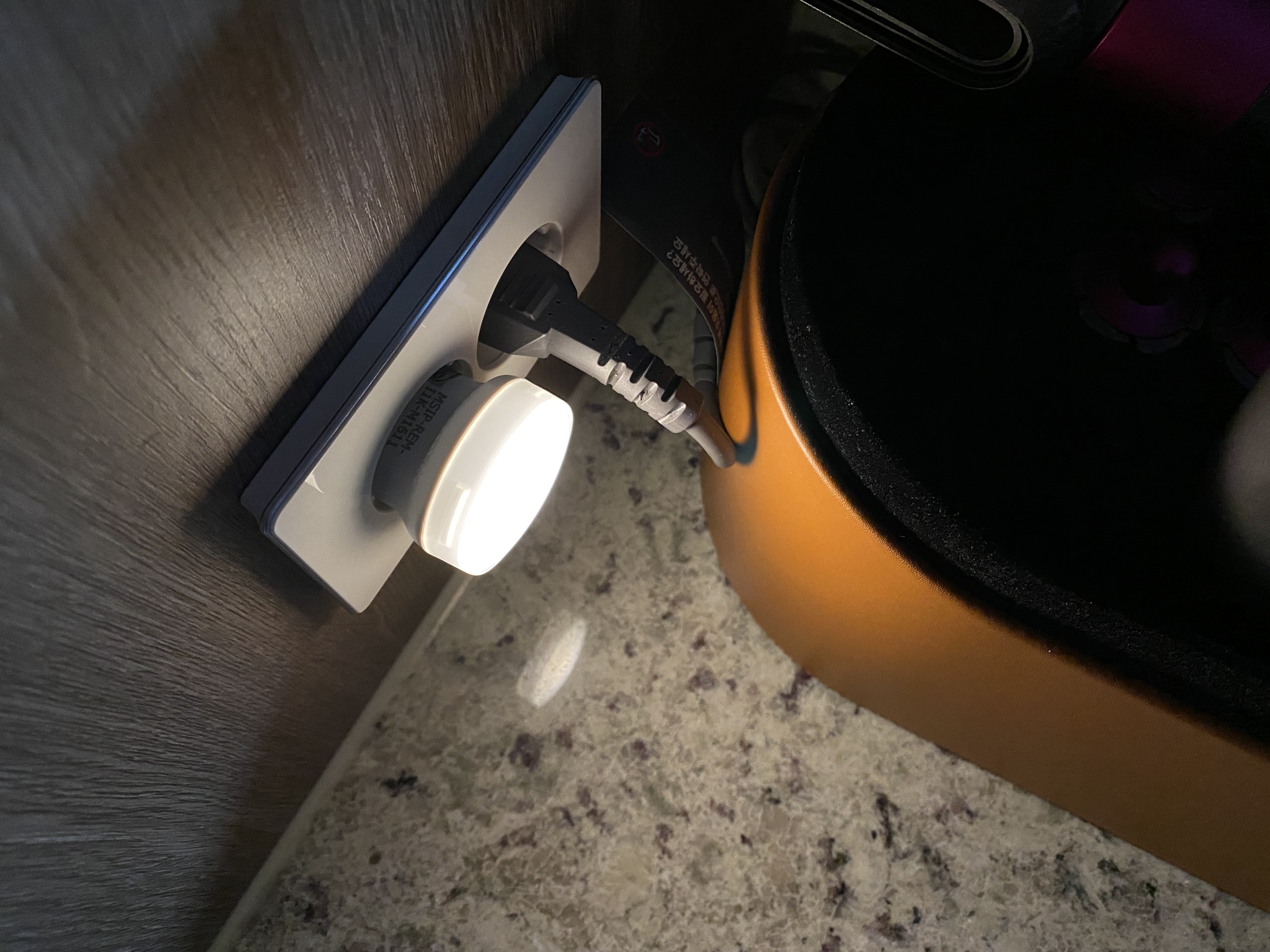 콘센트에 바로 연결해서 사용할 수 있는 작은 야간 센서등입니다. 전기는 0.5W 정도 먹습니다. 적은 와트수만큼 아주 밝은 빛을 내는 제품은 아닙니다.