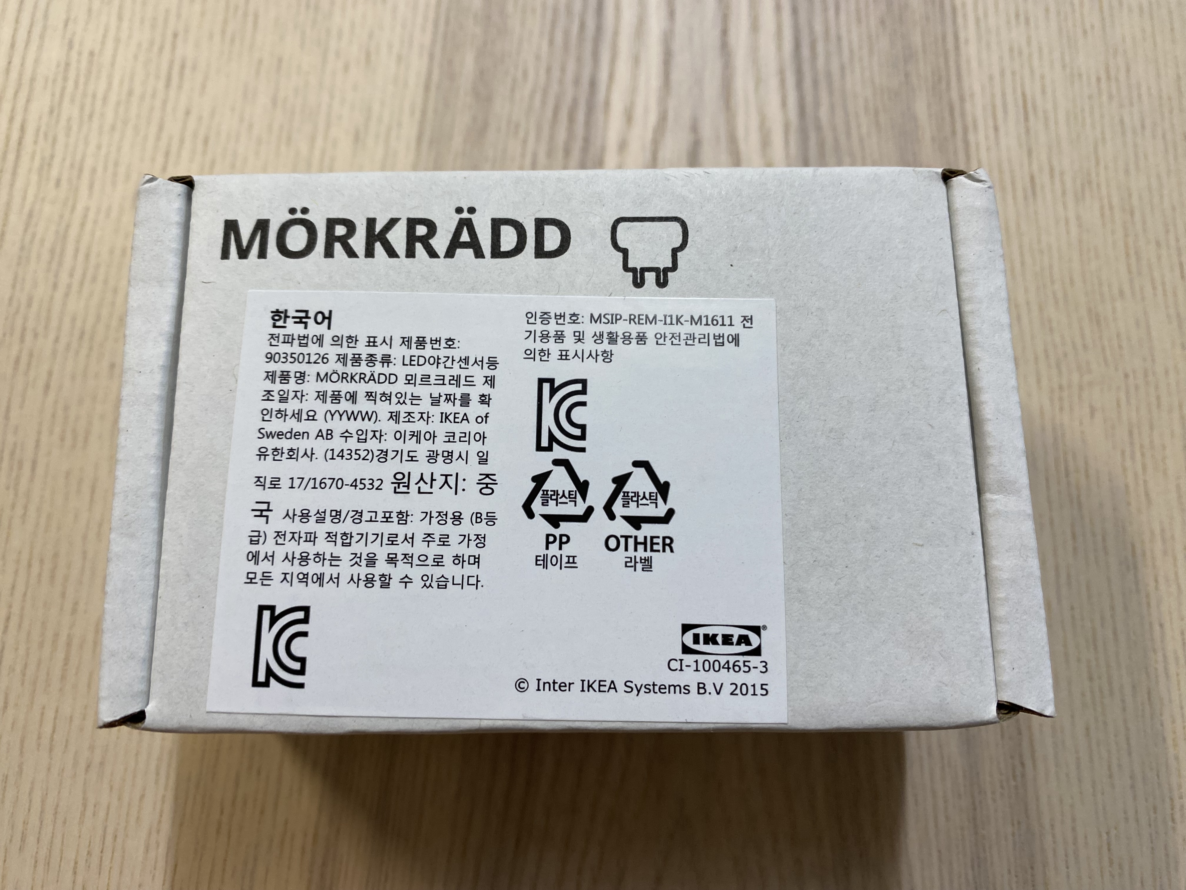 이케아(IKEA)에서 가구를 주문할 때 심심해서 야간 센서등도 하나 샀습니다. 'MORKRADD 뫼르크레드'라는 제품인데 사두면 나중에 필요할 것 같은 그런 제품입니다.