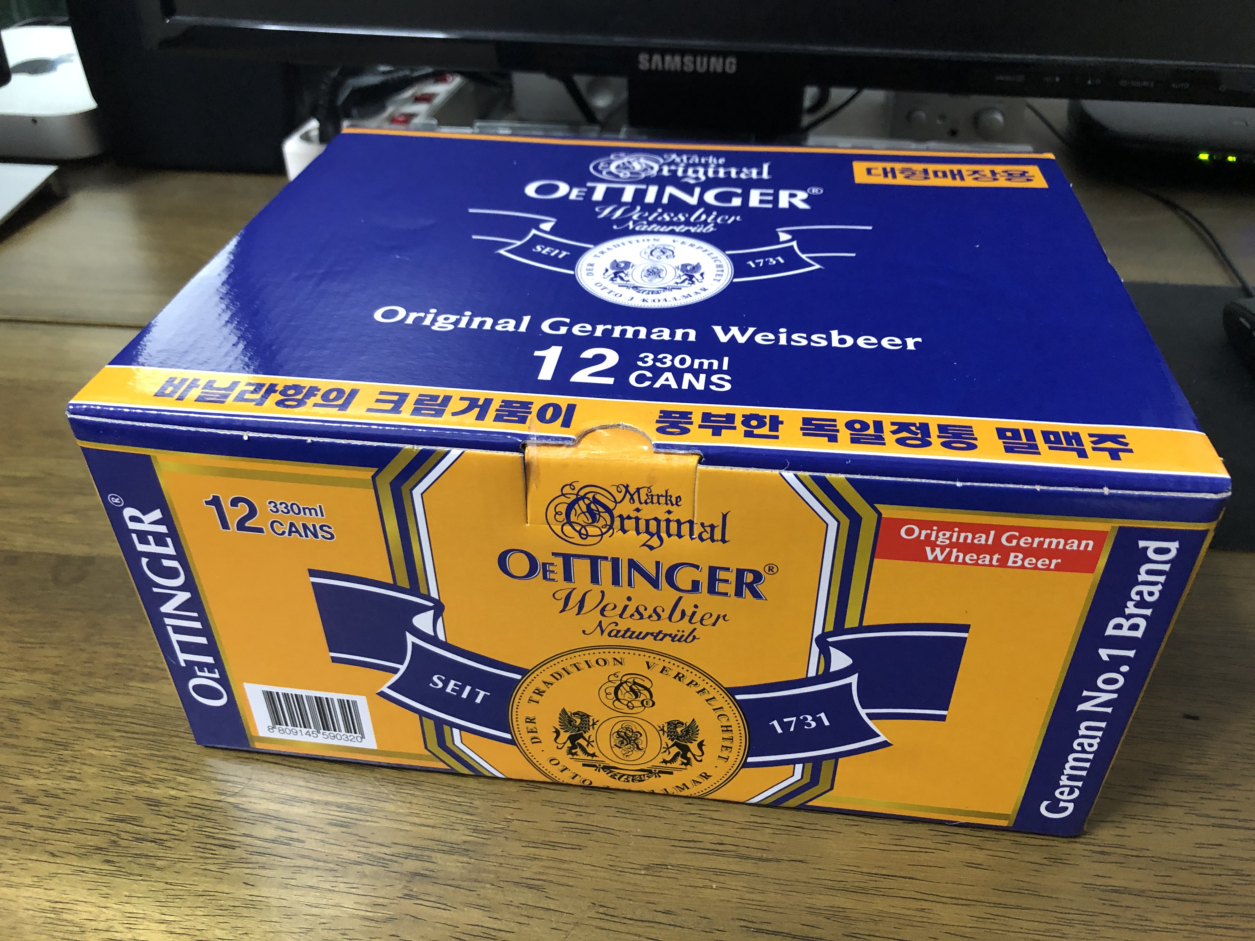 요즘은 싸서 코스트코에서 맥주를 사 먹습니다. 예전에 지나가다 너무 저렴해서 구매한 OETTINGER 웨팅어 바이스 맥주. 330ml 12캔에 12,290원으로 저렴해도 너무 저렴하네요.