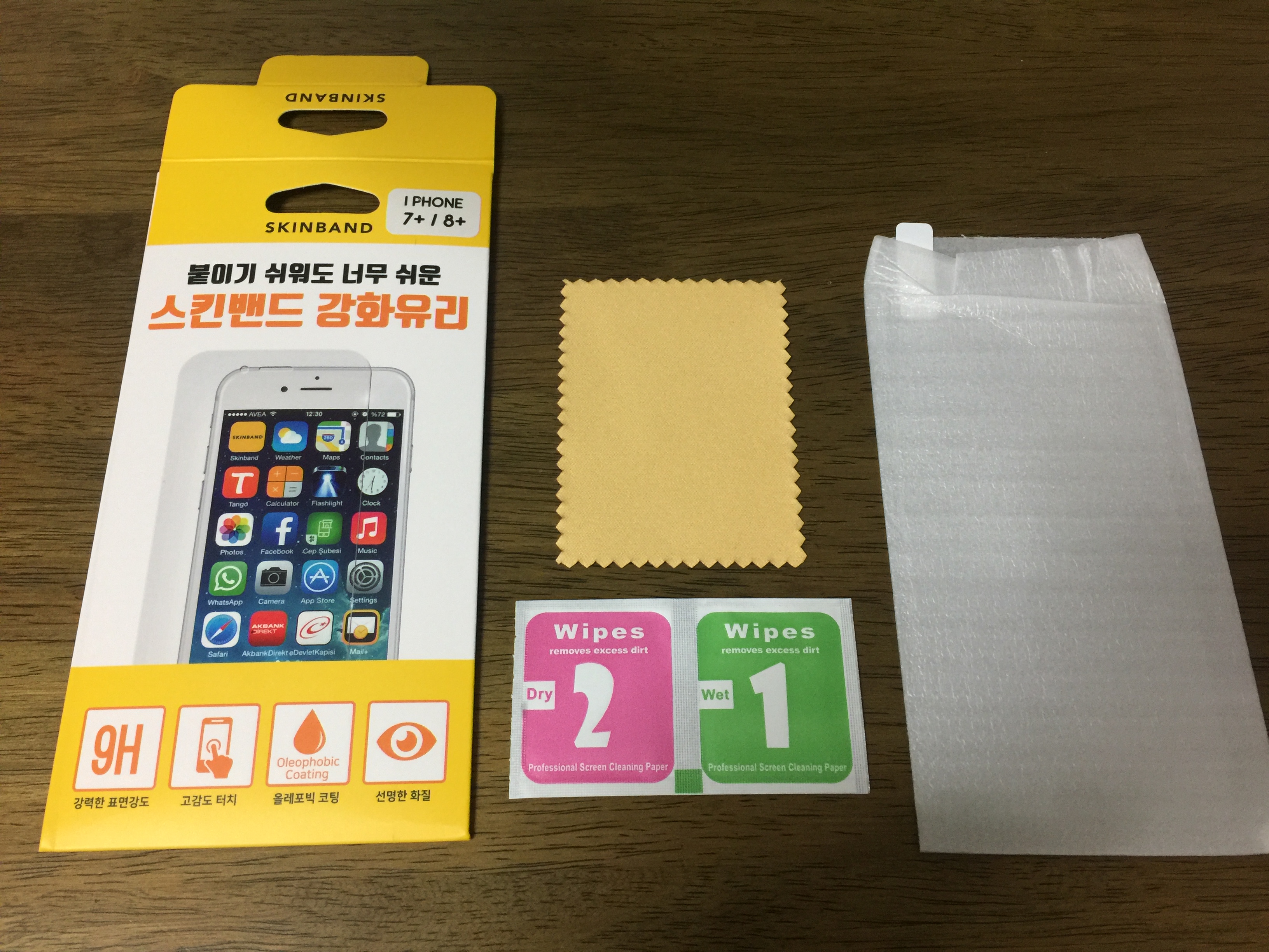 우선 스마트폰 액정을 촉촉한 걸(Wet)로 닦고 마른 걸(Dry)로 닦고 먼지가 있나 없나 확인한 후 강화유리를 붙이면 끝. 먼지 없이 붙이는 것이 포인트인데 처음에는 정말 어렵지만 하다보면 별거 아닙니다. 손 씻고 먼지가 없는 책상에서 작업하는 것을 추천합니다.