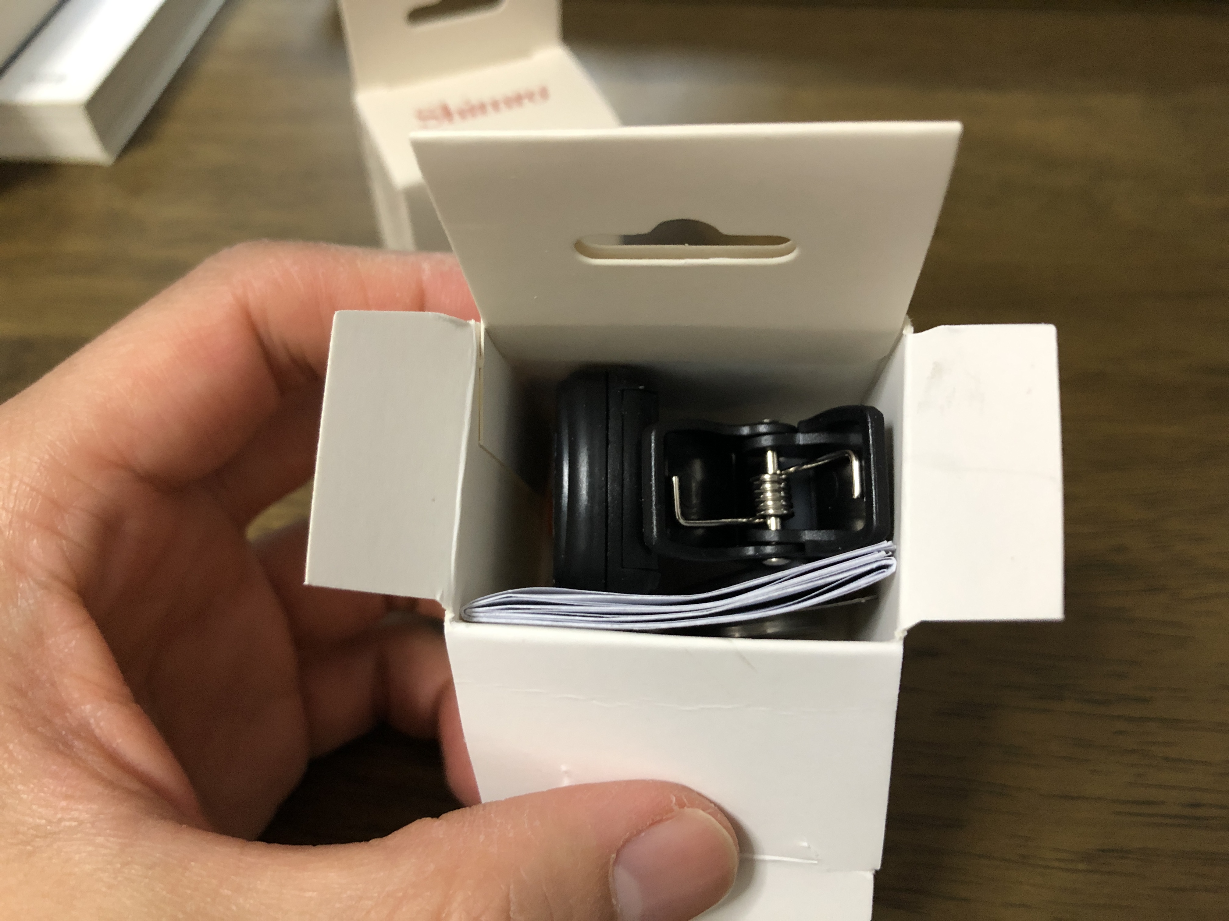 Shimro 심로 튜너 SCT-100을 개봉한 모습입니다. 클립형 튜너 하나와 설명서 그리고 건전지가 들어있습니다.