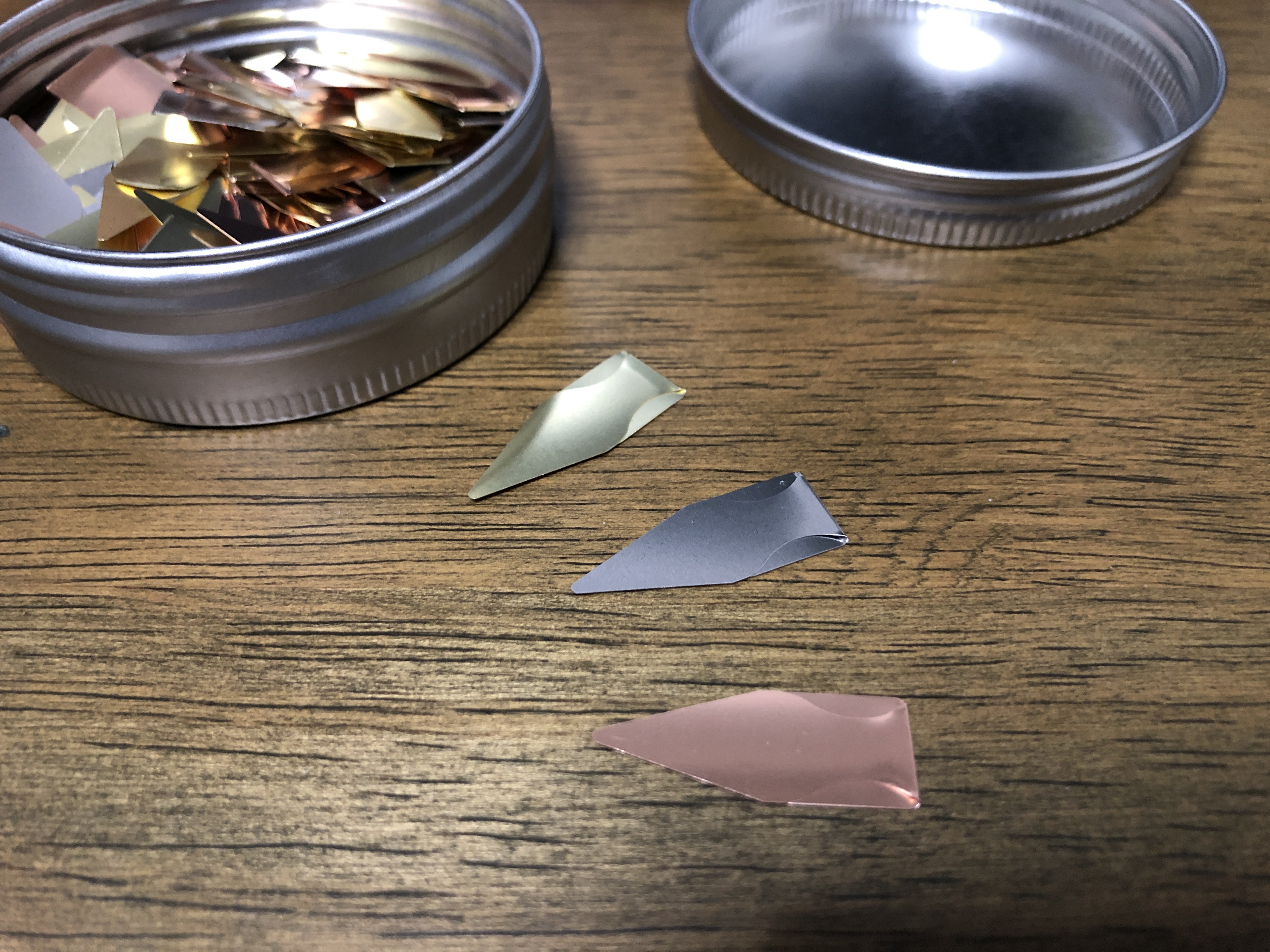 북다트 케이스를 열어보니 3가지 색상(브론즈, 골드, 실버)의 금속 북다트가 들어있네요. 구매를 할 때 옵션에서 200개(Mixed)를 선택해서 3가지 색상이 섞인 북다트를 받았습니다. 무슨 색이 더 마음에 드는지 잘 모르겠고 다 그냥 다 예쁜거 같아요. 200개가 들어있어서 그런지 북다트 케이스가 좀 묵직하네요. 필요한 만큼 덜어서 다녀야 할 것 같습니다.