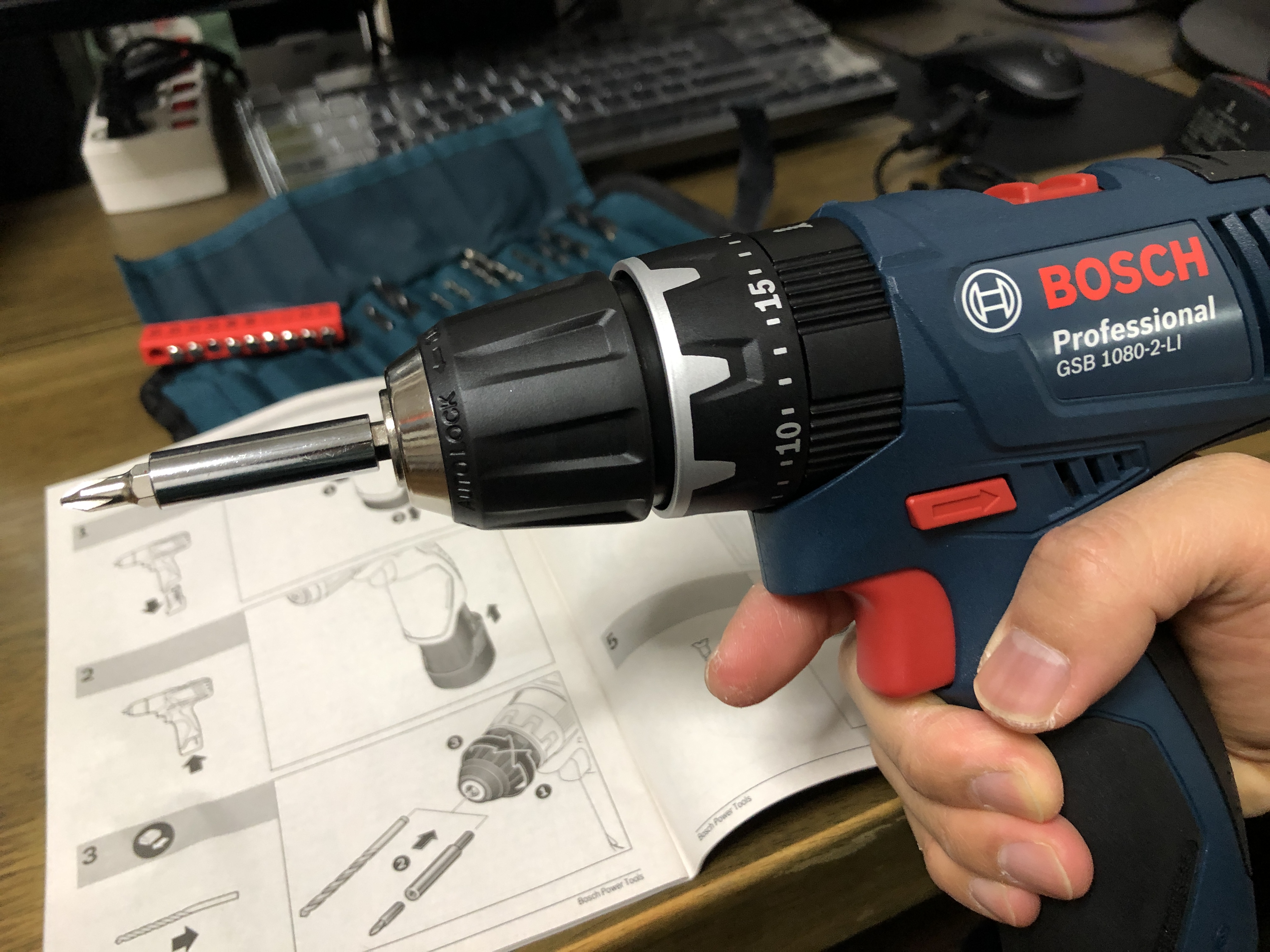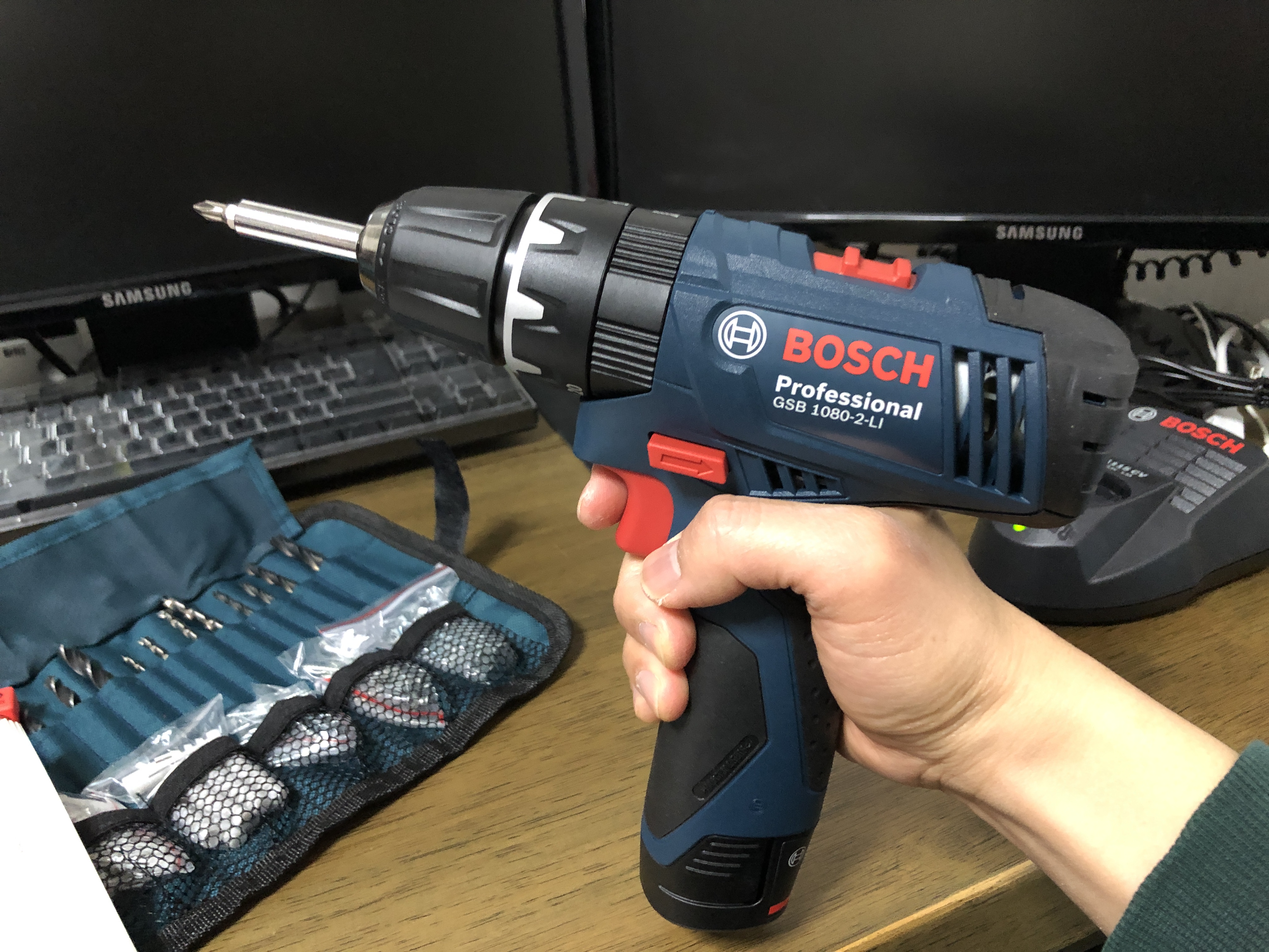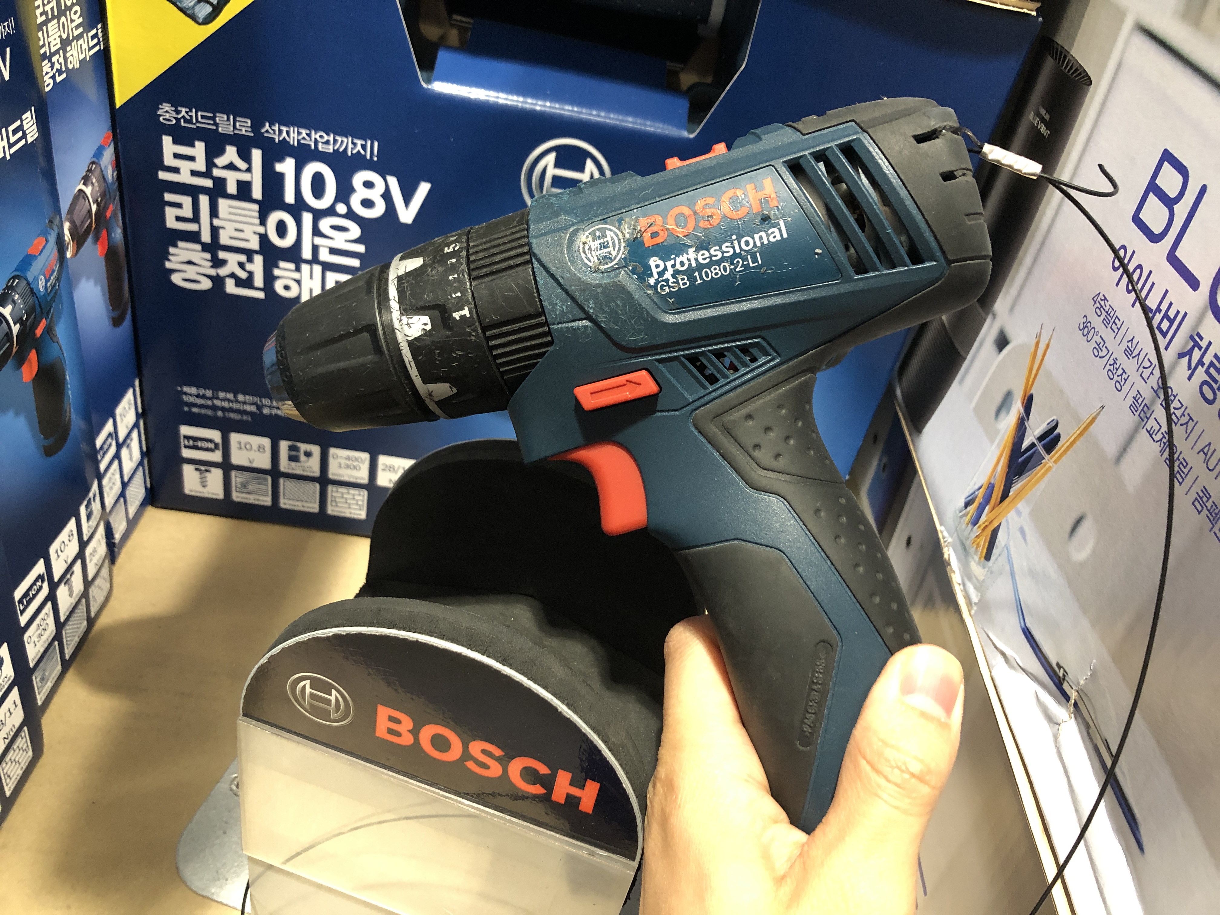 이것이 바로 10.8V 보쉬 전동 드릴입니다.