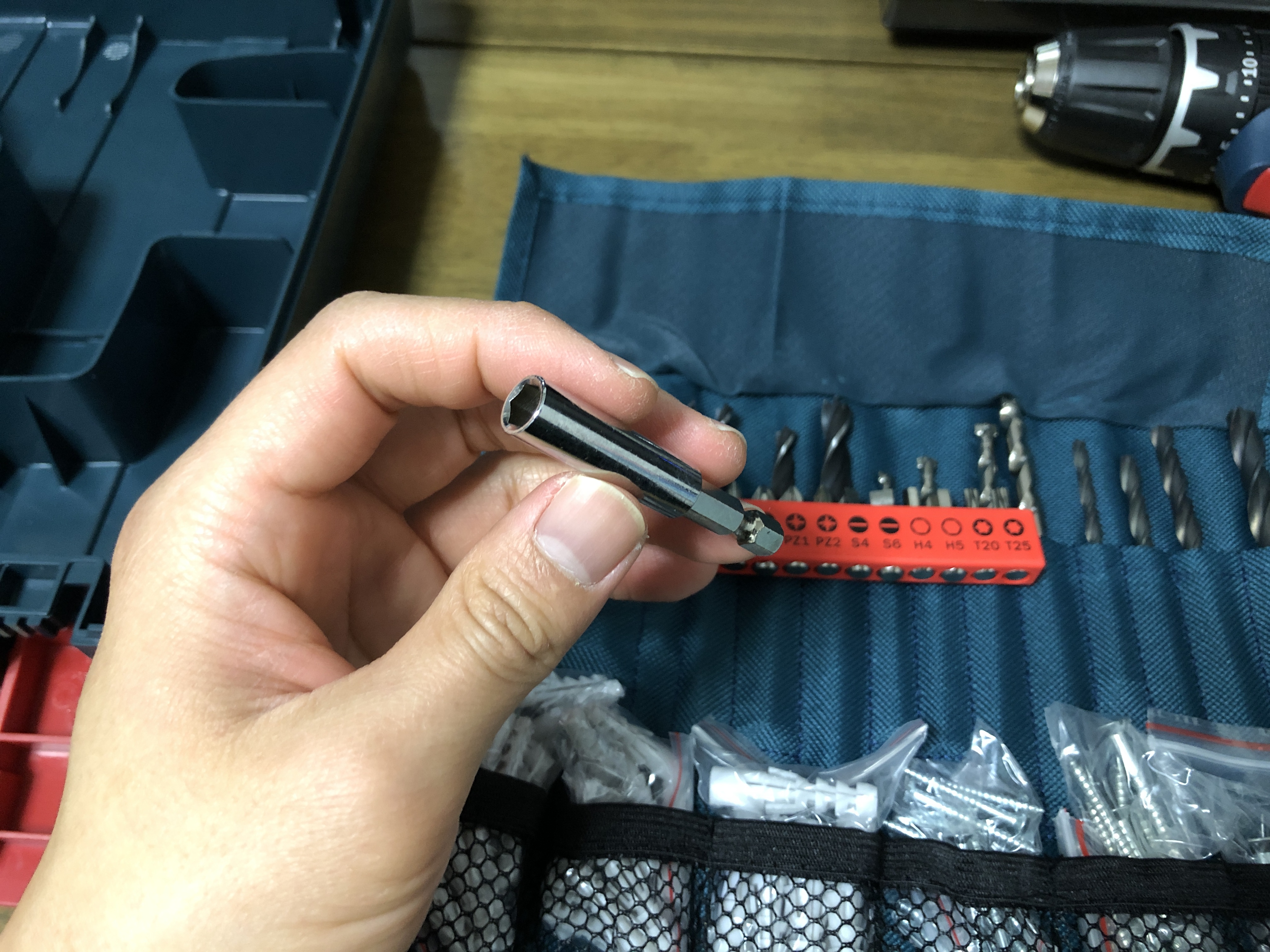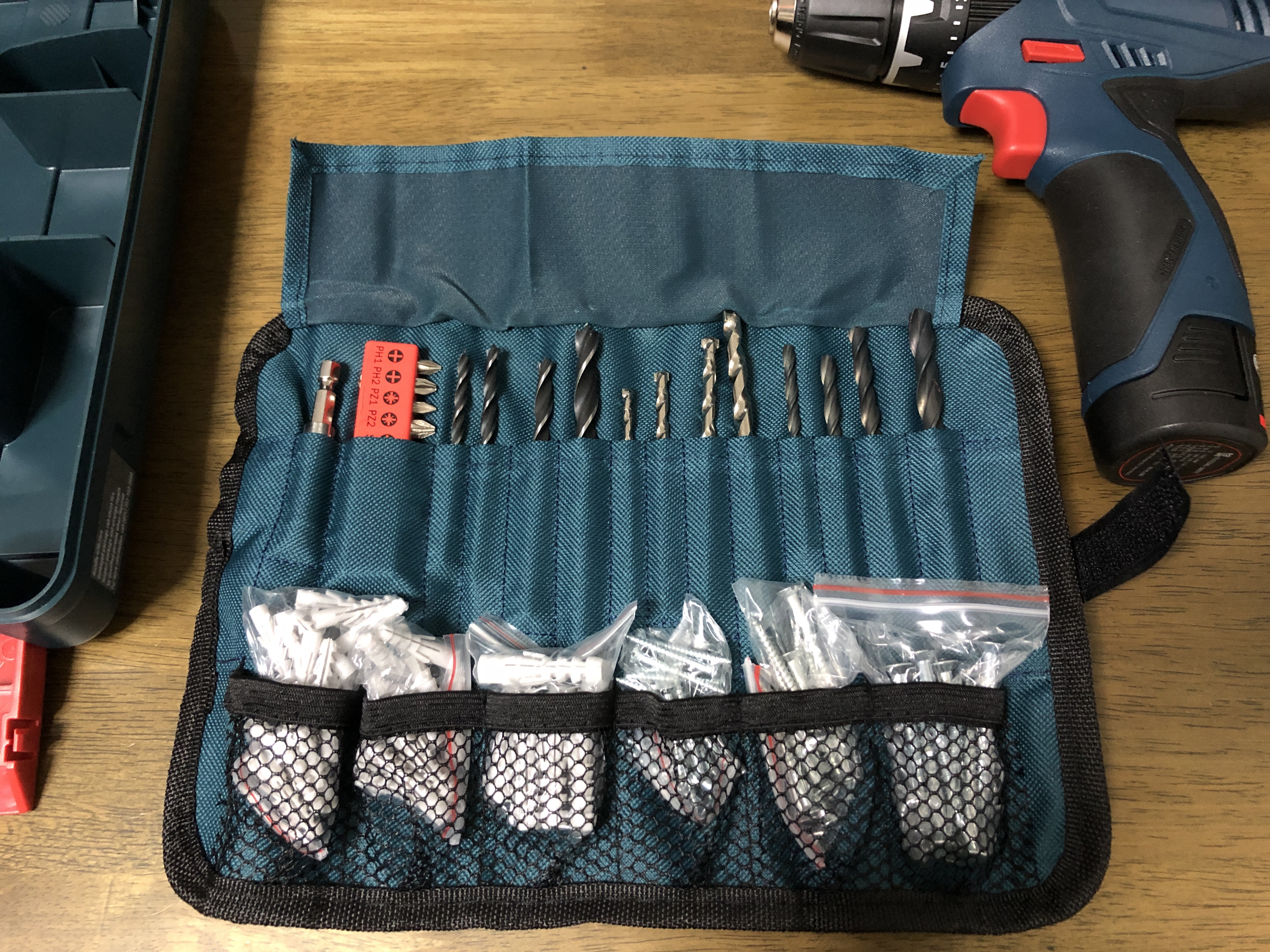 보쉬 드릴을 사용할 때 필요한 각종 도구가 기본적으로 포함되어 있습니다. 목재, 콘크리트, 철에 구멍을 뚫을 수 있는 각종 드릴 비트, 드라이버 비트, 못, 볼트, 앙카 등이 있습니다.
