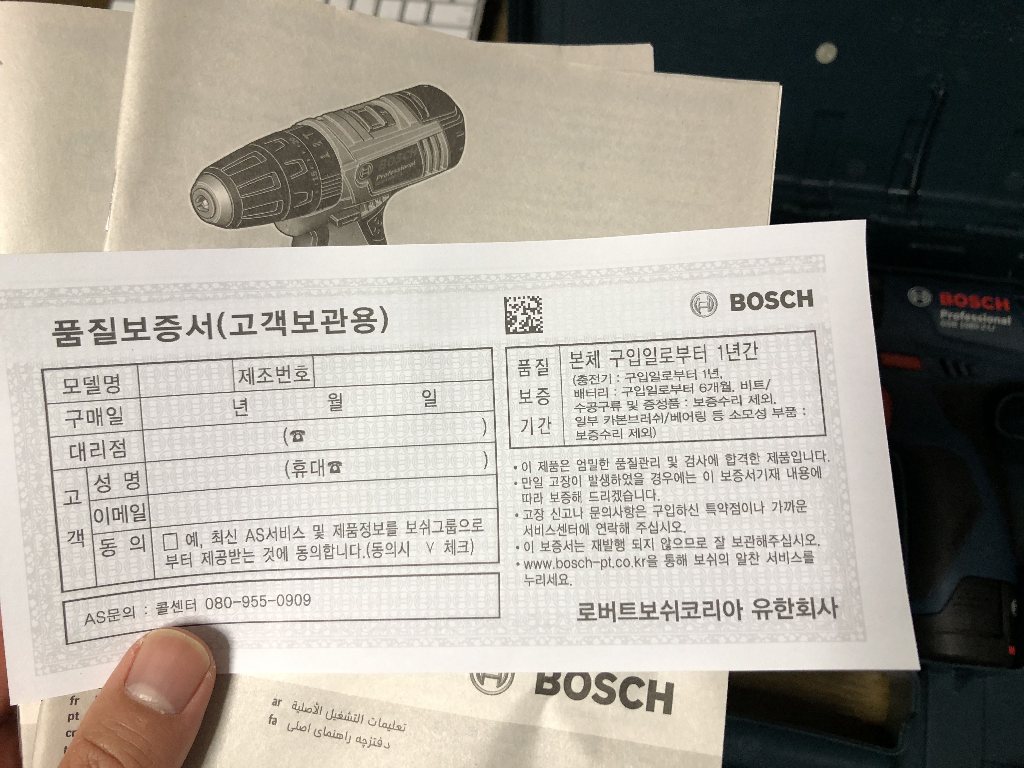 품질보증 기간은 본체 구입일로부터 1년간.