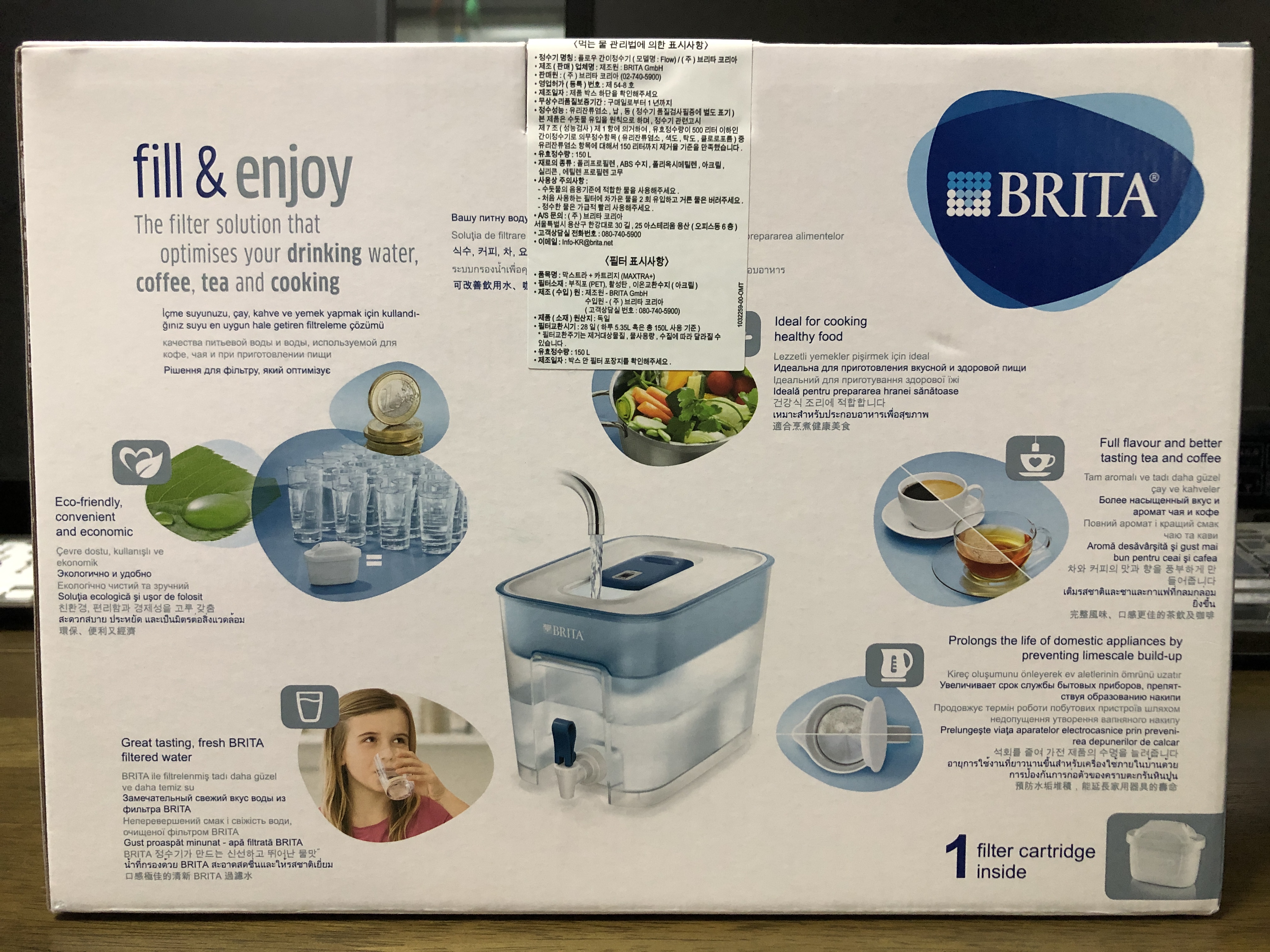 브리타 정수기의 구성품을 이렇습니다. 정수기 필터는 1개가 포함되어 있네요.