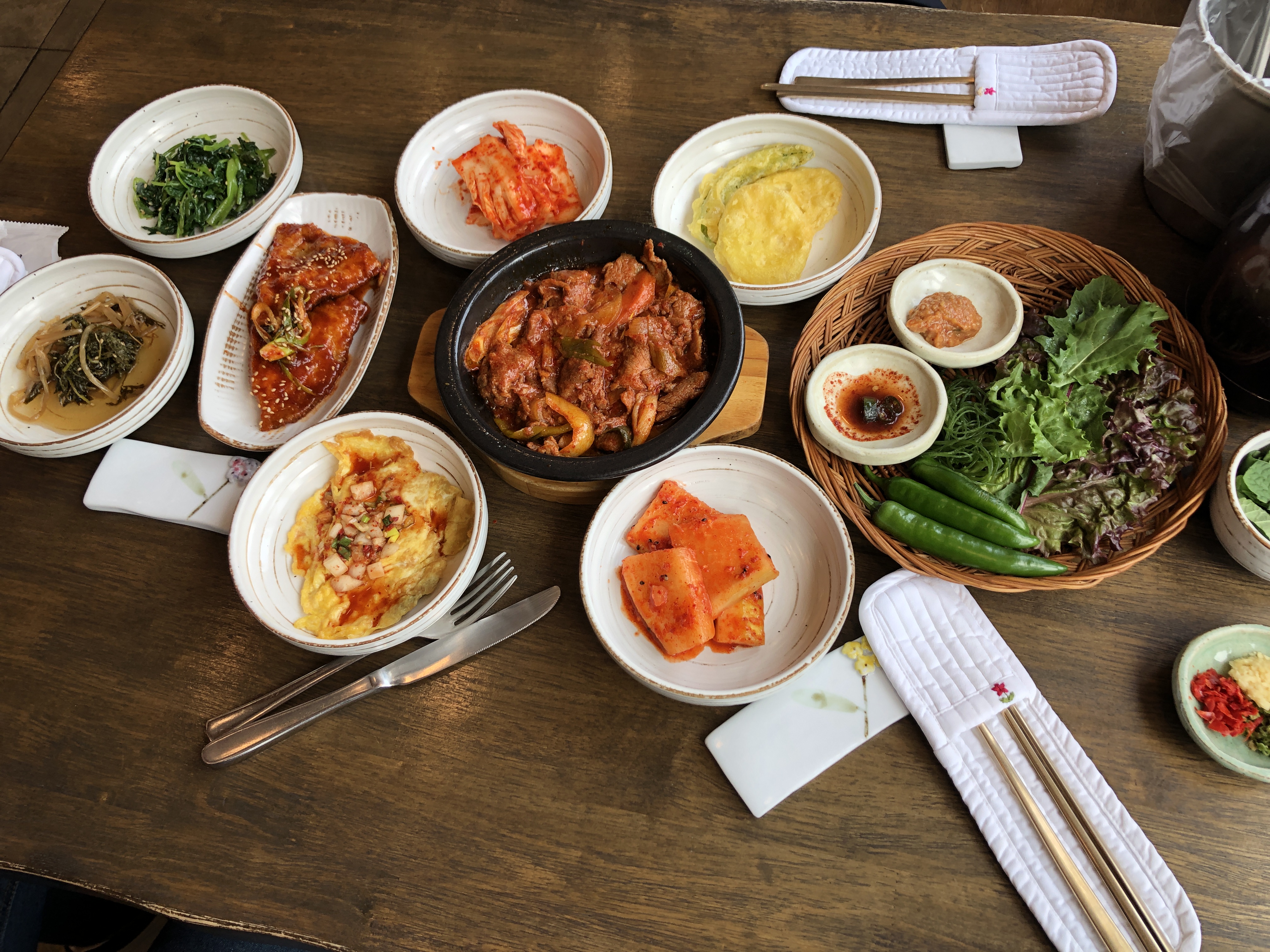 추어탕, 갈비탕, 돈까스를 주문하니 기본으로 이렇게 반찬이 깔리네요. 아마도 추어탕, 갈비탕에 포함된 반찬이 아닐까 싶습니다. 사실 탕이 안 나와도 이걸로 밥을 다 먹을 수 있는 충분한 양입니다.