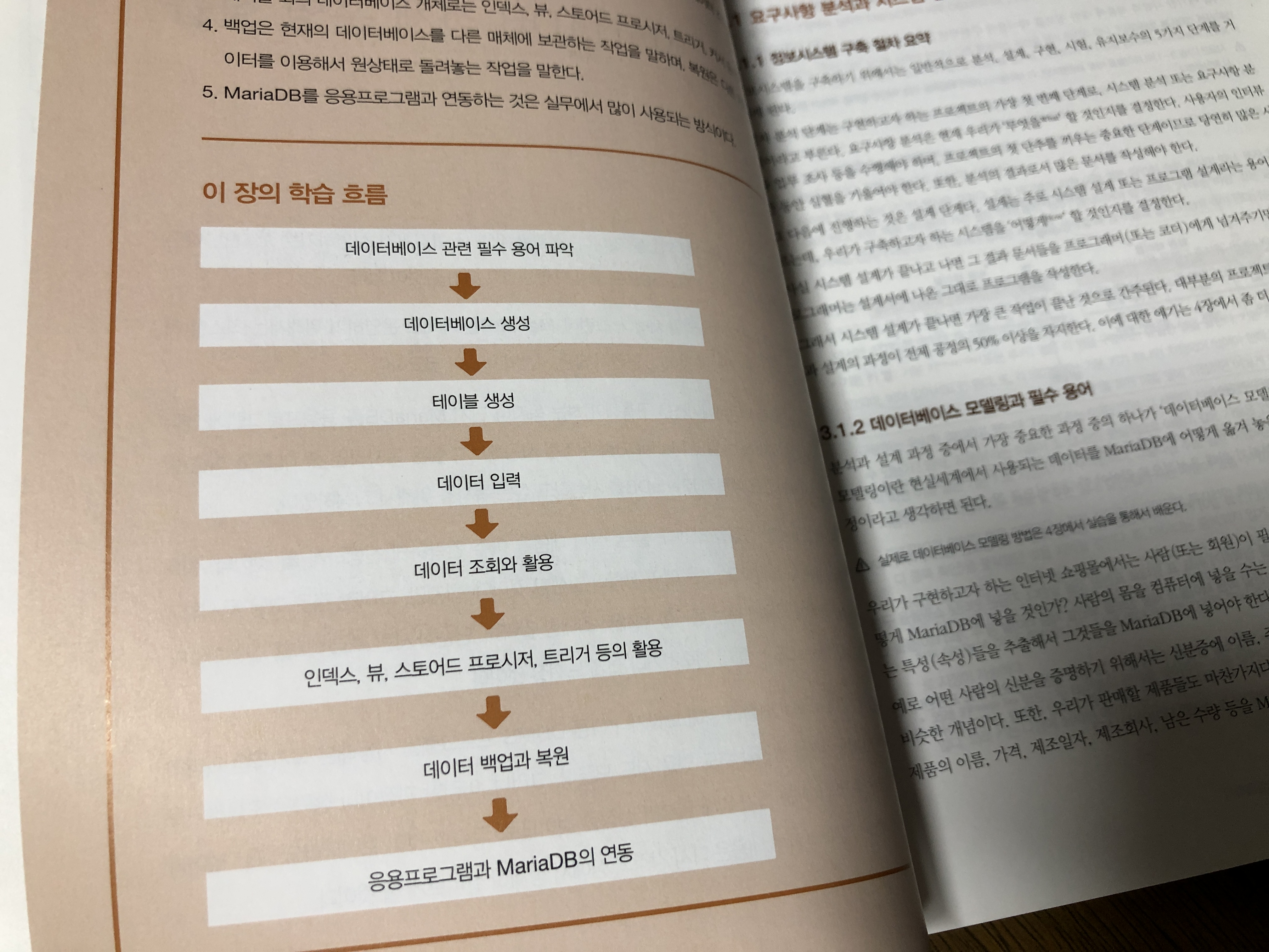 이 책은 파트1부터 MariaDB로 많은 일을 하게 됩니다. MariaDB 설치뿐만 아니라 요구사항 분석, 설계, 모델링에서 구축, 백업, 관리까지. 진짜 간단한 DB처리는 파트1만 봐도 될 정도로 MariaDB로 많은 것을 합니다. 여기서 이해가 안가고 궁금한 것은 뒤에서 차근차근 배웁니다.