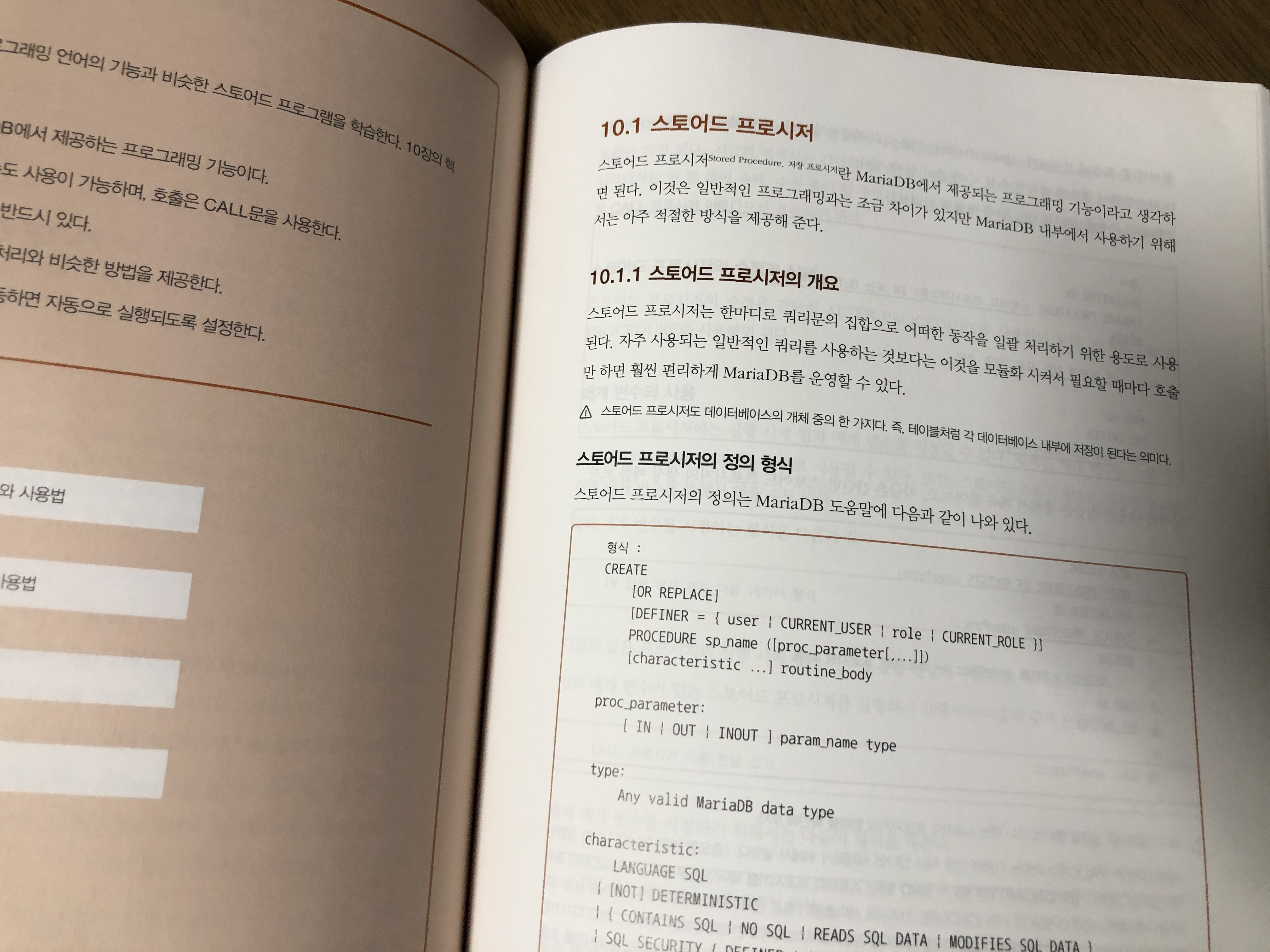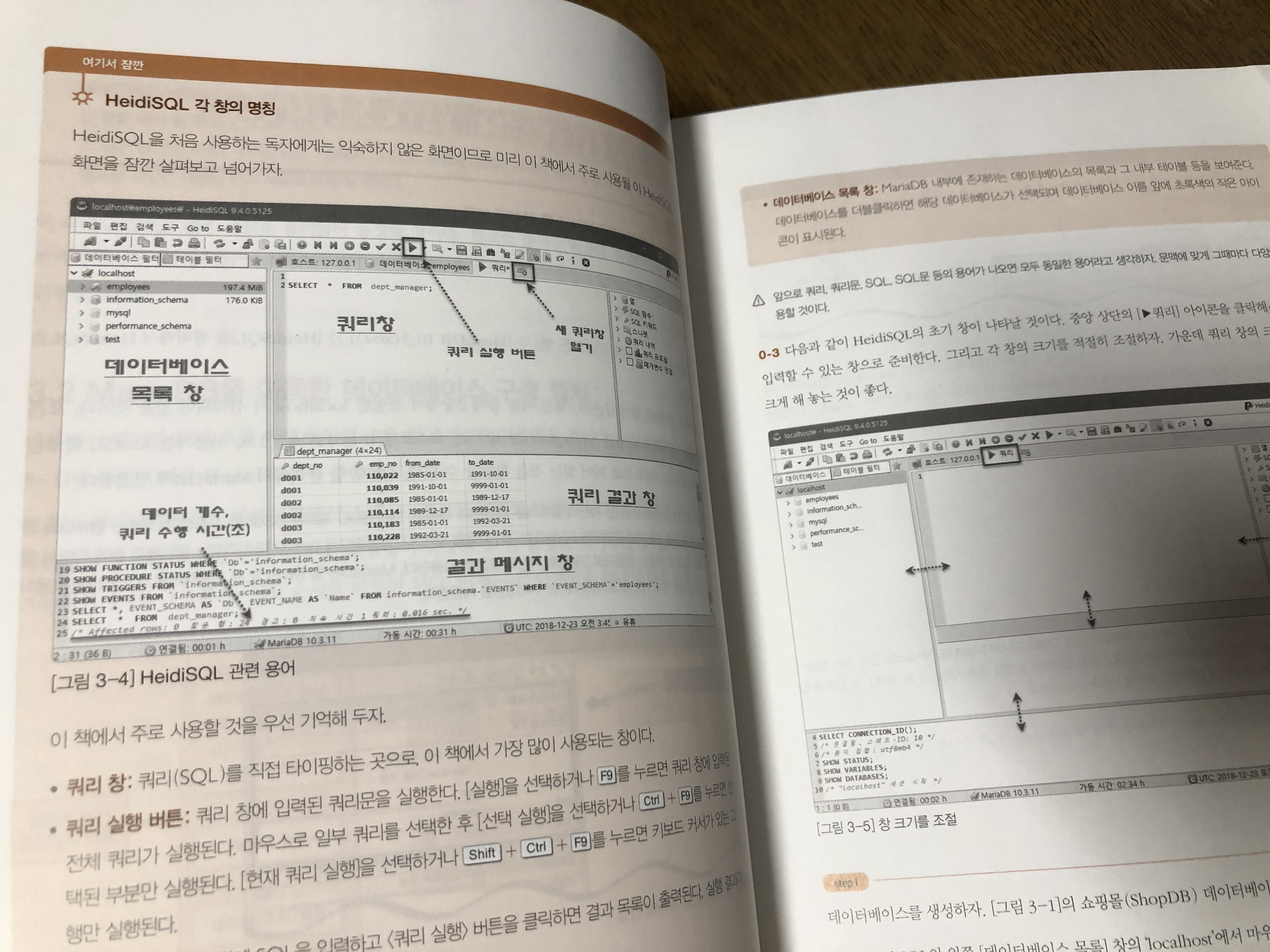 ‘이것이 MariaDB다’는 SQL 퀴리문을 나름 자세하게 설명합니다. 필요한 거의 모든 내용을 다루며 10장에서는 스토어드 프로그램(스토어드 프로시저, 함수, 트리거, 커서)까지 배웁니다. 데이터베이스 고수가 되기 위해서는 더 공부해야겠지만, 저처럼 간단하게 DB를 관리하고 싶은 사람이라면 이정도도 충분하다고 생각합니다. 모르는 내용을 많이 배웠네요.