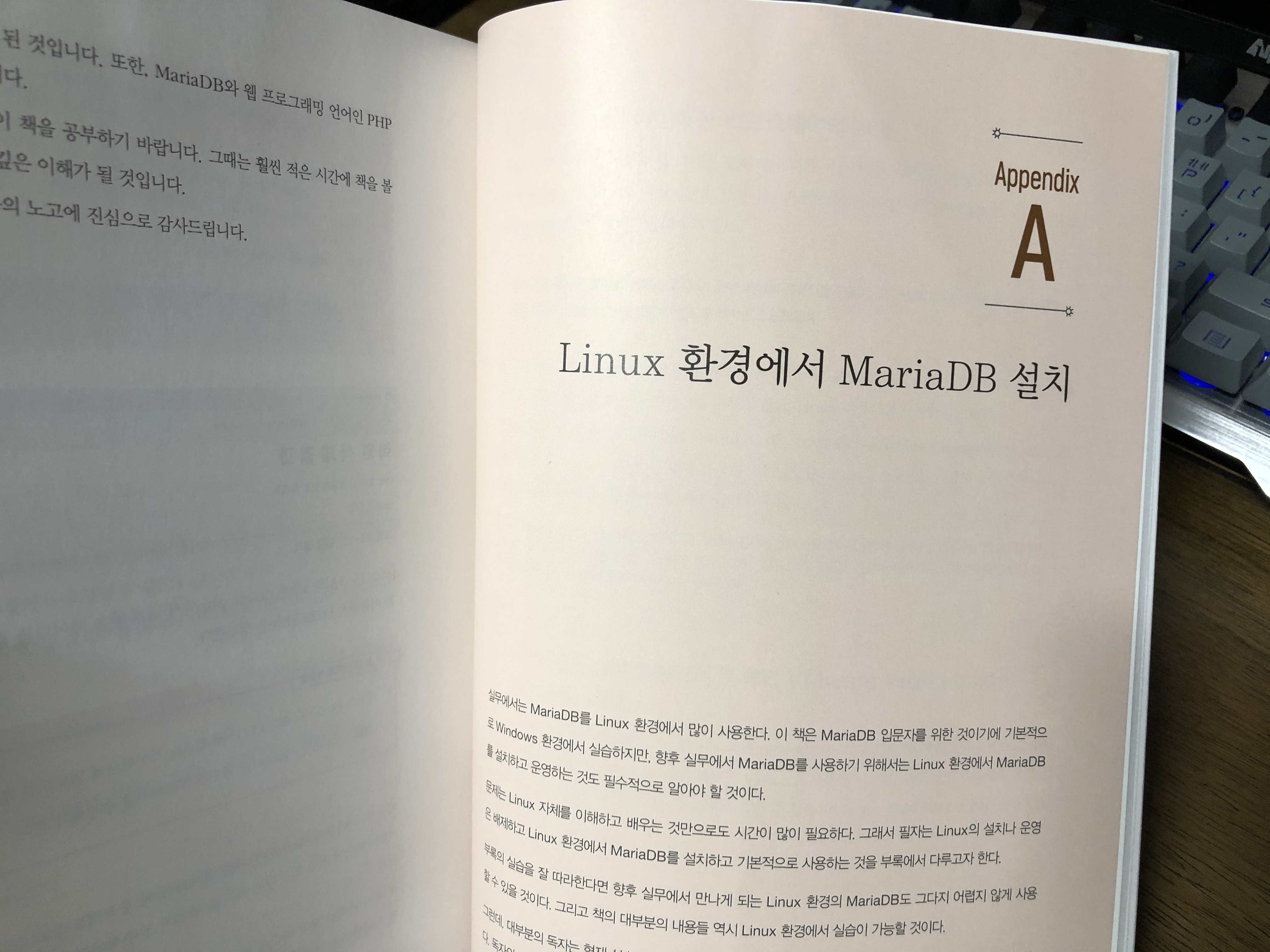 부록에서는 리눅스(Linux) 환경 MariaDB 설치 방법을 설명합니다.