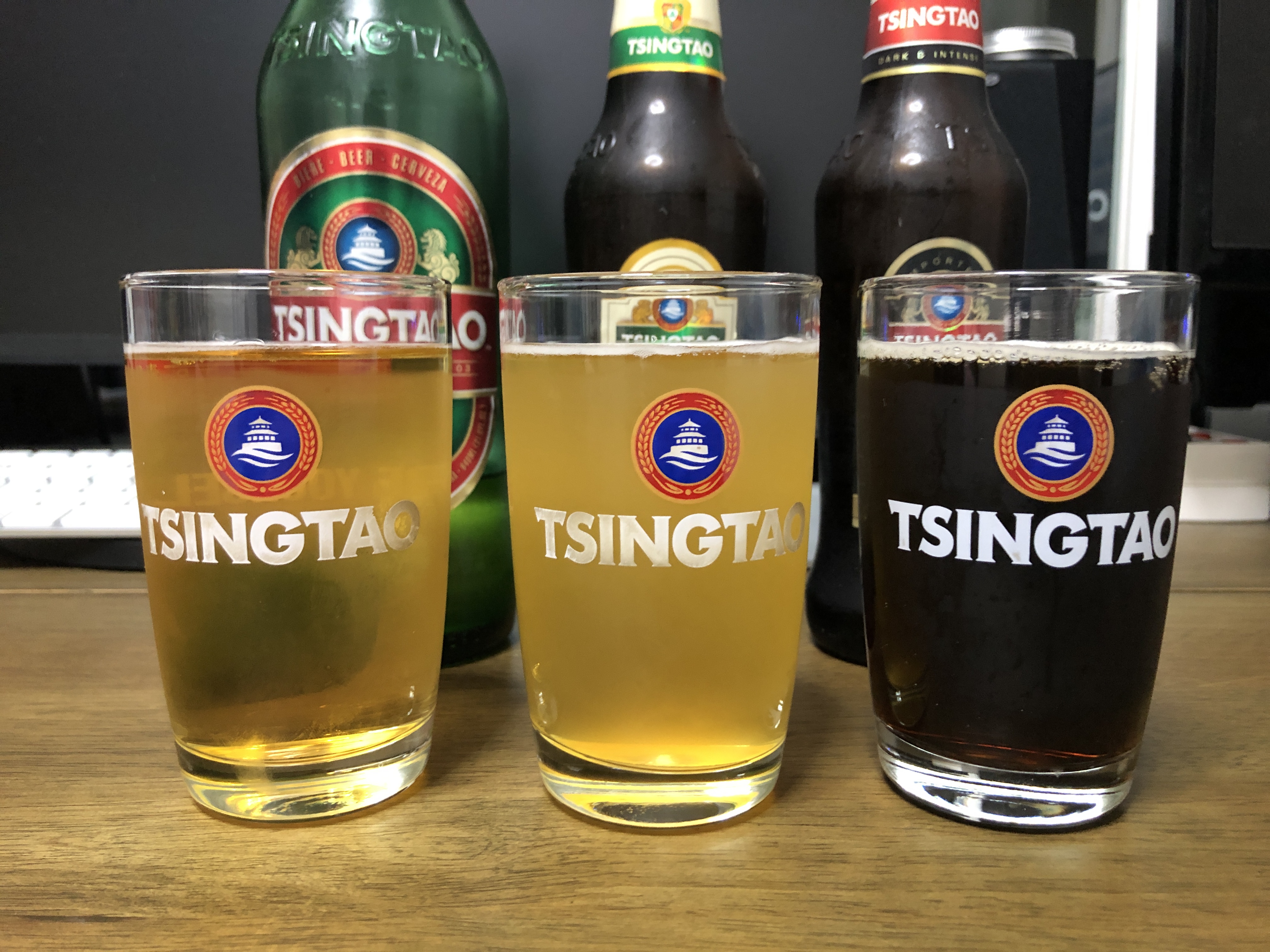심심해서 칭따오 맥주를 종류별로 잔에 따라봤습니다. 그냥 맥주, 밀맥주, 흑맥주네요. 사람마다 입맛이 다르겠지만 제 기준으로는 다 깔끔하고 맛있네요. 칭따오는 정말 무난한 맥주입니다.
