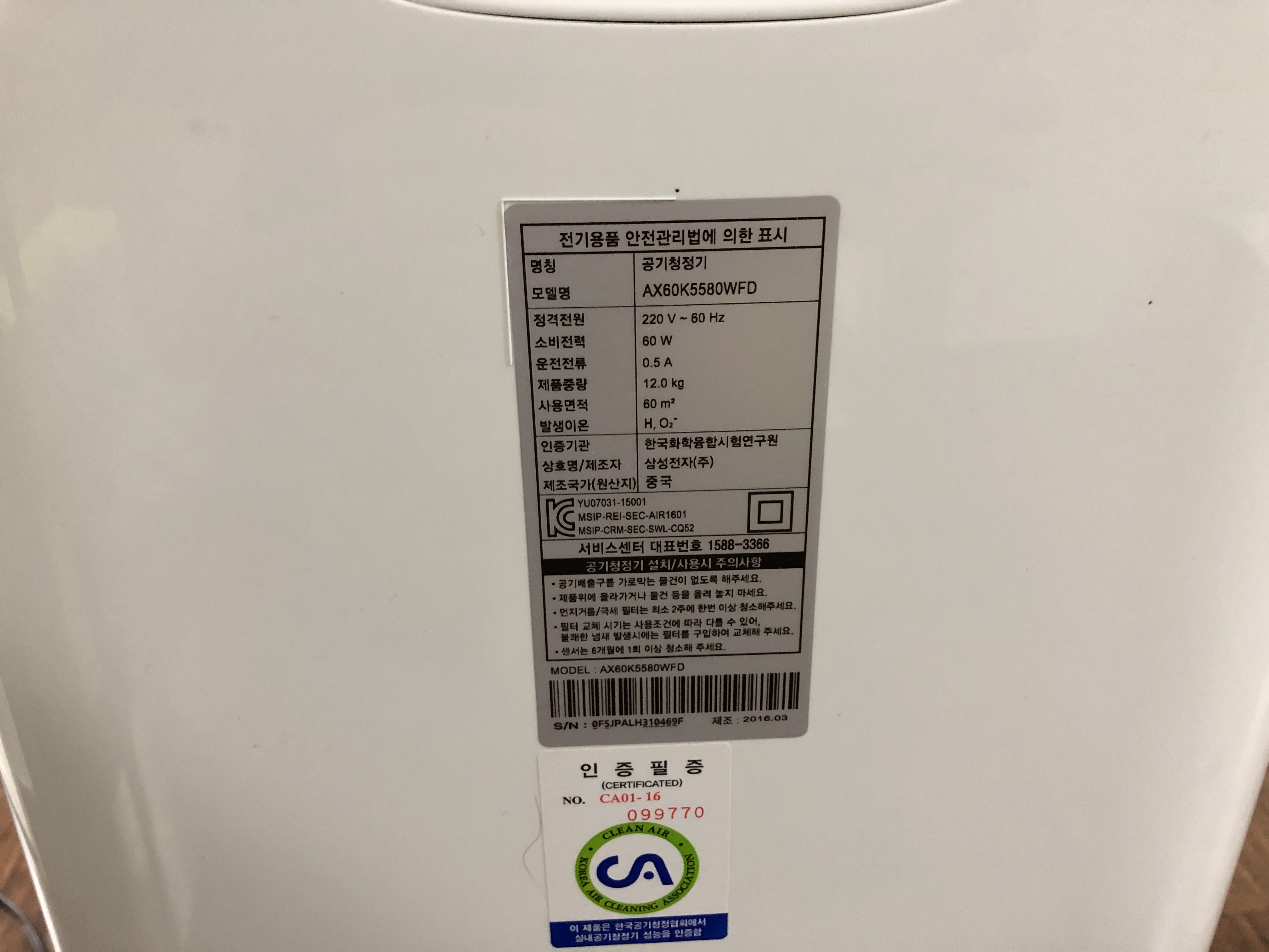 삼성 블루스카이 5000 공기청정기 AX60N5580WDD