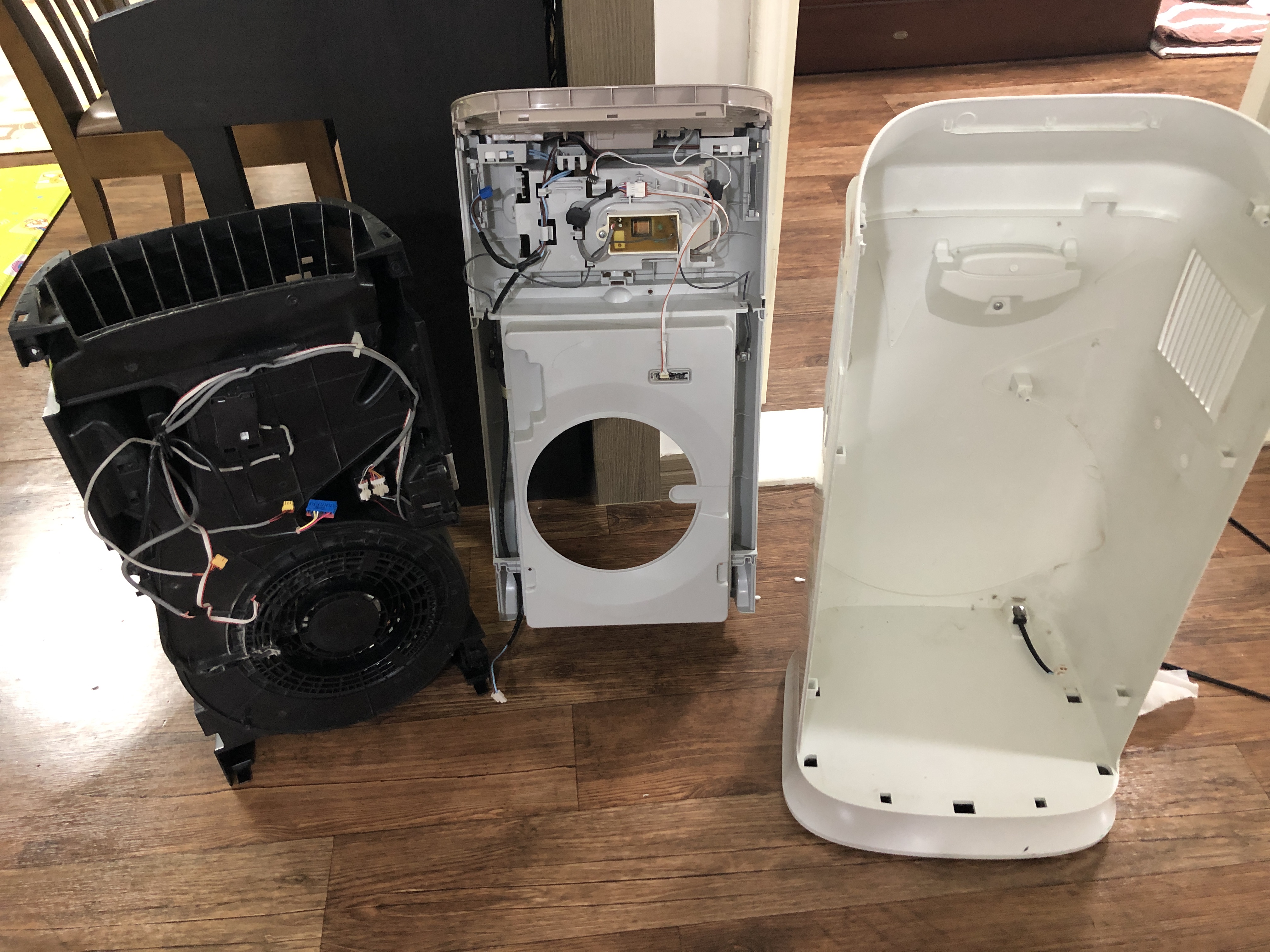 내부를 보니 정말 더러웠습니다. 분해를 하길 잘한 것 같네요. 특히 미세먼지를 측정하는 센서부분이 먼지로 가득했습니다. 이정도로 먼지가 잘끼는 부분이라면 청소를 쉽게 하도록 만들지...