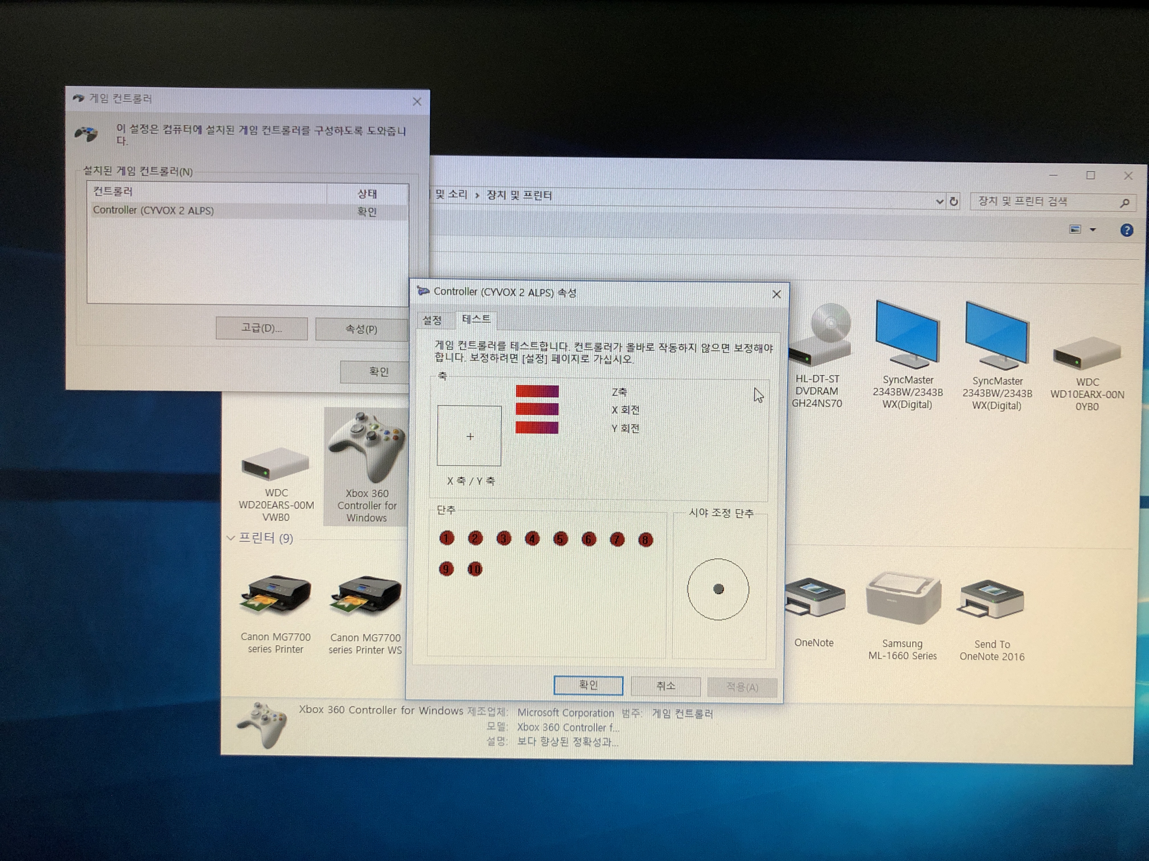 윈도우 장치 및 프린터를 보니 게임패드가 잘 잡혀있는 것을 볼 수 있습니다.