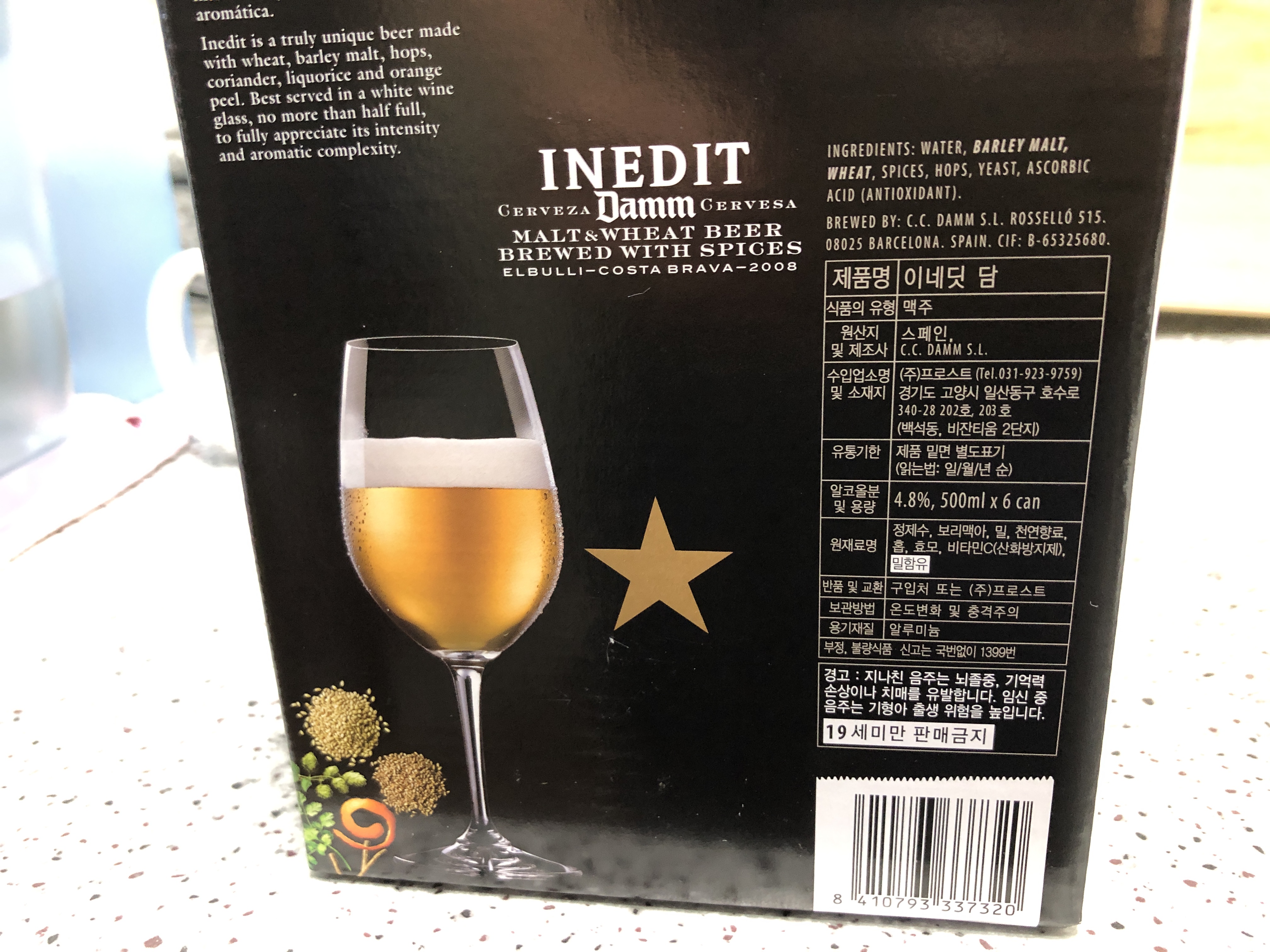 이네딧 담 (INEDIT Damm)은 스페인 맥주로 알콜도수 4.8% 밀맥주입니다.