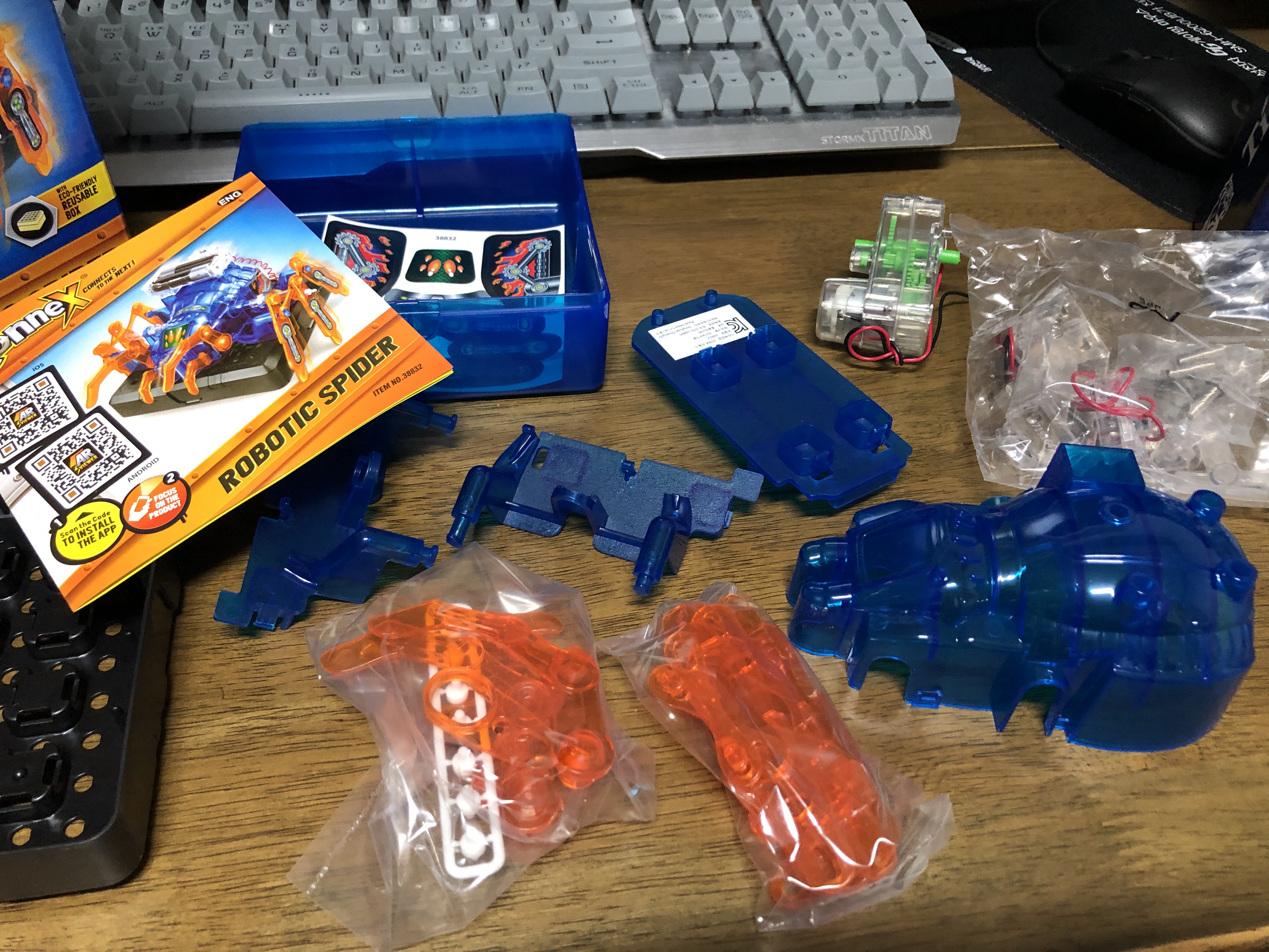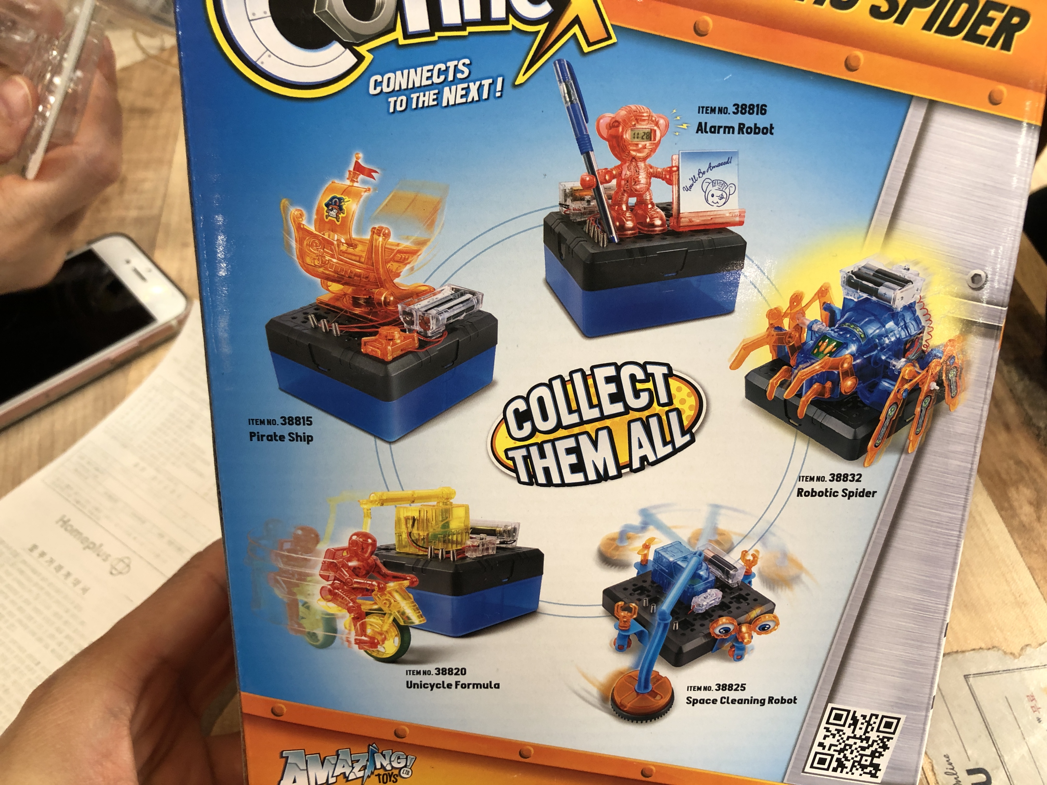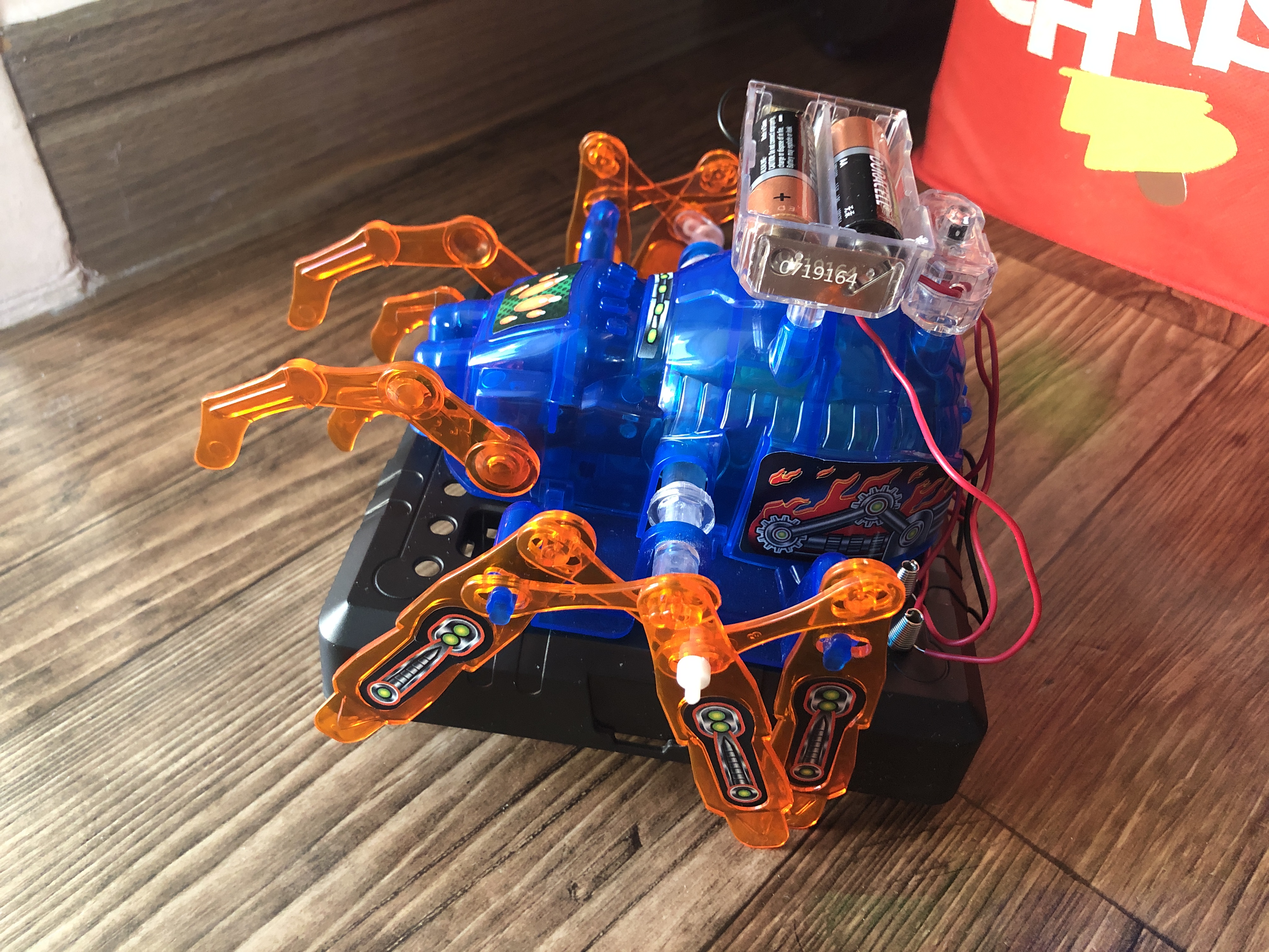 CONNEX STEM 거미 로봇 장난감. 아주 우아하게 움직이는 장난감은 아닙니다. 그래도 뒤뚱뒤뚱 움직이는걸 보면서 아이들이 많이 좋아하네요. 가성비는 괜찮습니다만, 아이들이 험하게 사용해서 그런지 거미 다리가 잘 빠지고 잃어버리는 경우가 허다합니다. 몇번은 찾아서 다시 조립을 해줬는데 이제는 다리가 어디에 있는지 몰라 몸통만 굴러다니네요. 전원 연결 부분에 LED나 모터를 연결하는 등 다양한 시도를 하면서 노는 것도 가능합니다.