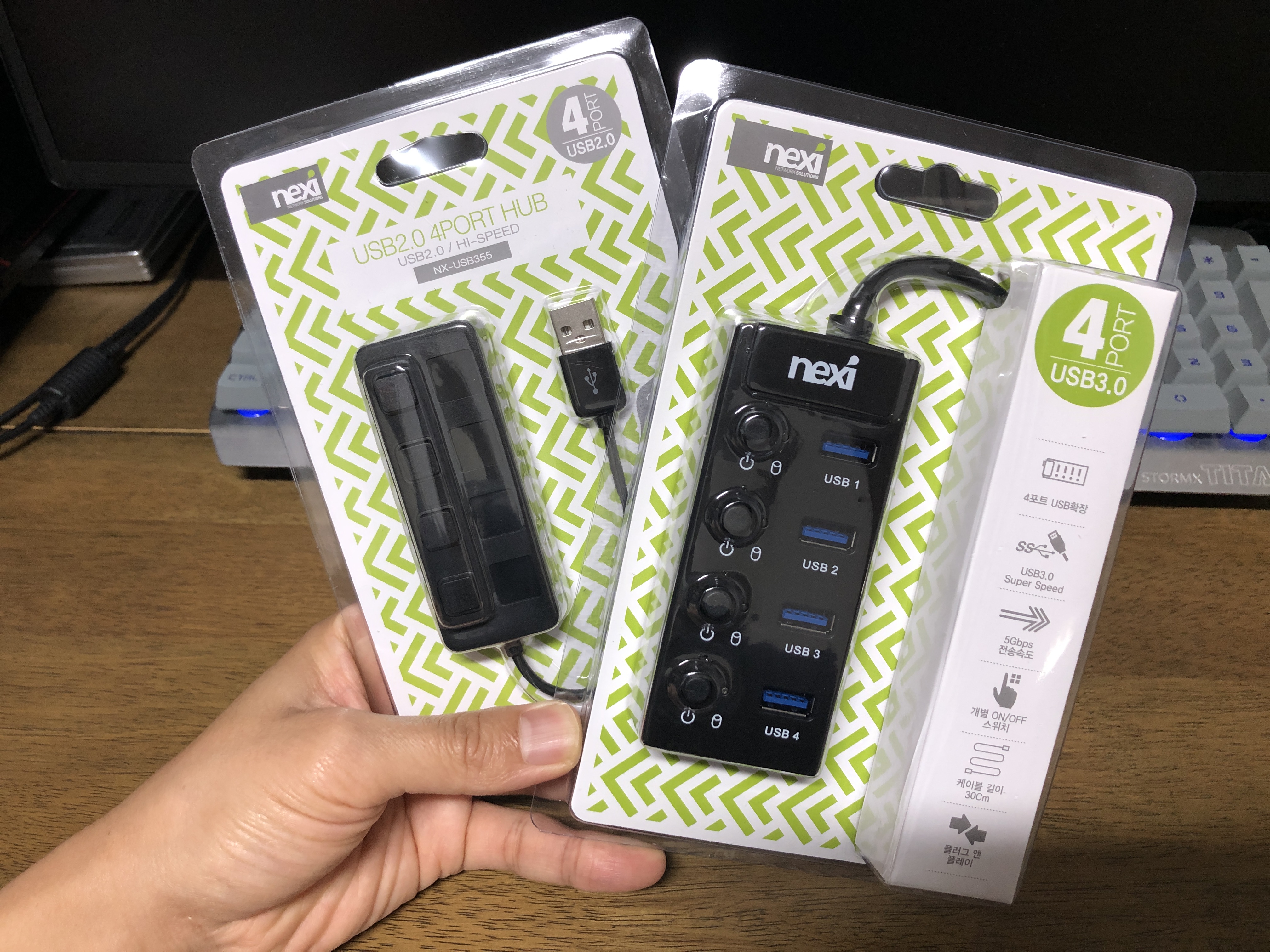 노트북 컴퓨터에 USB 포드가 부족해 USB 허브(USB 멀티 포트)를 구매했습니다. 배송비가 아까워 사는 김에 2개 샀습니다. 하나는 그냥 USB고 하나는 USB3.0 지원 제품입니다. 인터넷을 뒤져보니 정말 다양한 제품이 있었는데 그냥 손이 가는 데로 구매를 했습니다. 딱히 넥시(nexi) 제품을 선택한 이유는 없네요 ㅋ