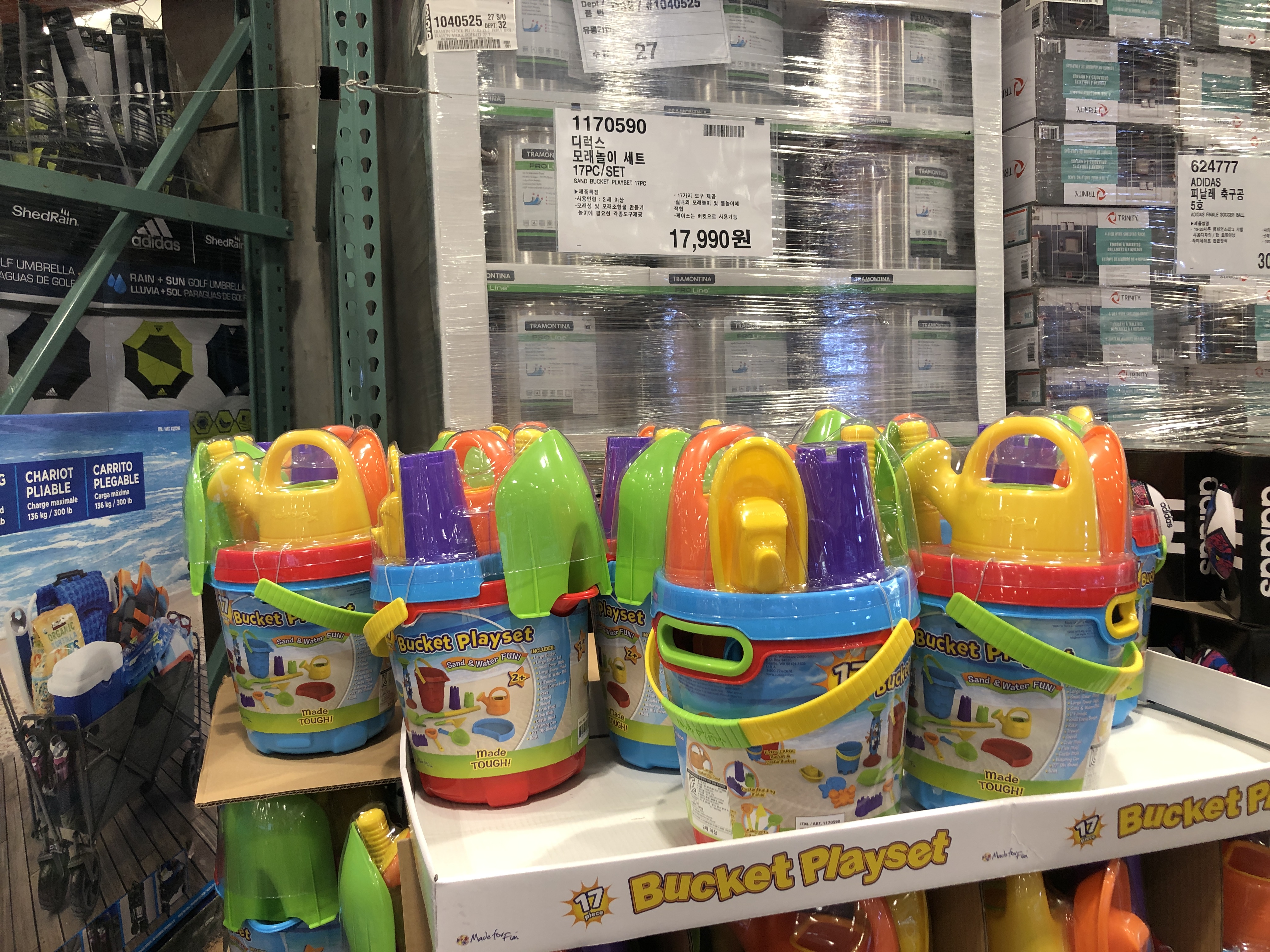 코스트코에서 모래놀이 세트를 구매했습니다. 디럭스 모래놀이 세트라는 제품인데 구성이 너무 알찬 거 같아 바로 카트에 담았습니다. 삽, 물뿌리개 포함 17개가 포함되어 있습니다. 예전부터 모래놀이 세트를 사줄까 생각하고 있었는데 잘됐네요.