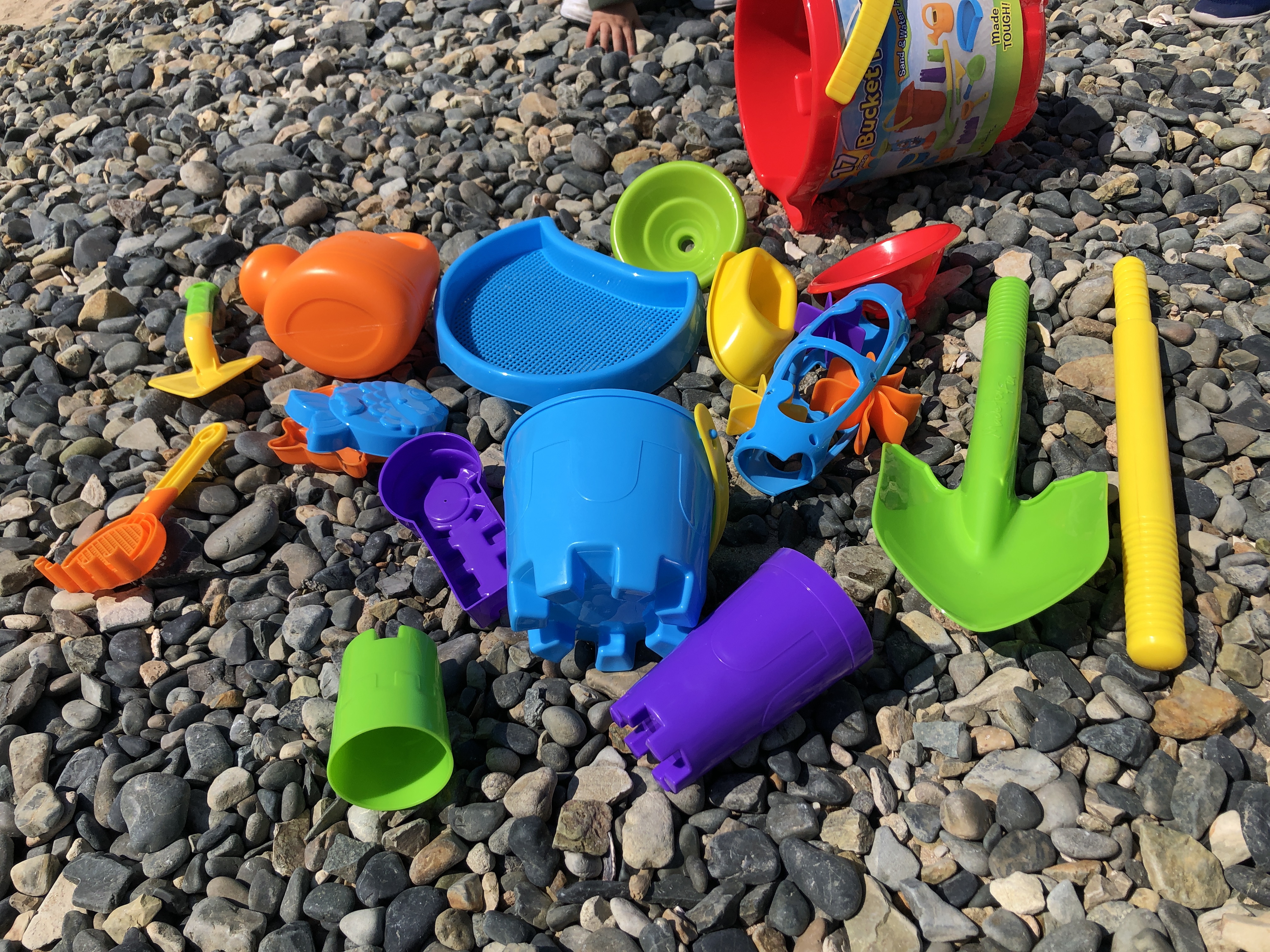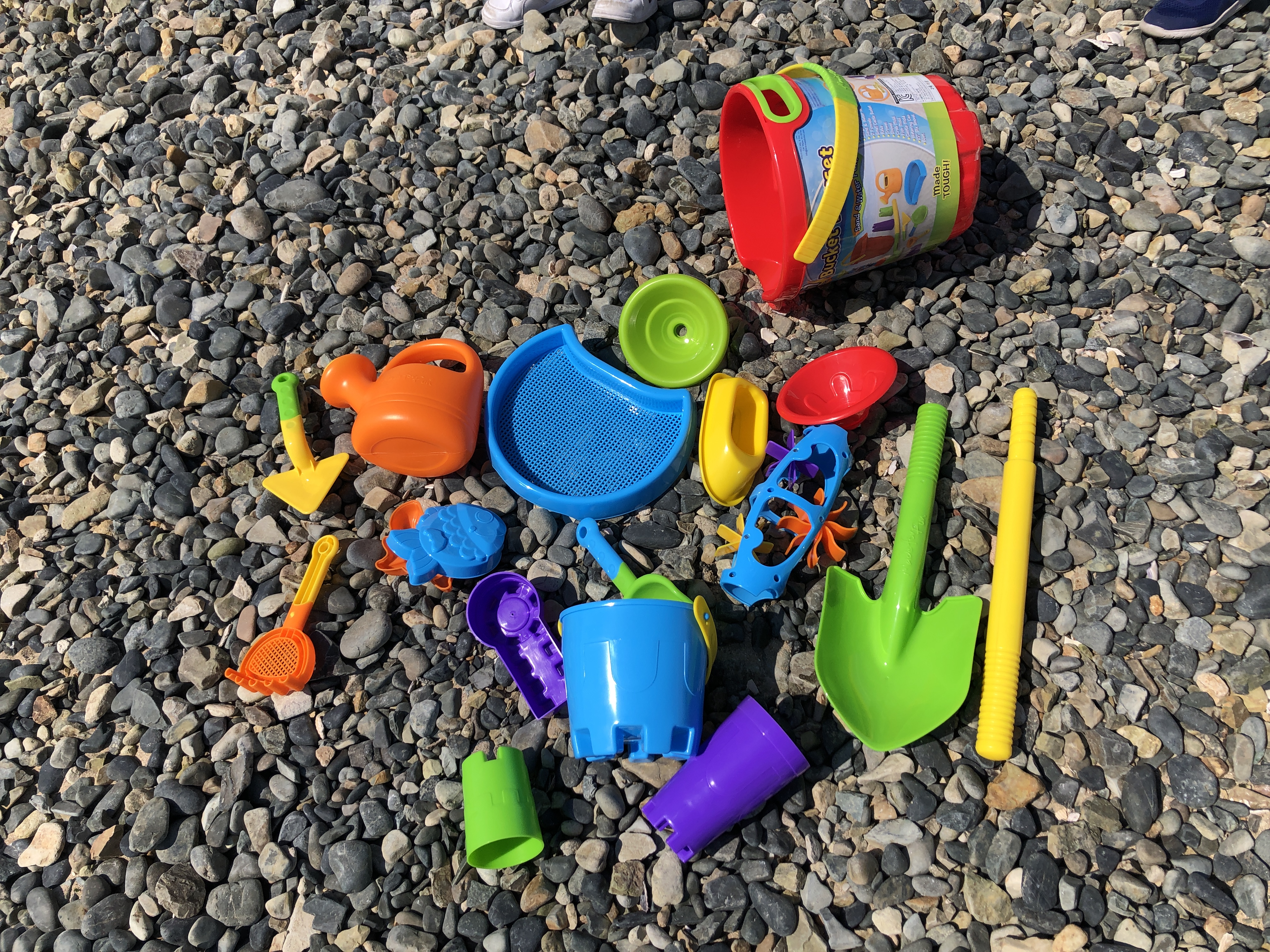 제품을 개봉한 모습입니다. 정말 다양한 종류가 있어서 모래놀이 세트는 이거 하나로 충분할 것 같습니다. 장난감 통을 넘어서는 구성이라서 다 사용하고 바케스(양동이?)에 담아 보관하는 것이 힘듭니다. 삽은 2개 부품을 연결해서 만들면 되는데 생각보다 견고해서 집 안에서 갖고 놀 경우 위험할 수 있으니 조심하세요.