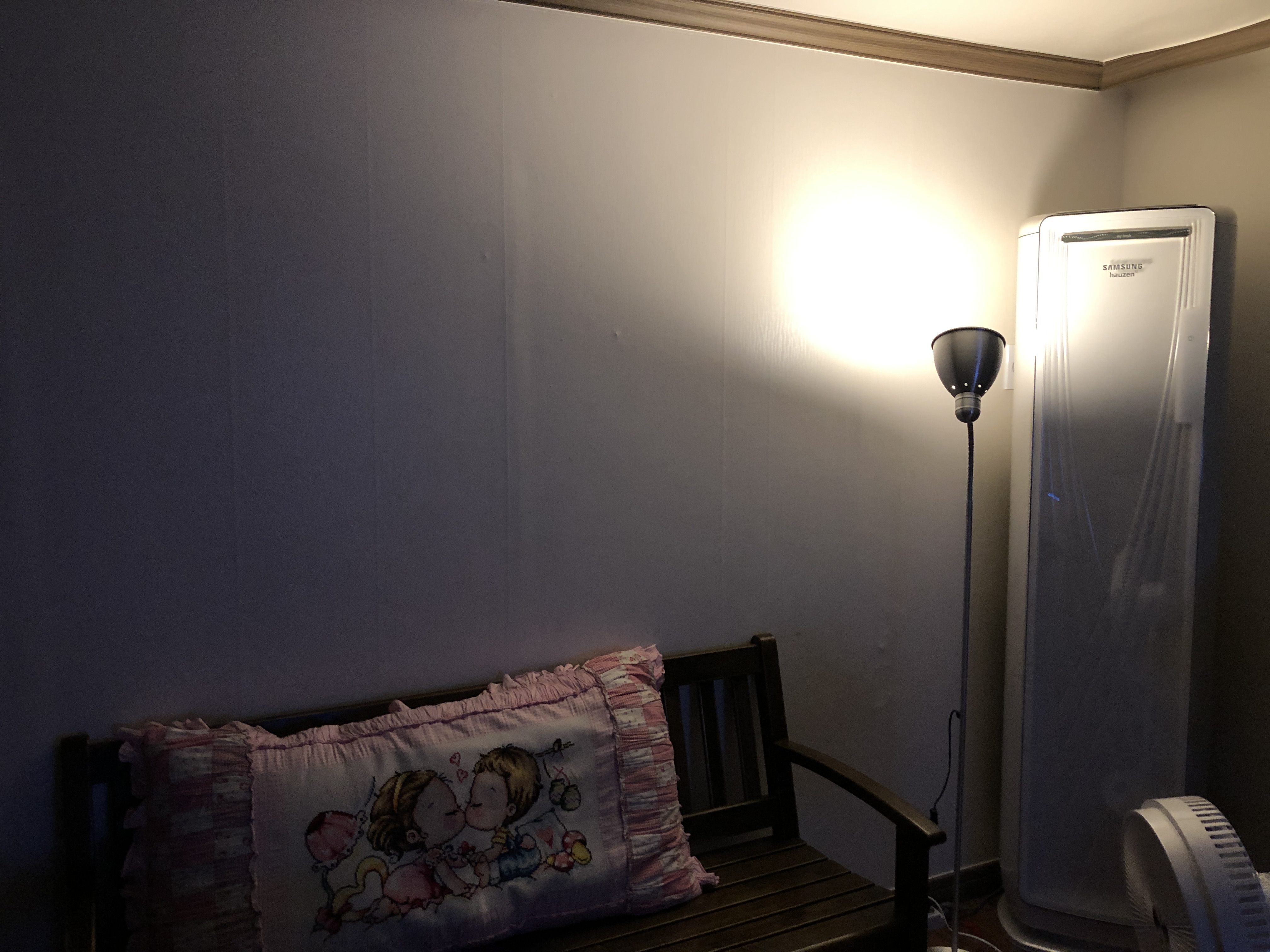 전구색 LED 전구가 없어 집에 굴러다니는 주광색 등을 장착하고 스탠드를 켜봤습니다.