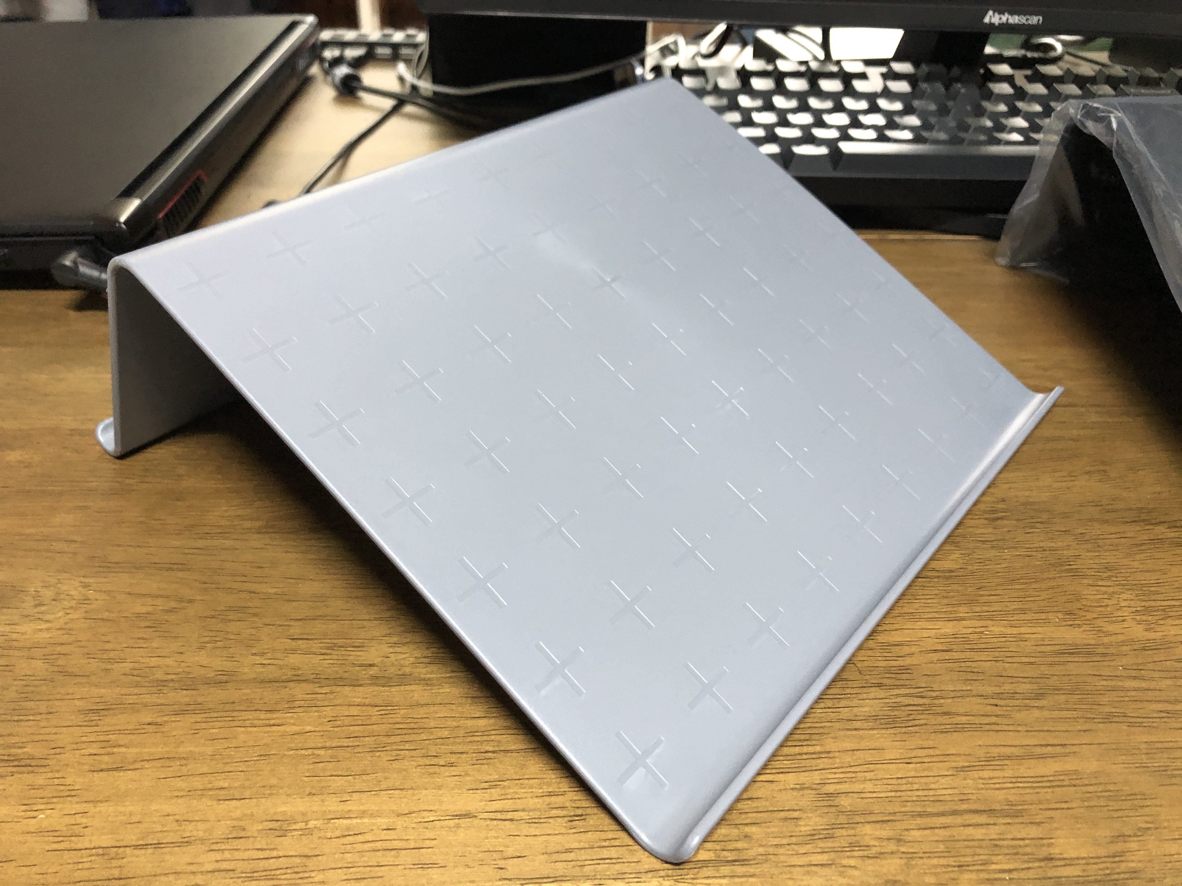 맥북에어 13인치를 올렸을 때 키보드 각도는 조금 그렇지만 확실히 거북목 예방에는 효과가 있을 것 같습니다. 동영상 시청을 주로 하는 분이라면 쓸만할 것 같습니다. 사용 못할 각도는 아닙니다.