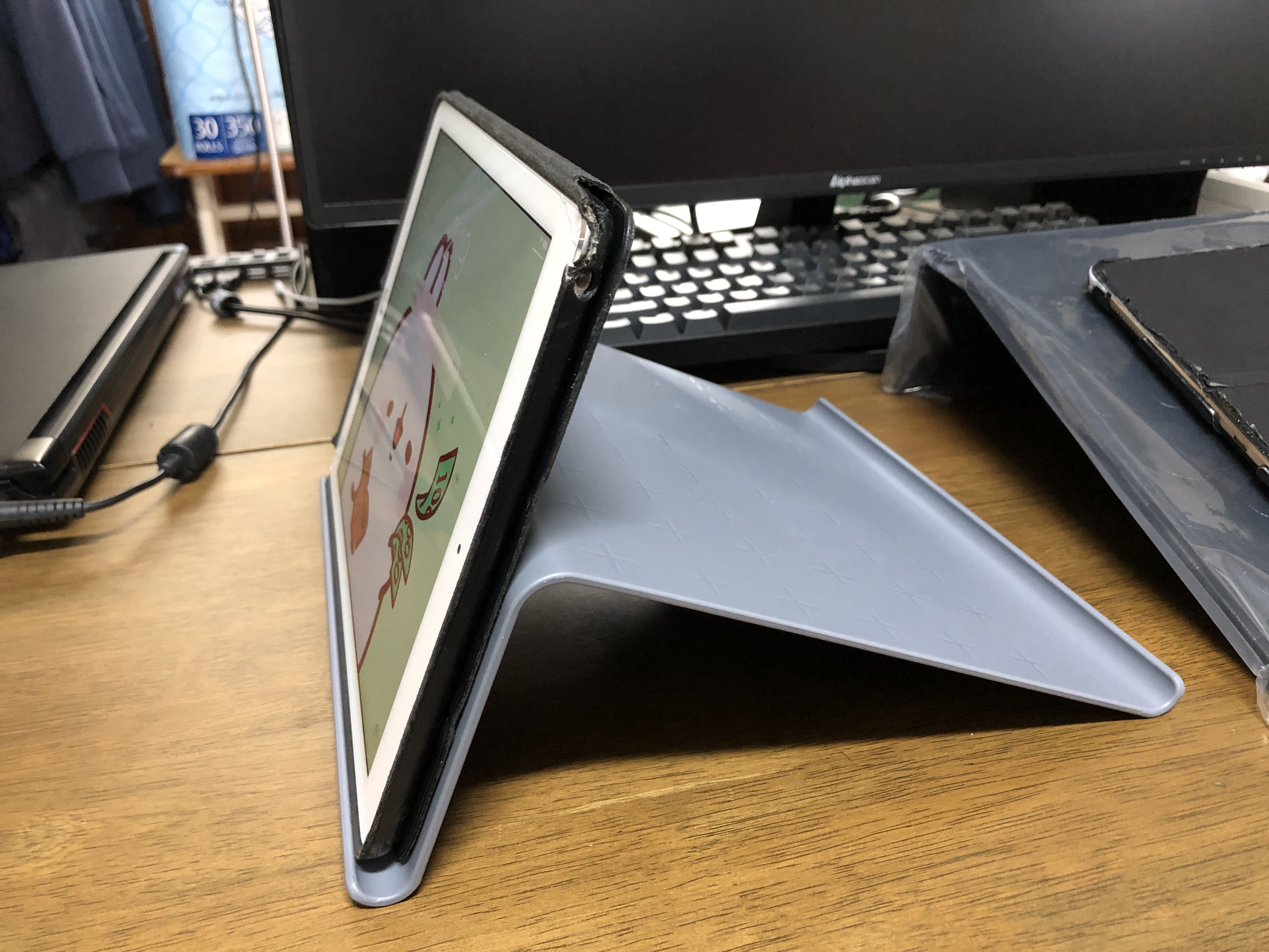 이케아 태블릿 거치대에 아이패드를 올린 모습입니다.